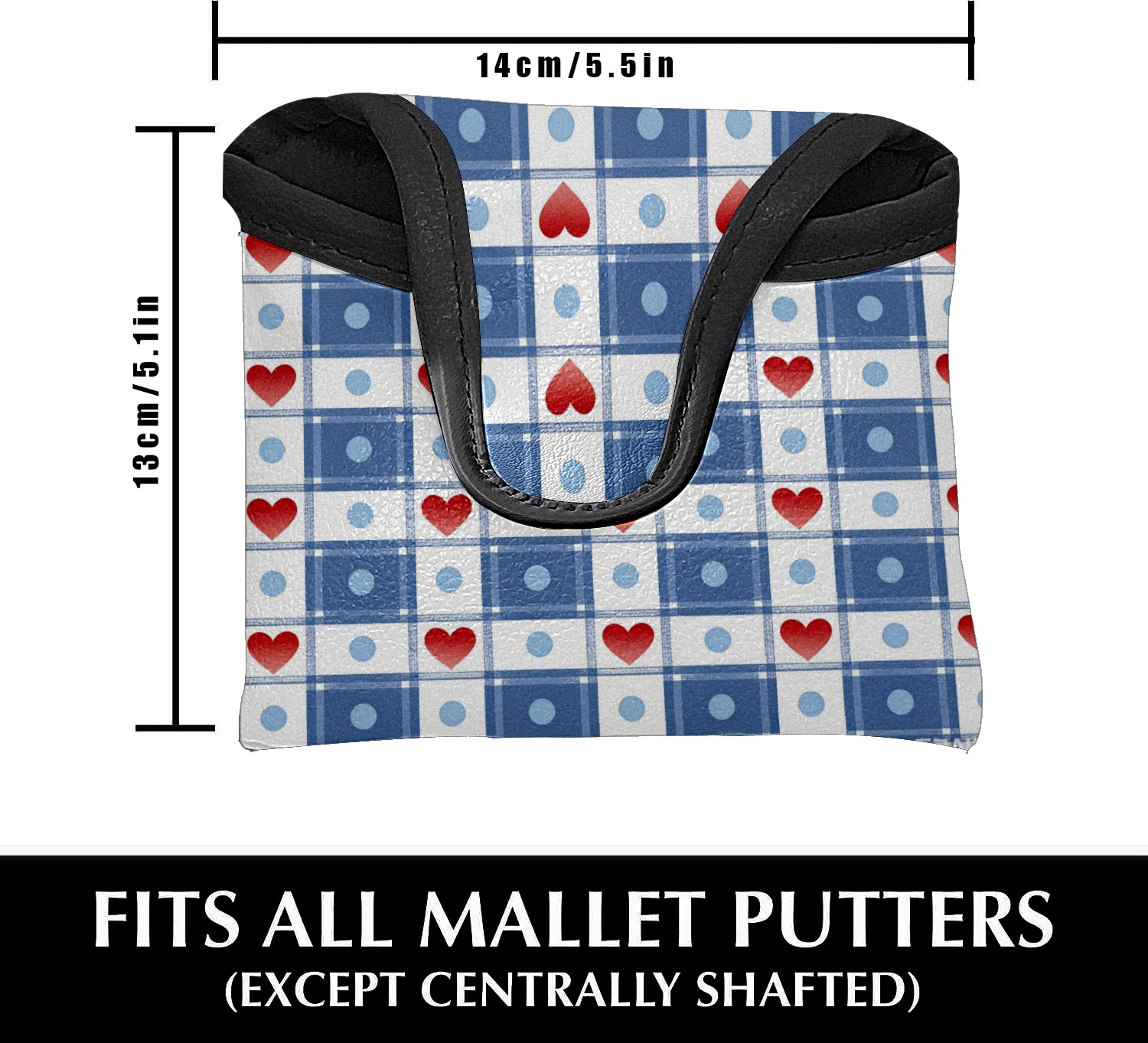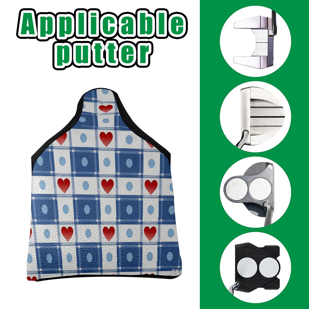 Mallet Putter Cover,Golf Club Head Cover, PU Leather Iron Head Covers Set Gift for Travel Cases Protector Fit Most, Easily Slips on and Secures Heart Plaid Blue