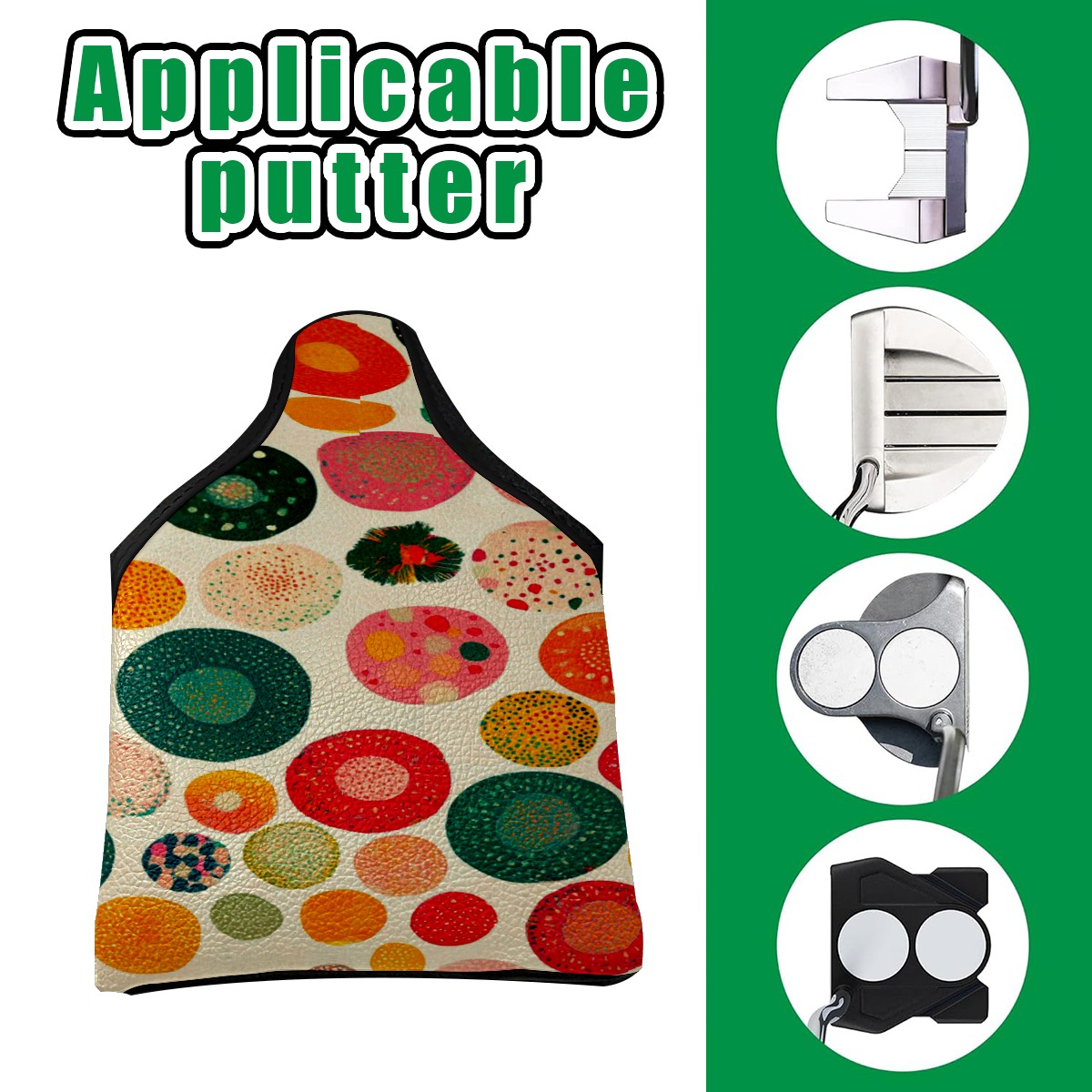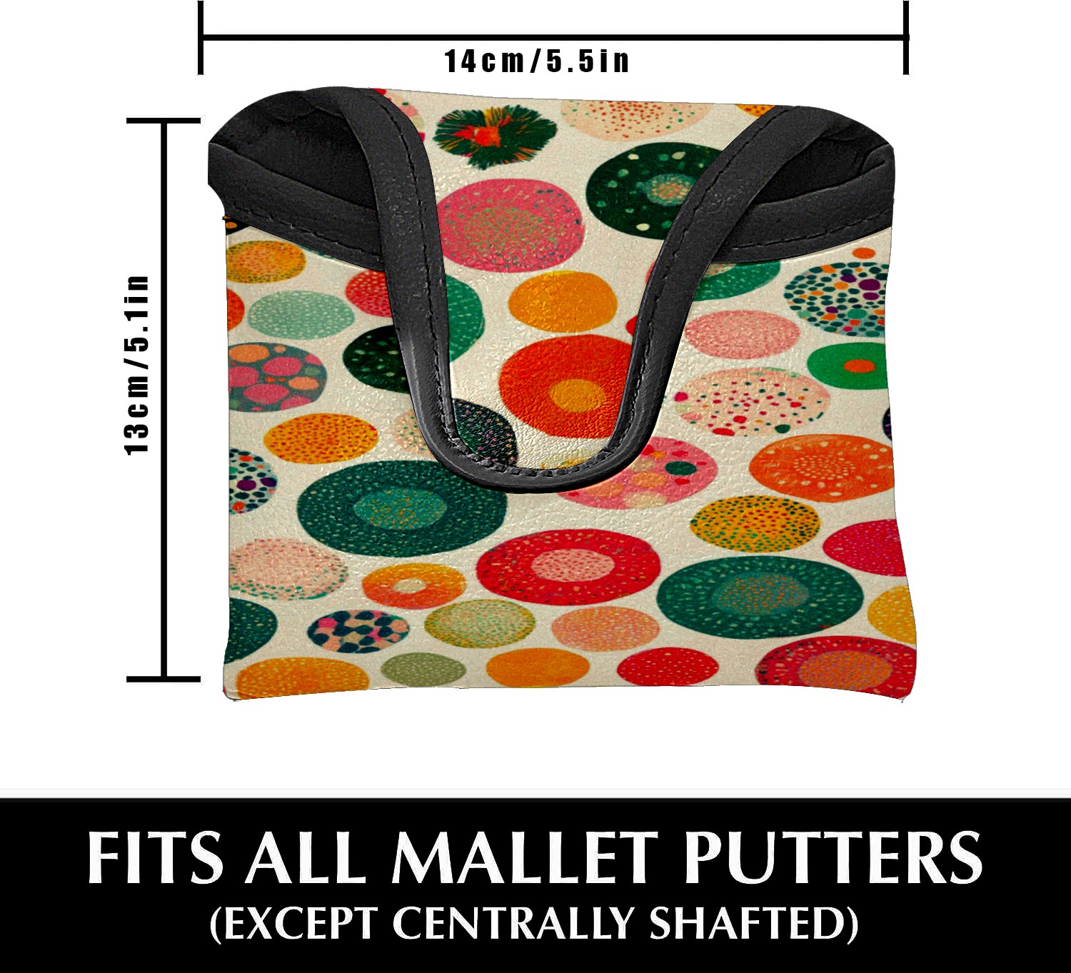 Mallet Putter Cover,Golf Club Head Cover, PU Leather Iron Head Covers Set Gift for Travel Cases Protector Fit Most, Easily Slips on and Secures Colorful Polka Dot Pattern