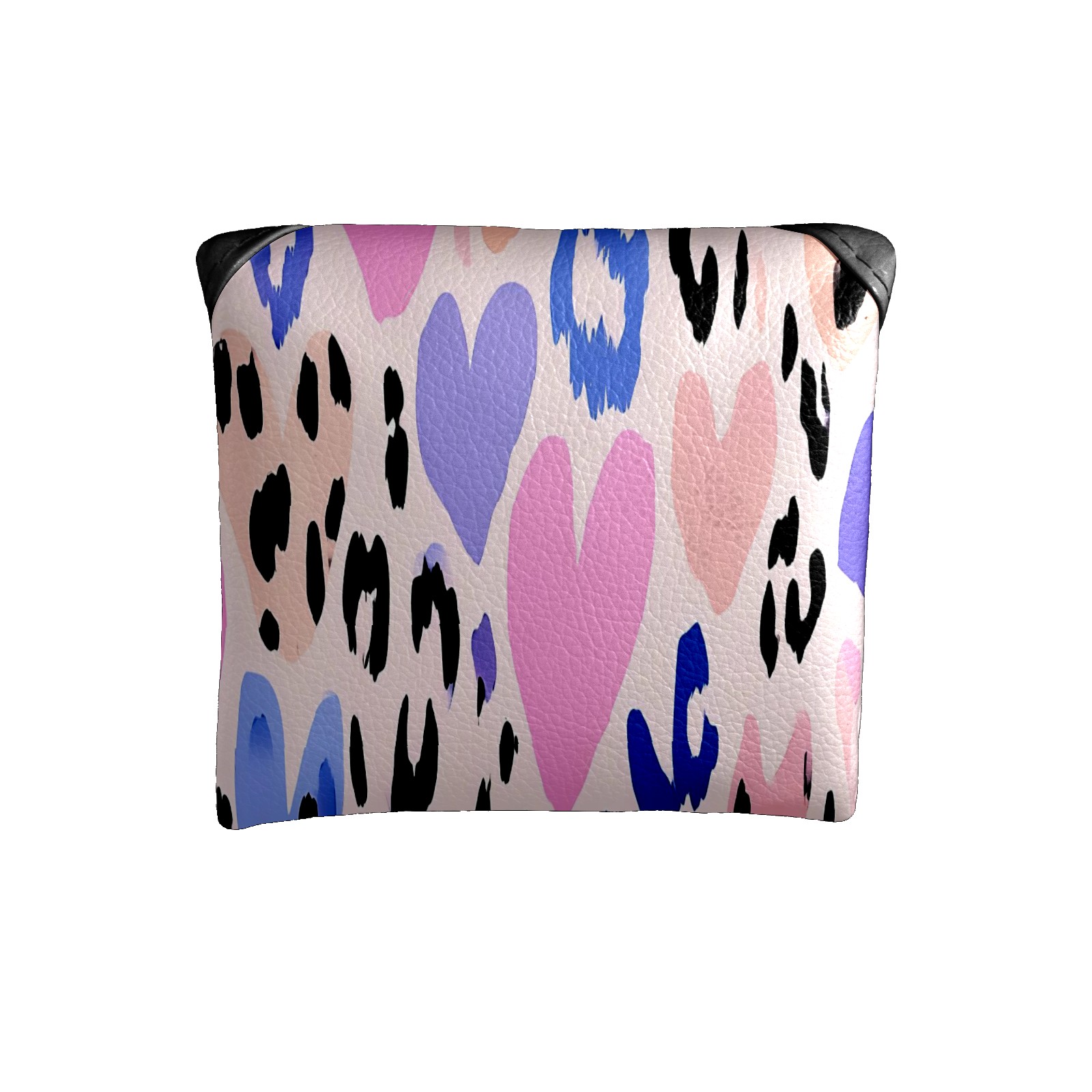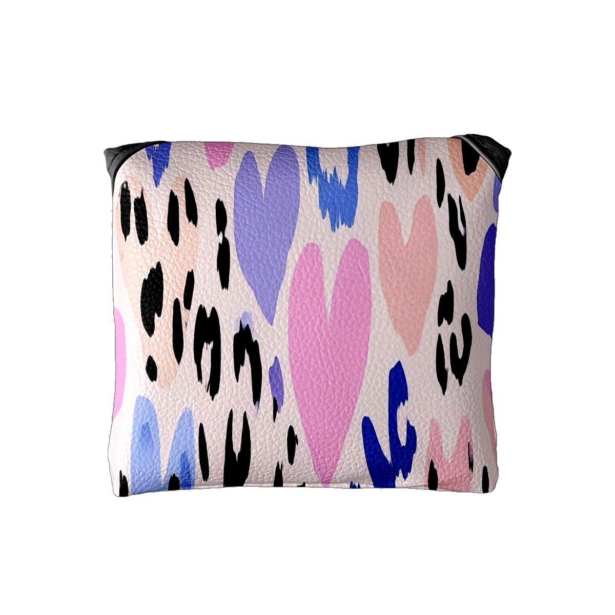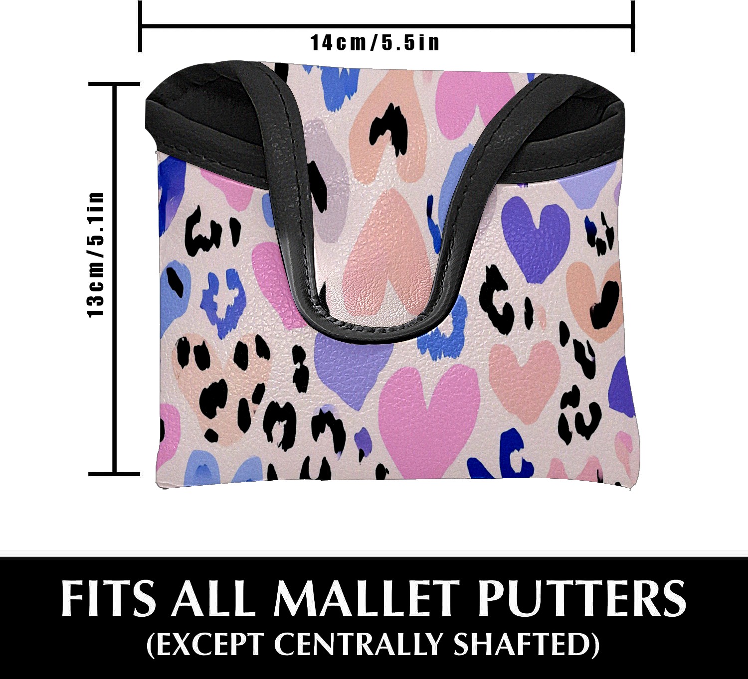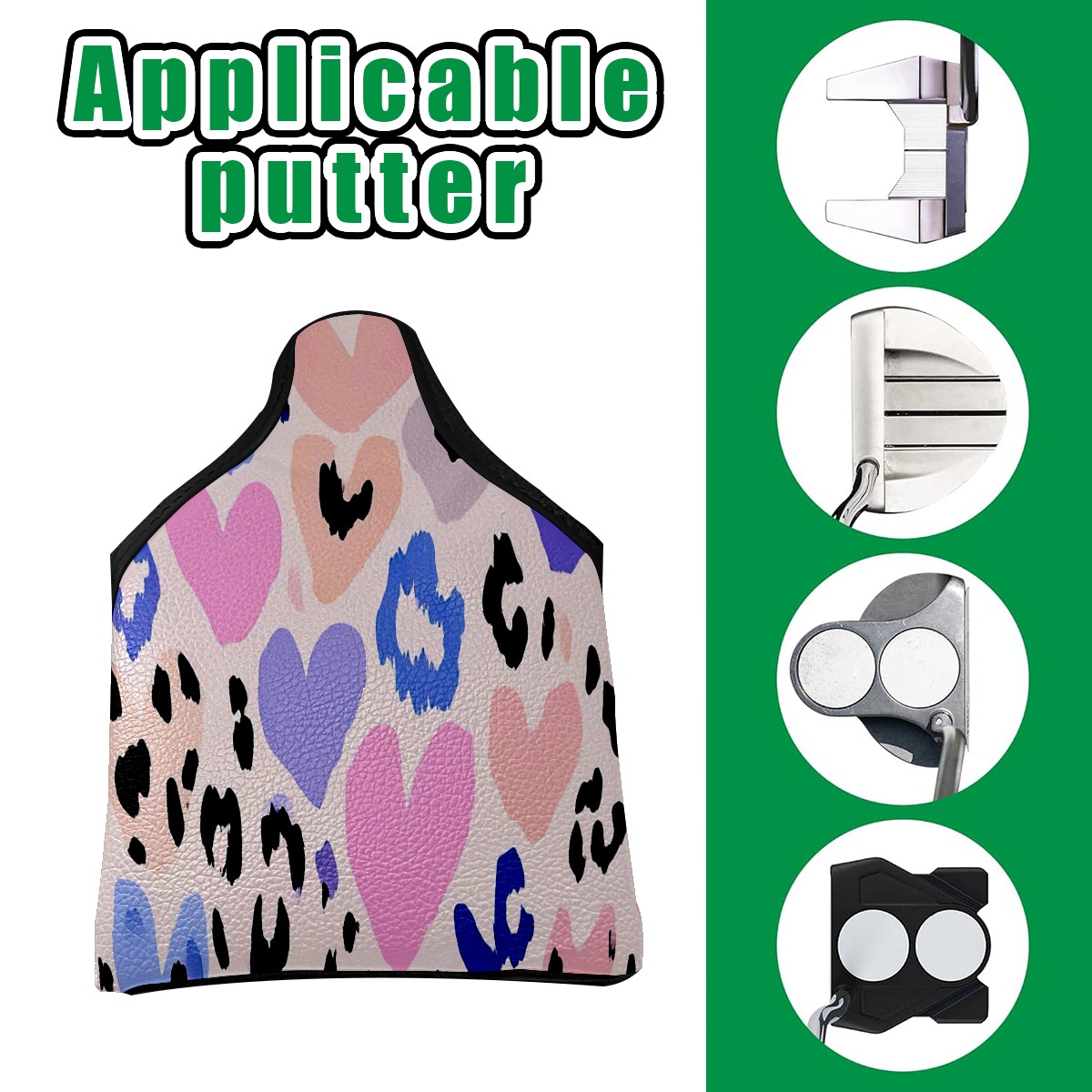 Mallet Putter Cover,Golf Club Head Cover, PU Leather Iron Head Covers Set Gift for Travel Cases Protector Fit Most, Easily Slips on and Secures Playful Heart Pink