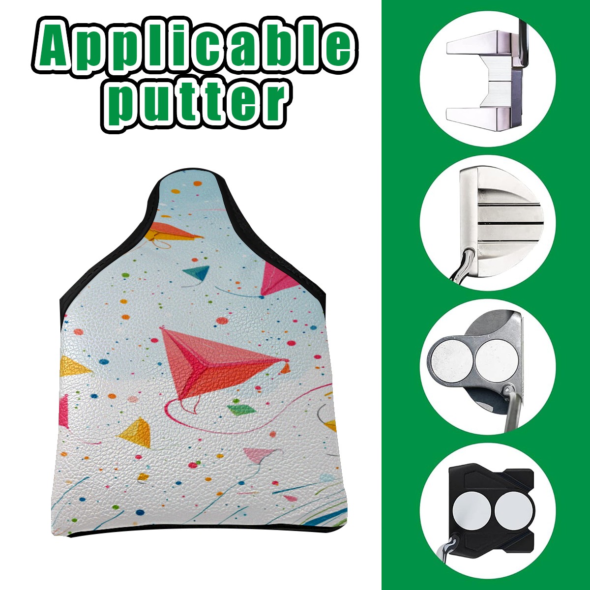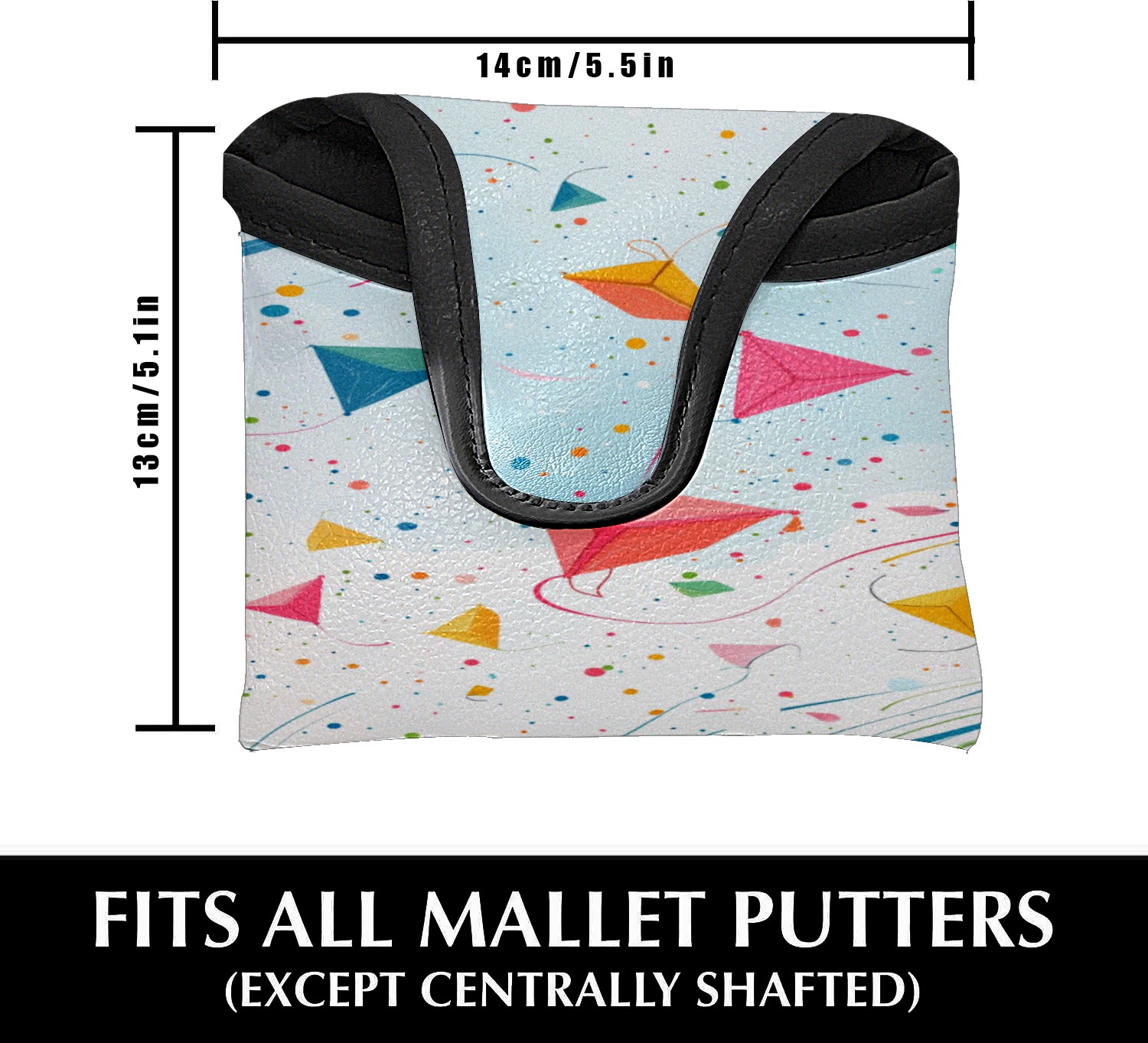Mallet Putter Cover,Golf Club Head Cover, PU Leather Iron Head Covers Set Gift for Travel Cases Protector Fit Most, Easily Slips on and Secures Colorful Kite Pattern