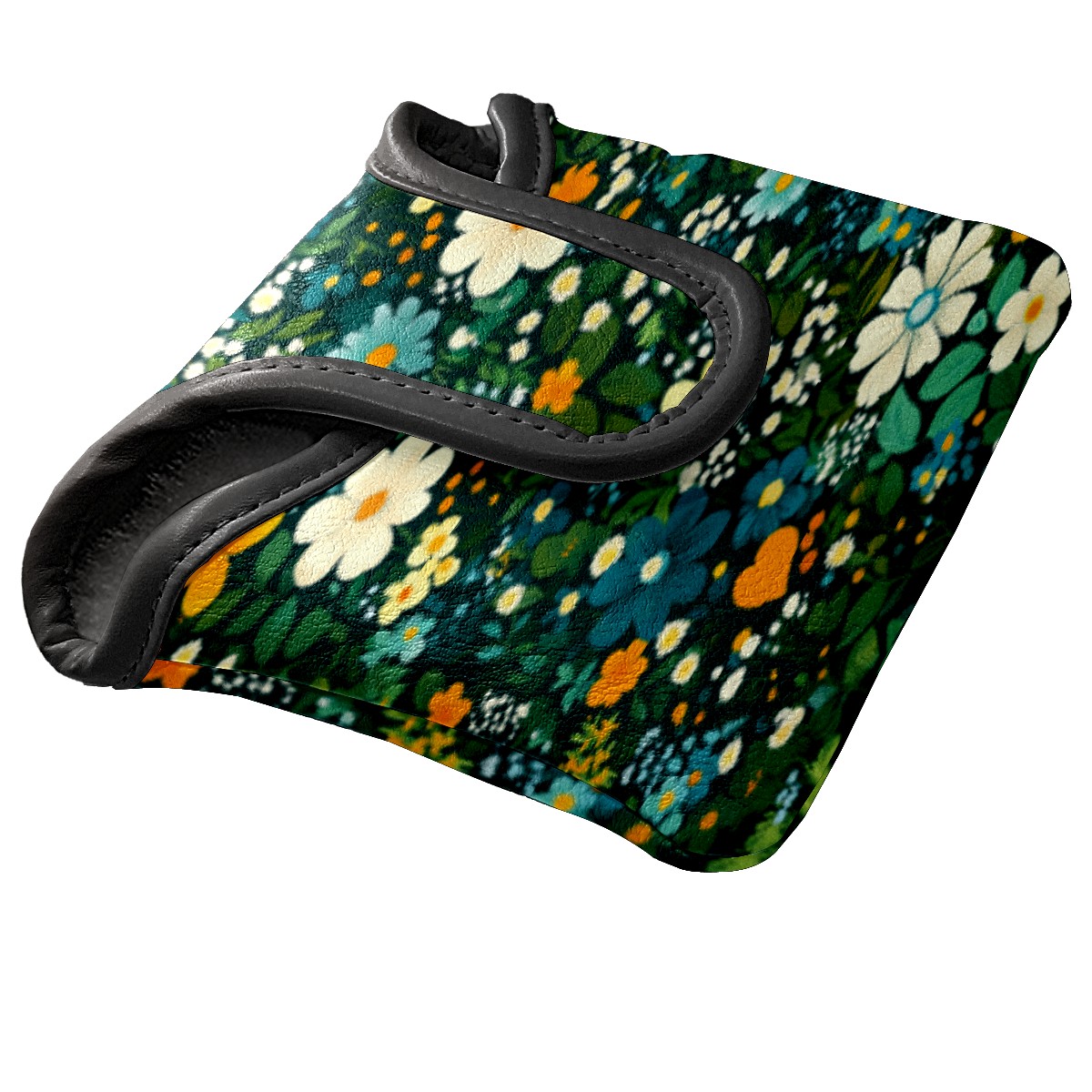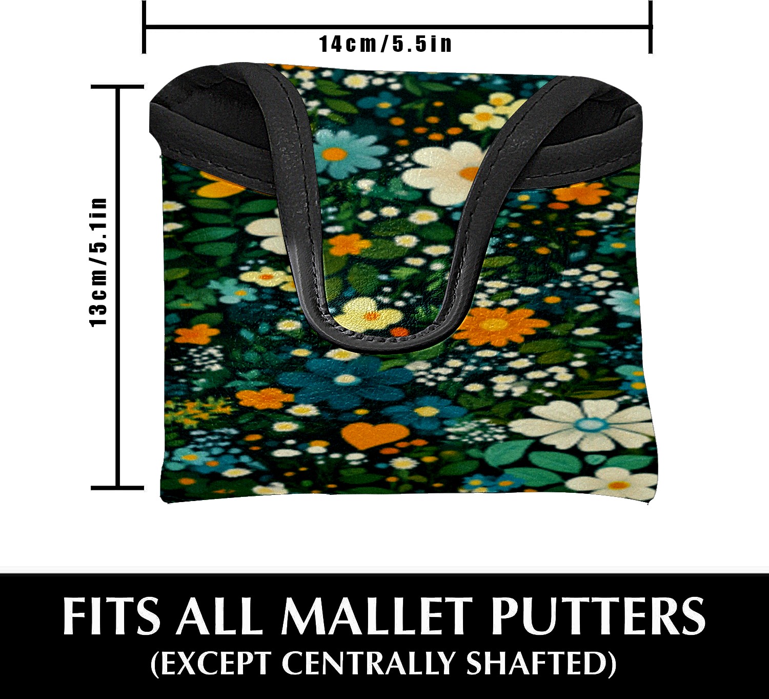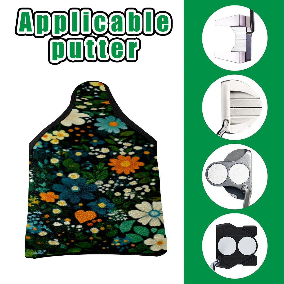 Mallet Putter Cover,Golf Club Head Cover, PU Leather Iron Head Covers Set Gift for Travel Cases Protector Fit Most, Easily Slips on and Secures Green Floral Pattern
