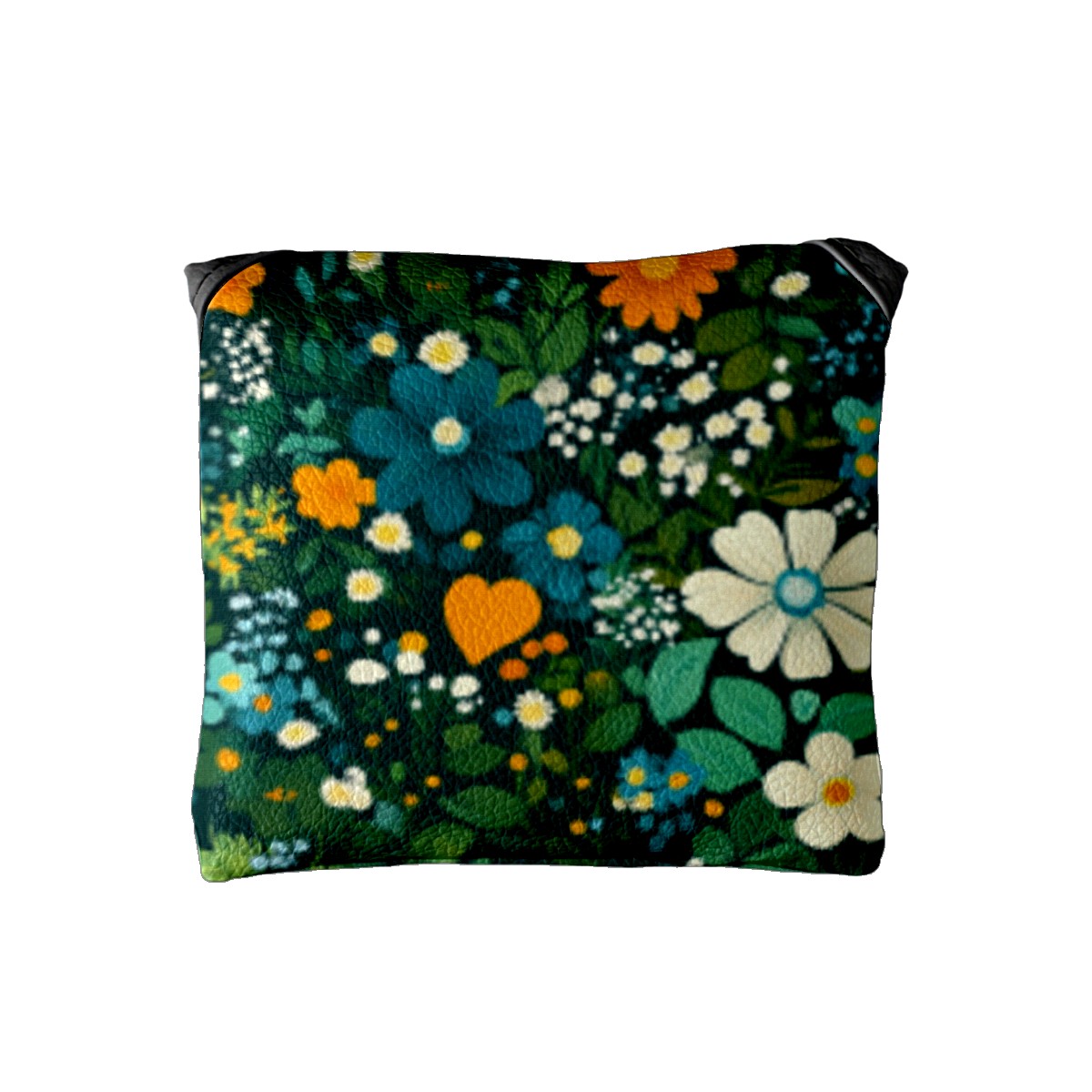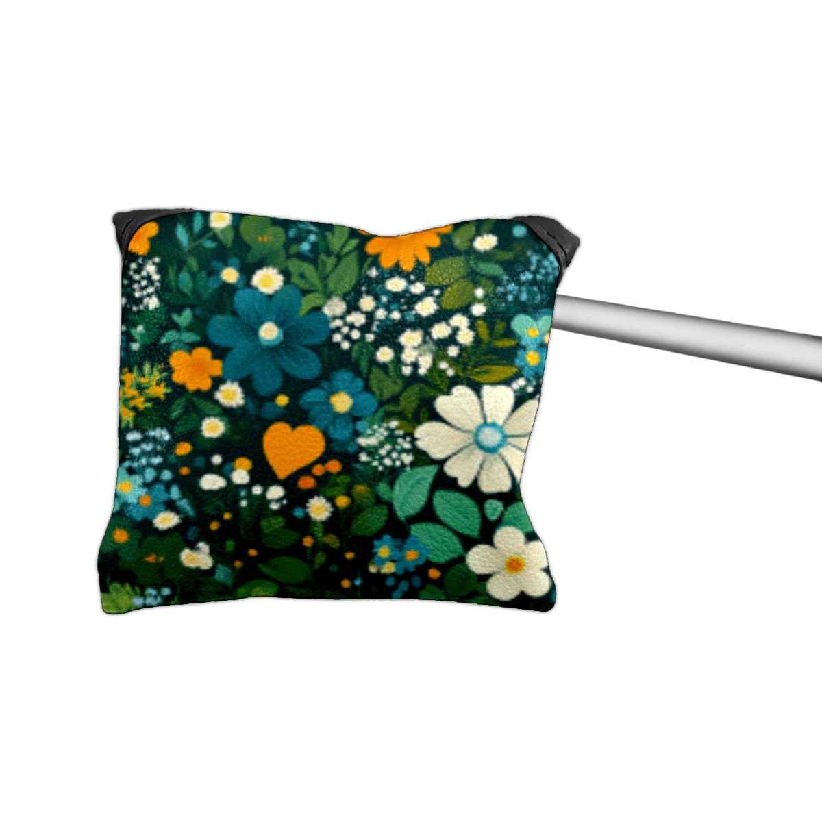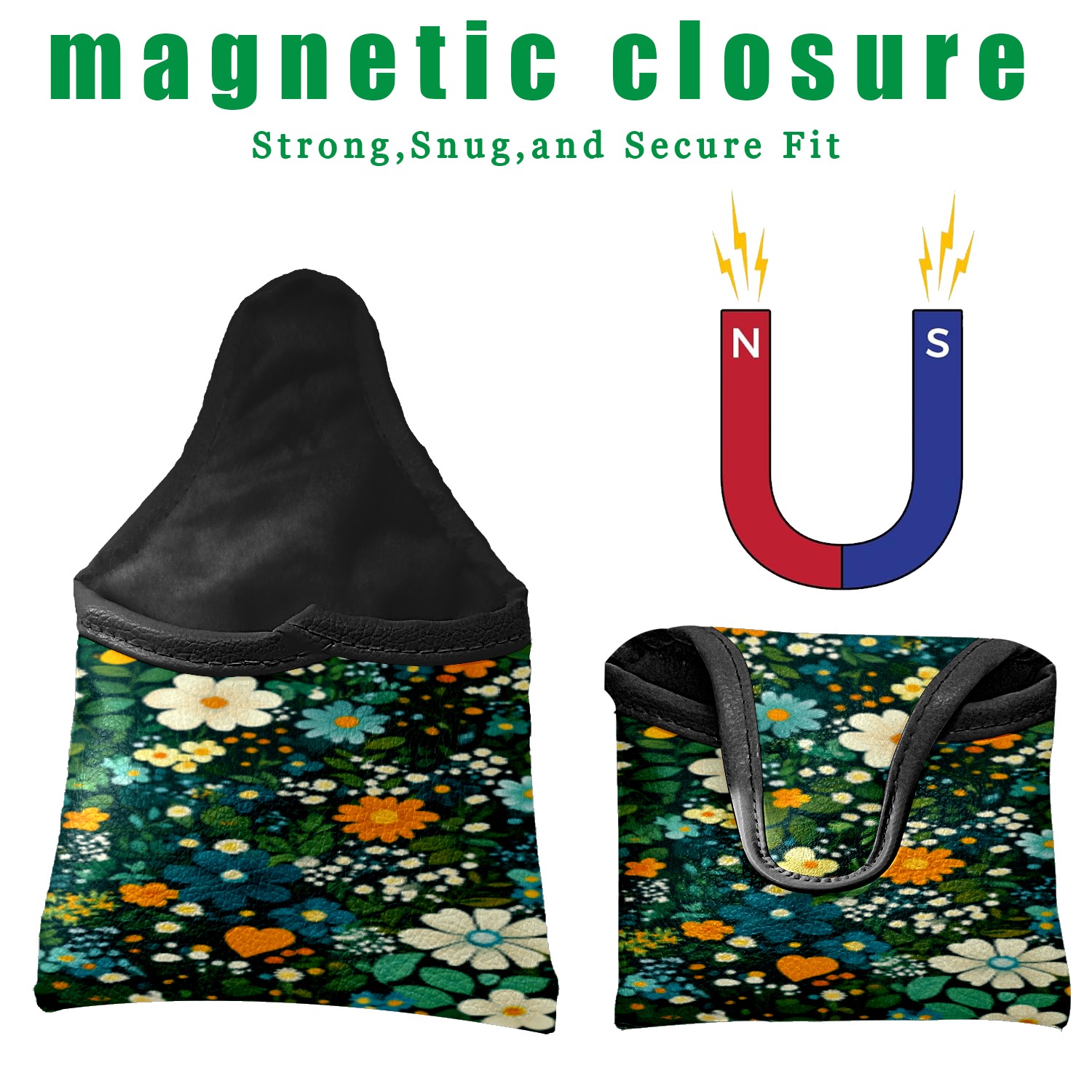 Mallet Putter Cover,Golf Club Head Cover, PU Leather Iron Head Covers Set Gift for Travel Cases Protector Fit Most, Easily Slips on and Secures Green Floral Pattern