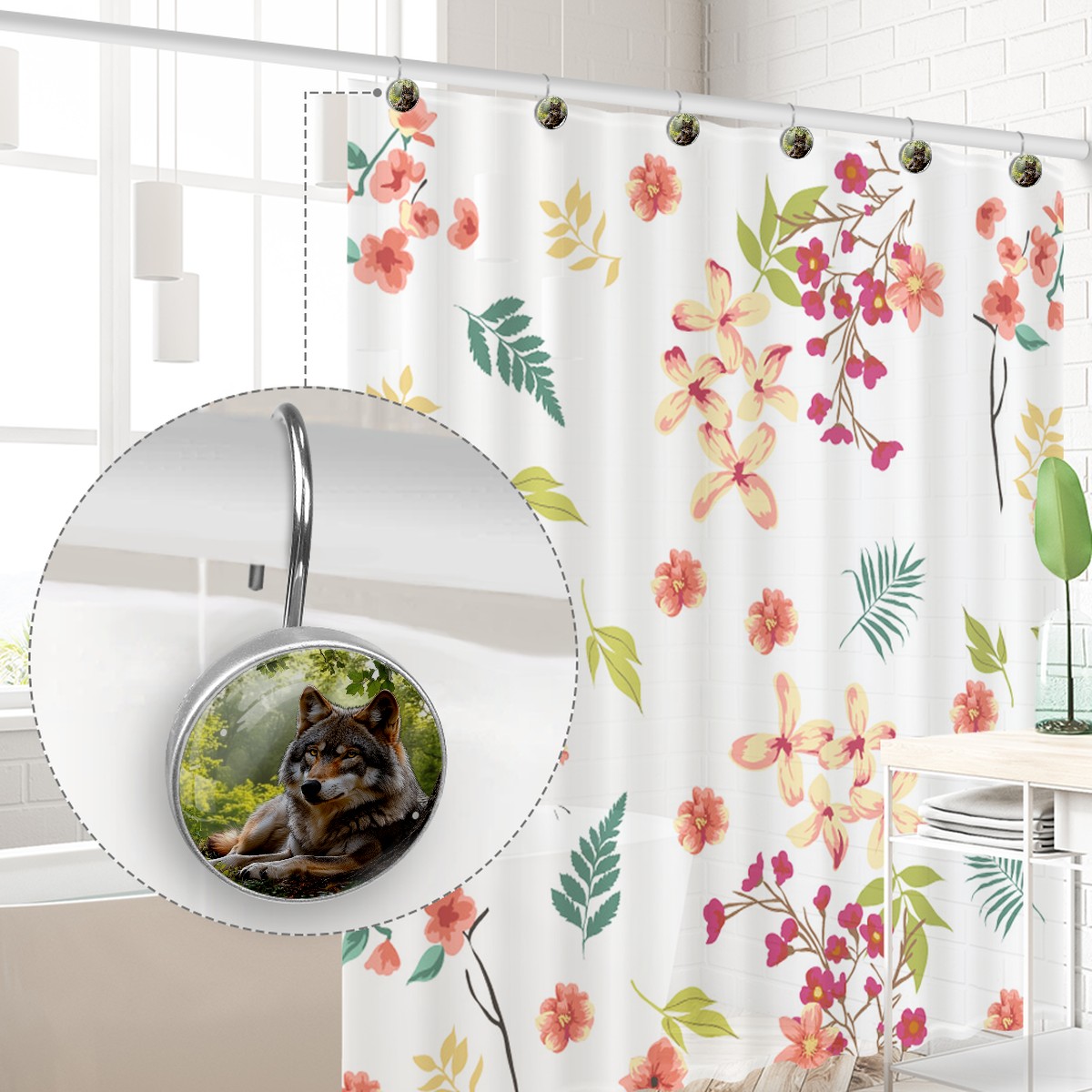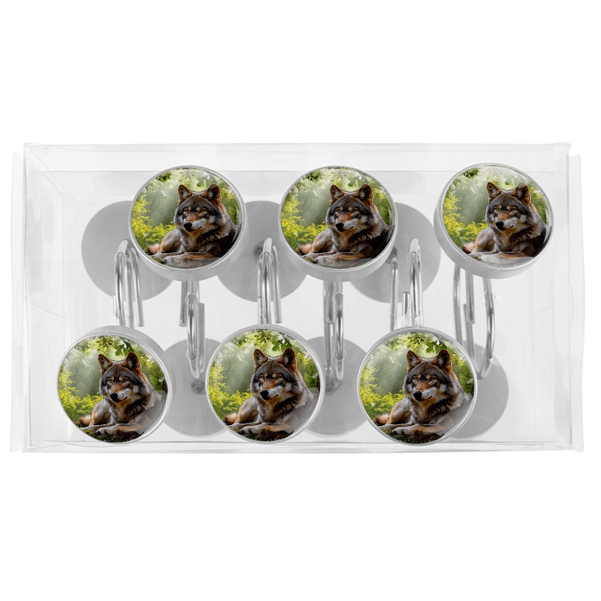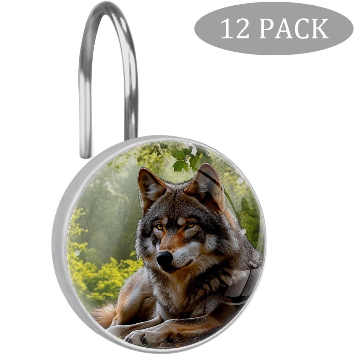 12 PCS Shower Curtain Hooks Decorative Bjkj_An_adult_grey-colored_female_wolf_resting_under_a_tree._T_252bdc23-7398-4d49-994a-d78147801634 Crystal Glass Shower Rings for Bathroom Curtain Stainless Steel Resin Rustproof Shower Hooks