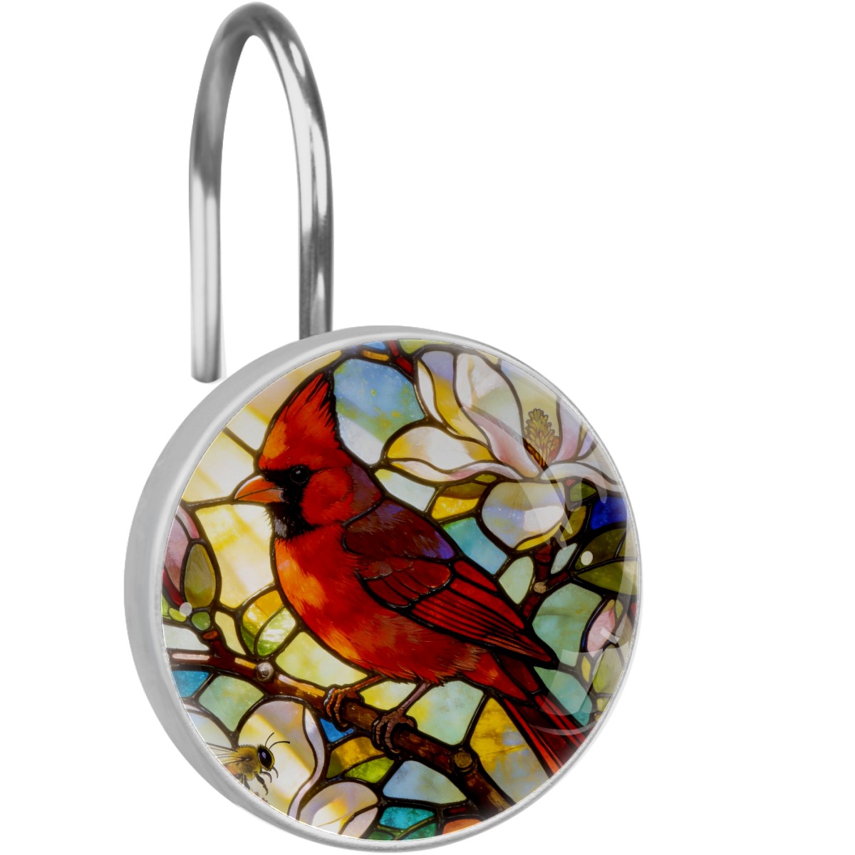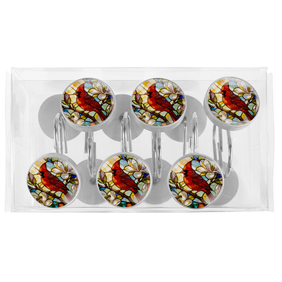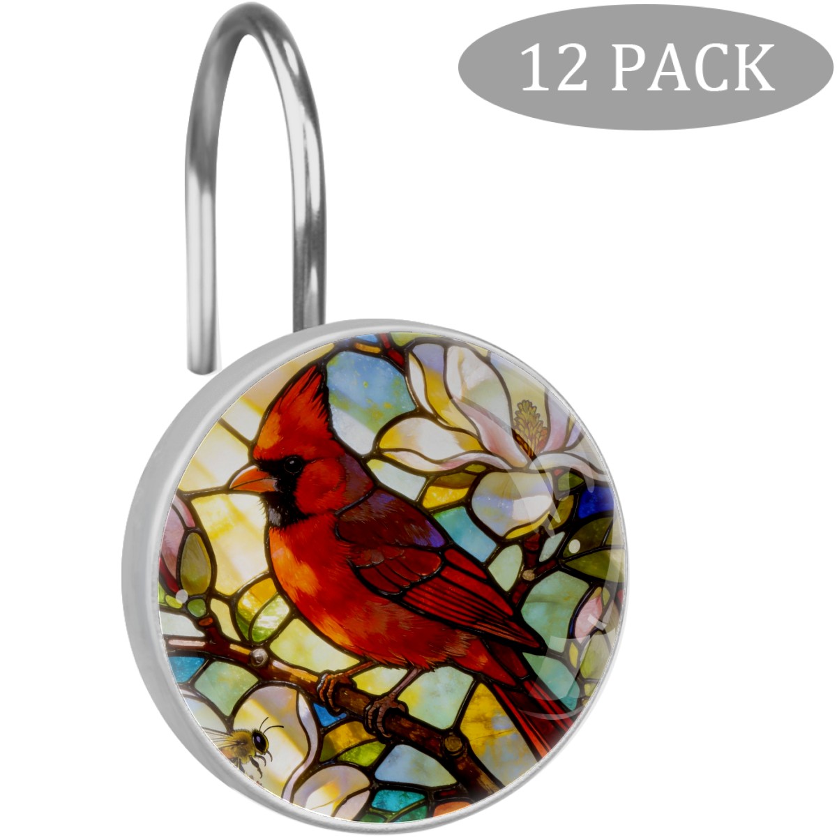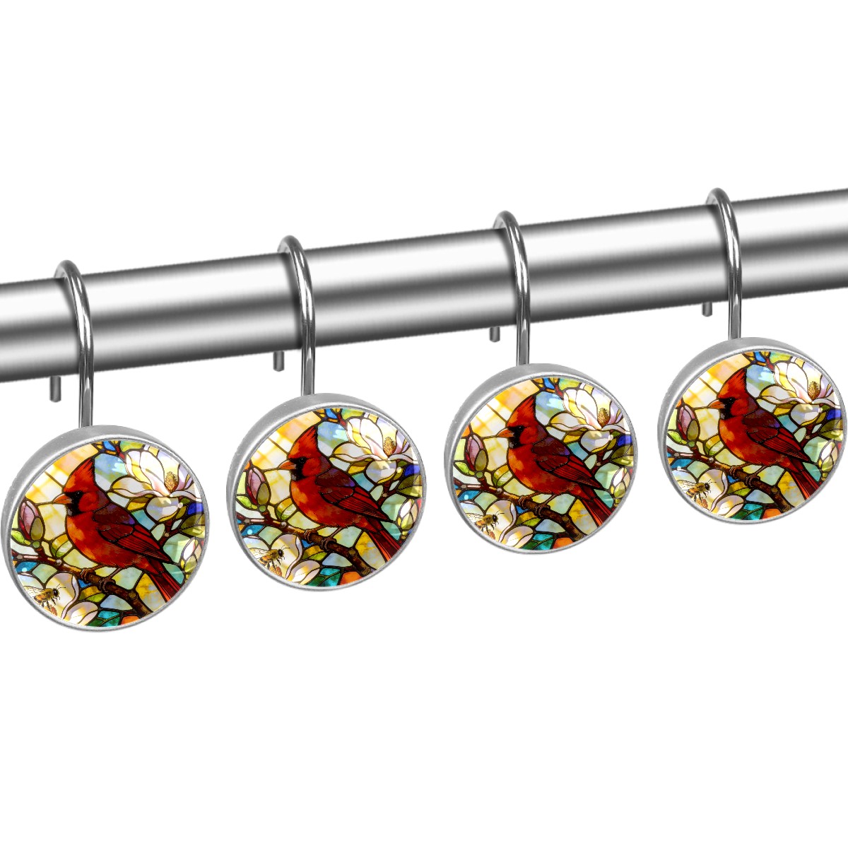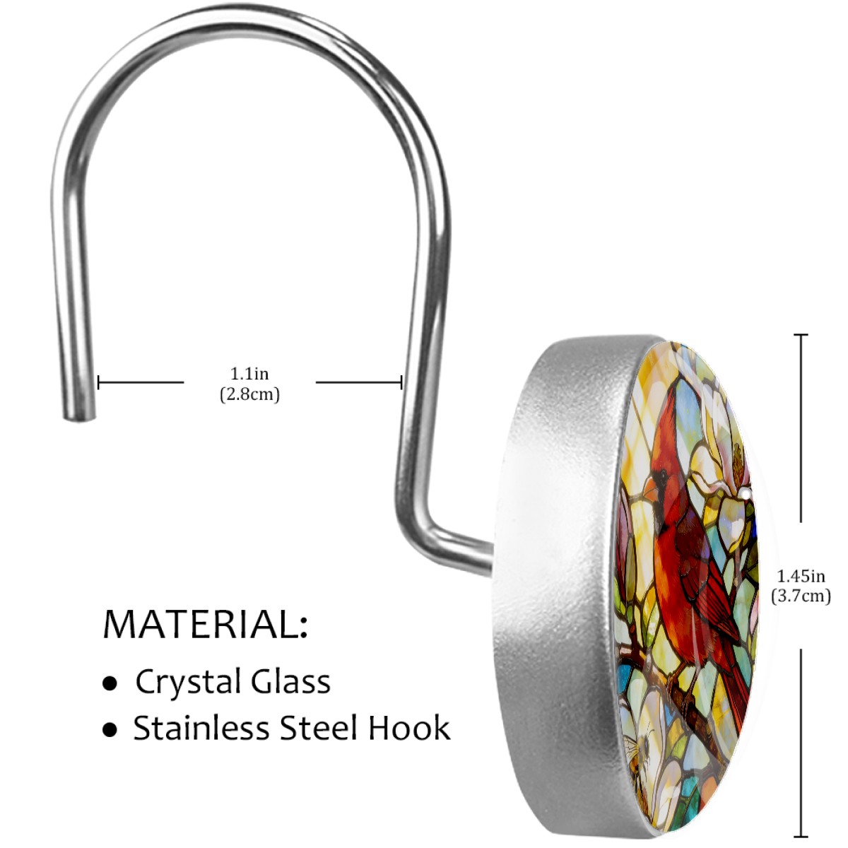 12 PCS Shower Curtain Hooks Decorative Stained Glass Red Cardinal Crystal Glass Shower Rings for Bathroom Curtain Stainless Steel Resin Rustproof Shower Hooks