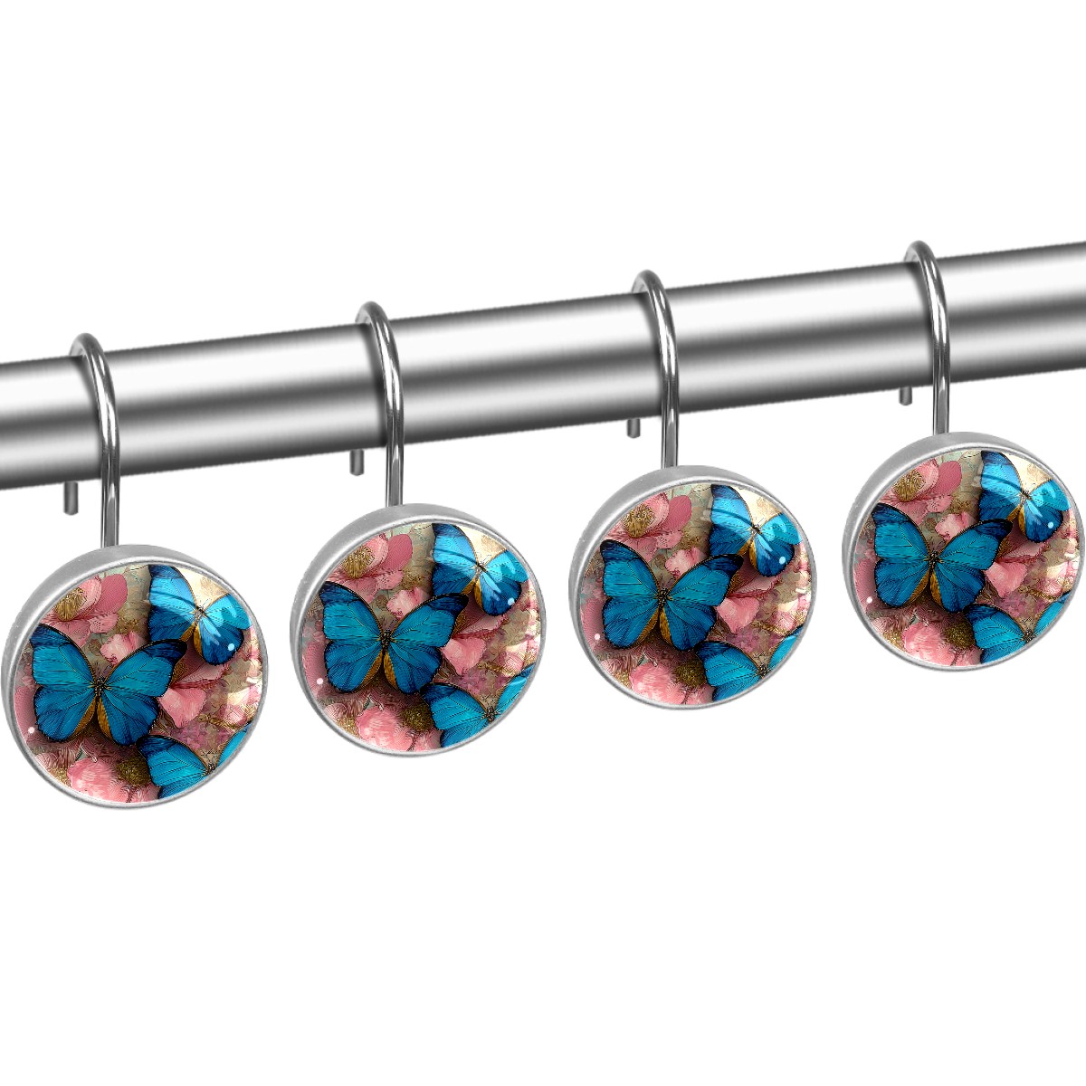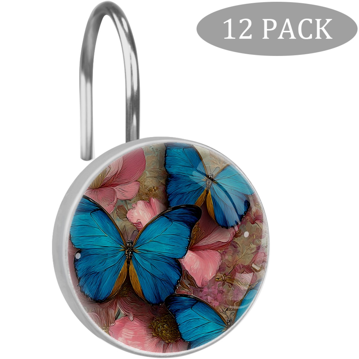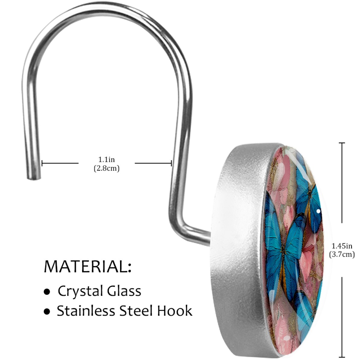 12 PCS Shower Curtain Hooks Decorative Butterfly Vintage Crystal Glass Shower Rings for Bathroom Curtain Stainless Steel Resin Rustproof Shower Hooks