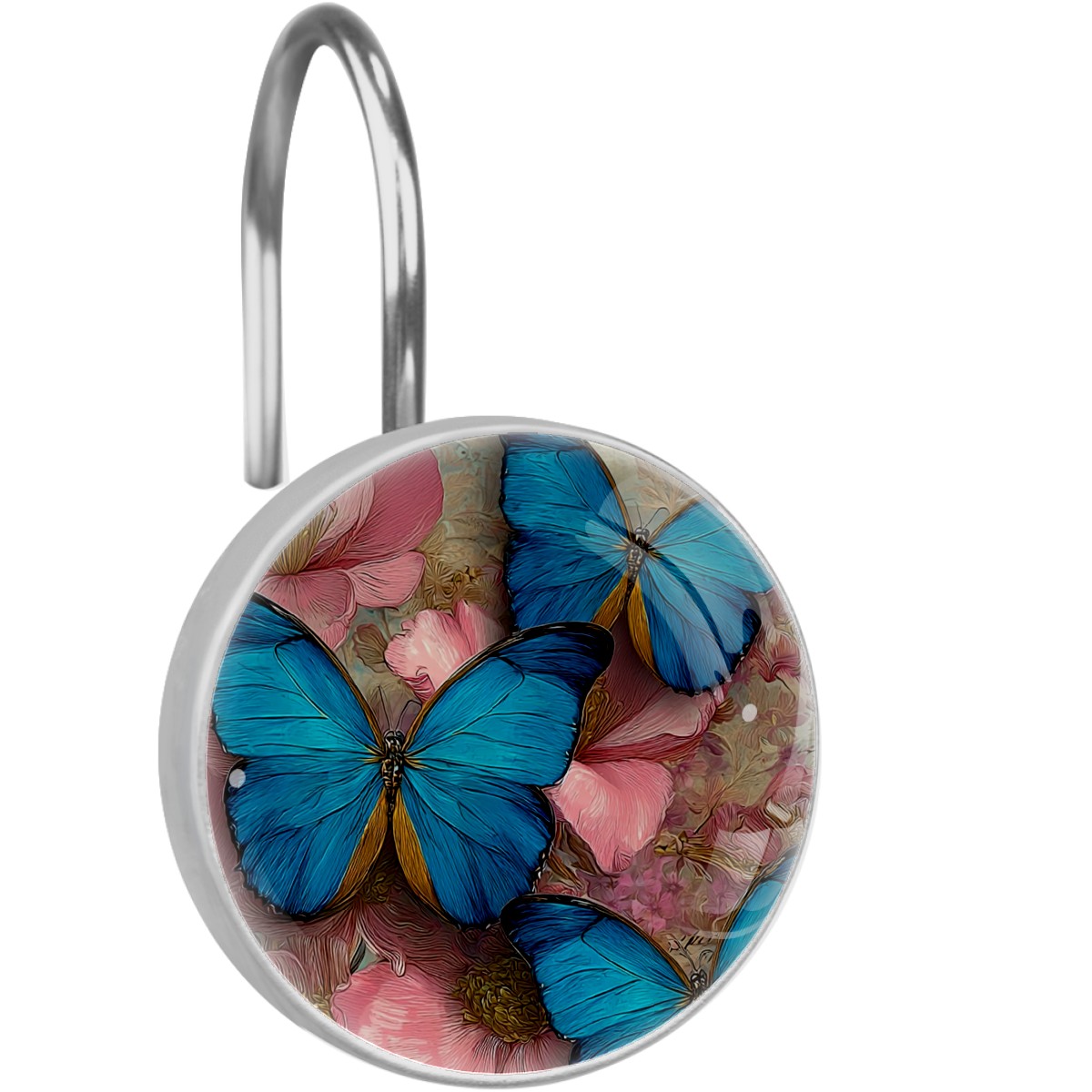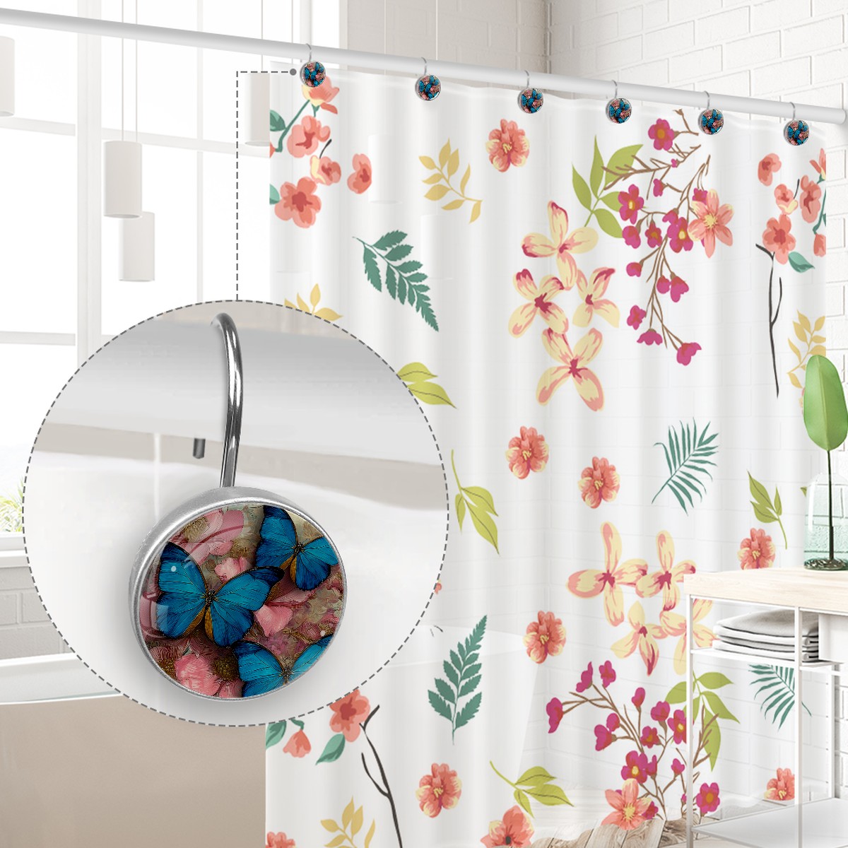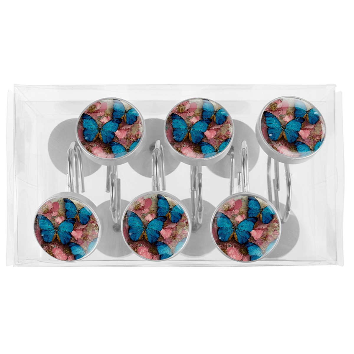 12 PCS Shower Curtain Hooks Decorative Butterfly Vintage Crystal Glass Shower Rings for Bathroom Curtain Stainless Steel Resin Rustproof Shower Hooks