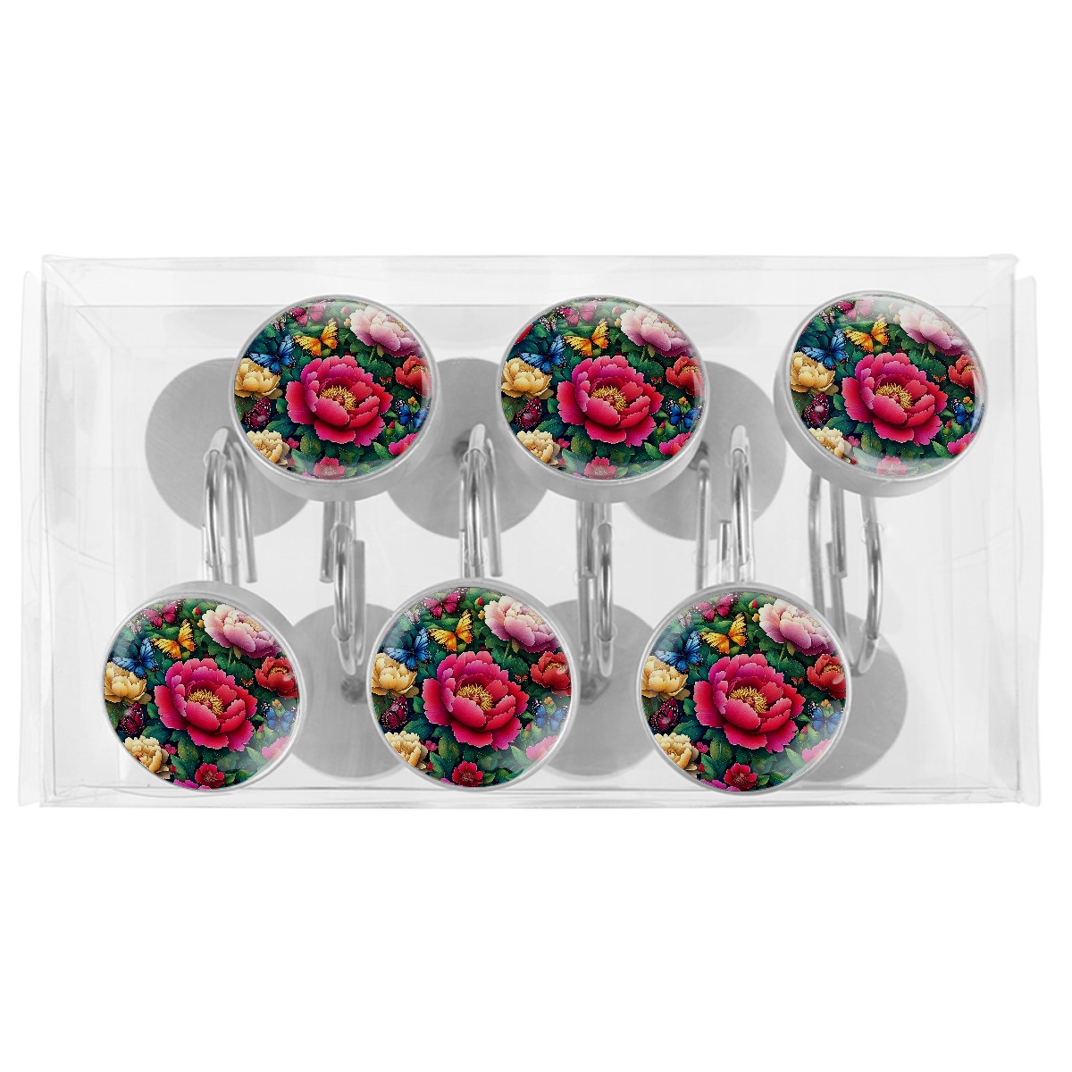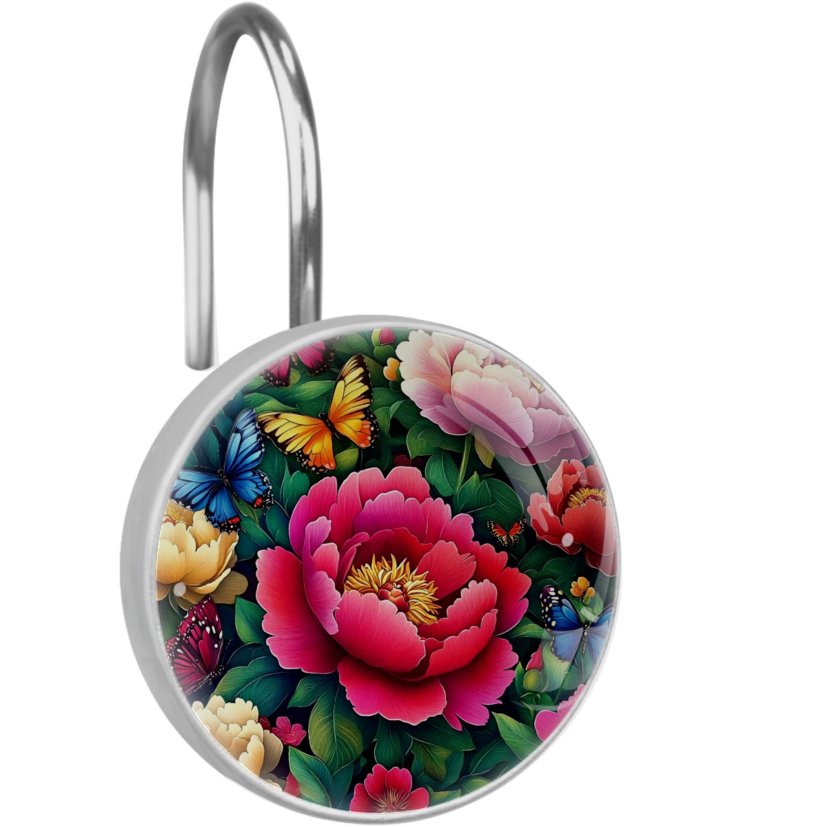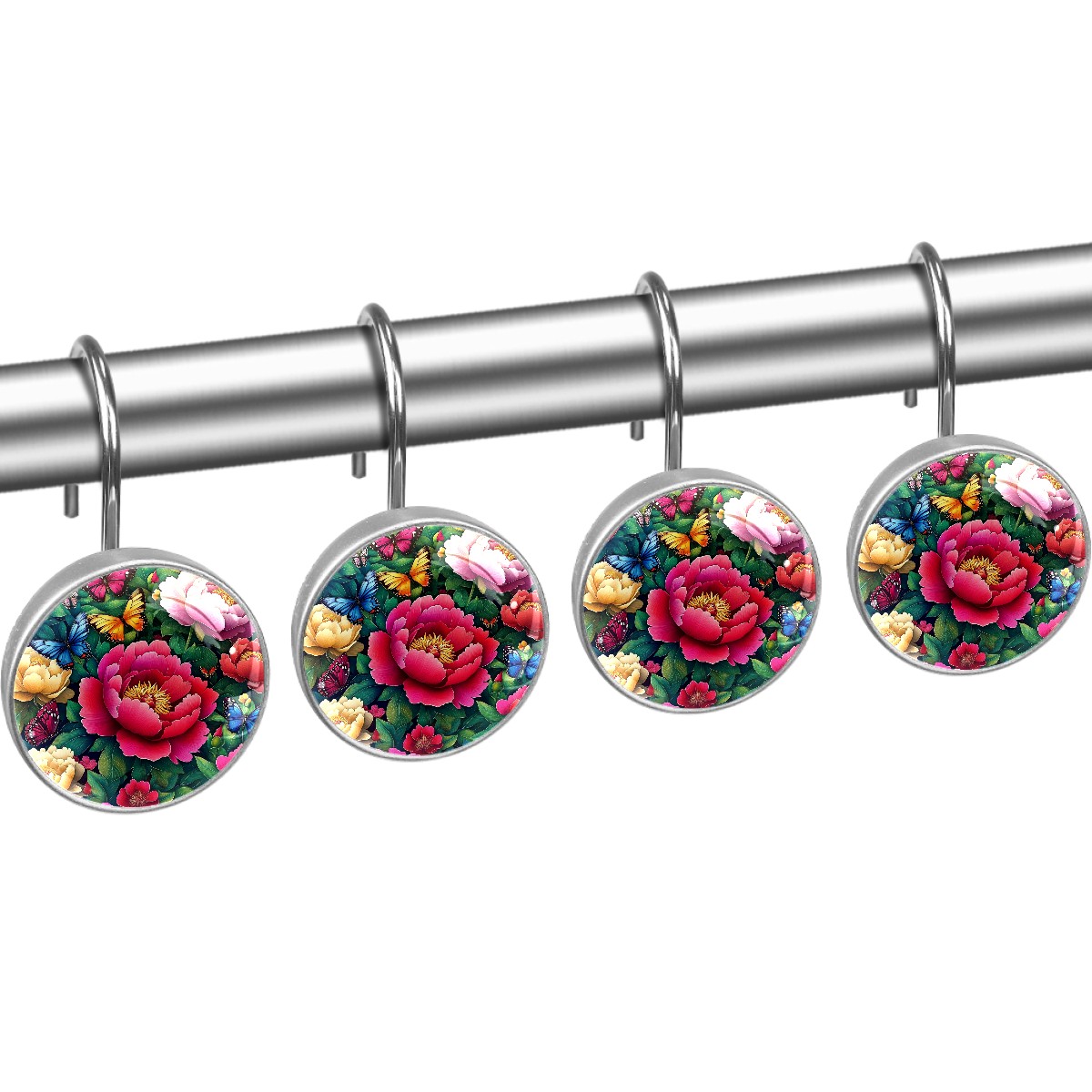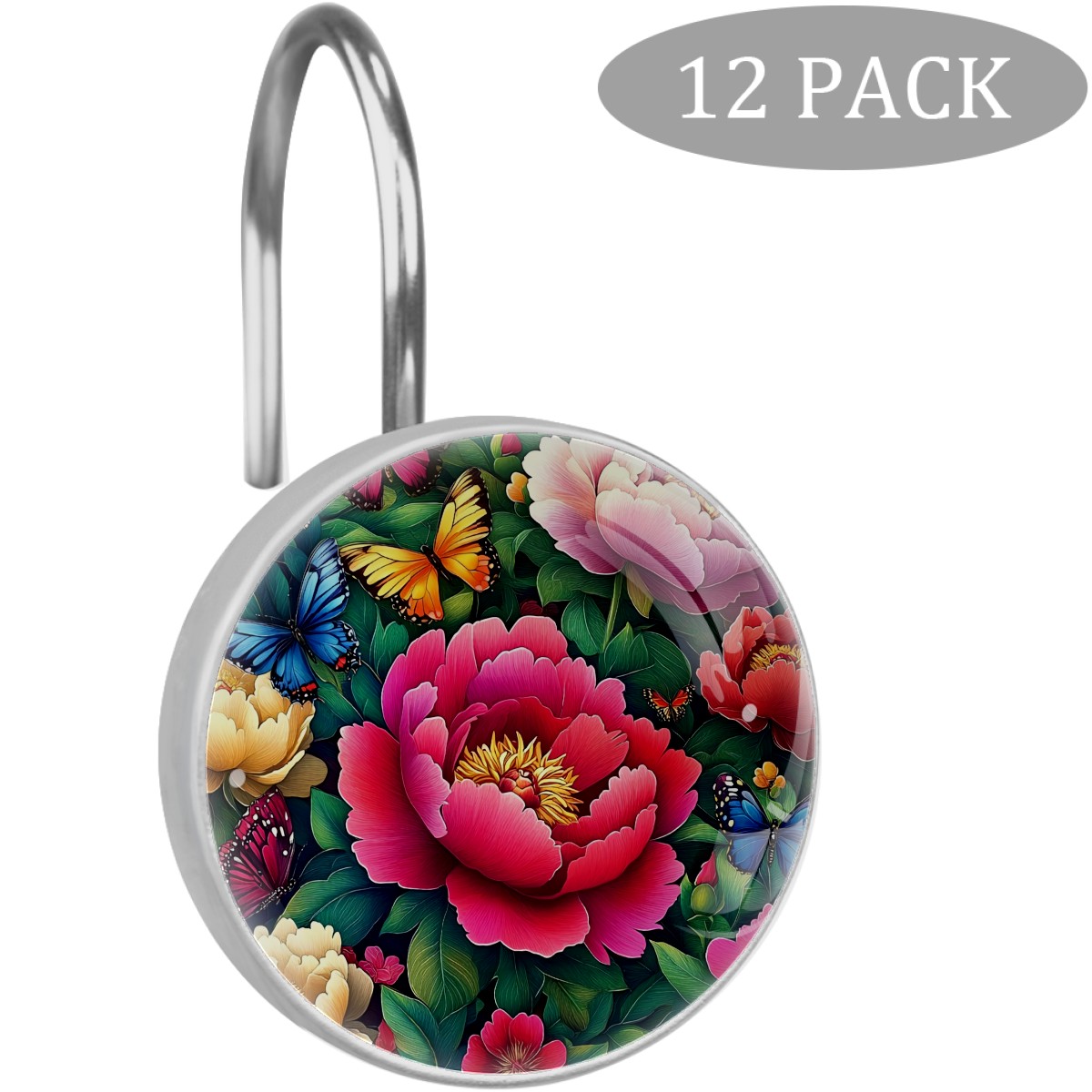 12 PCS Shower Curtain Hooks Decorative Colorful Peonies Butterflies (1) Crystal Glass Shower Rings for Bathroom Curtain Stainless Steel Resin Rustproof Shower Hooks