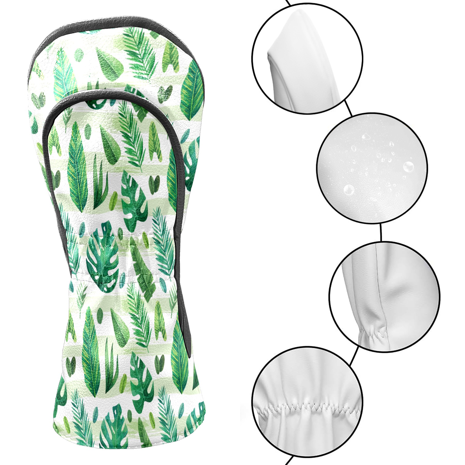 Golf Club Head Cover Waterproof Leather for Driver & Fairway Wood, Driver Headcovers, Golf Accessories for Men Women, Anti-Scratch, Golf Gift for Golfers, 1/3/5 Wood Cover Leaves Green