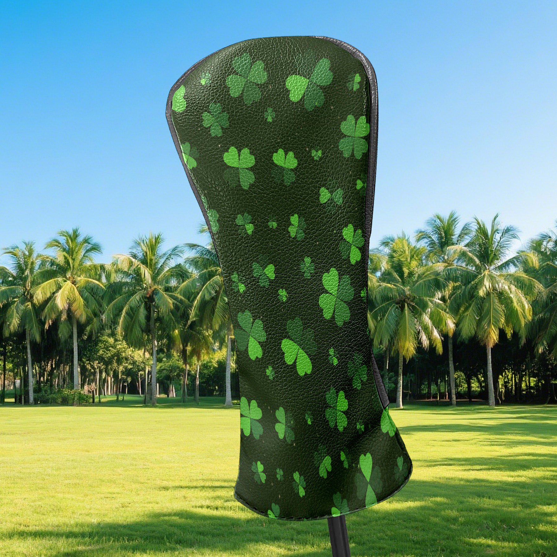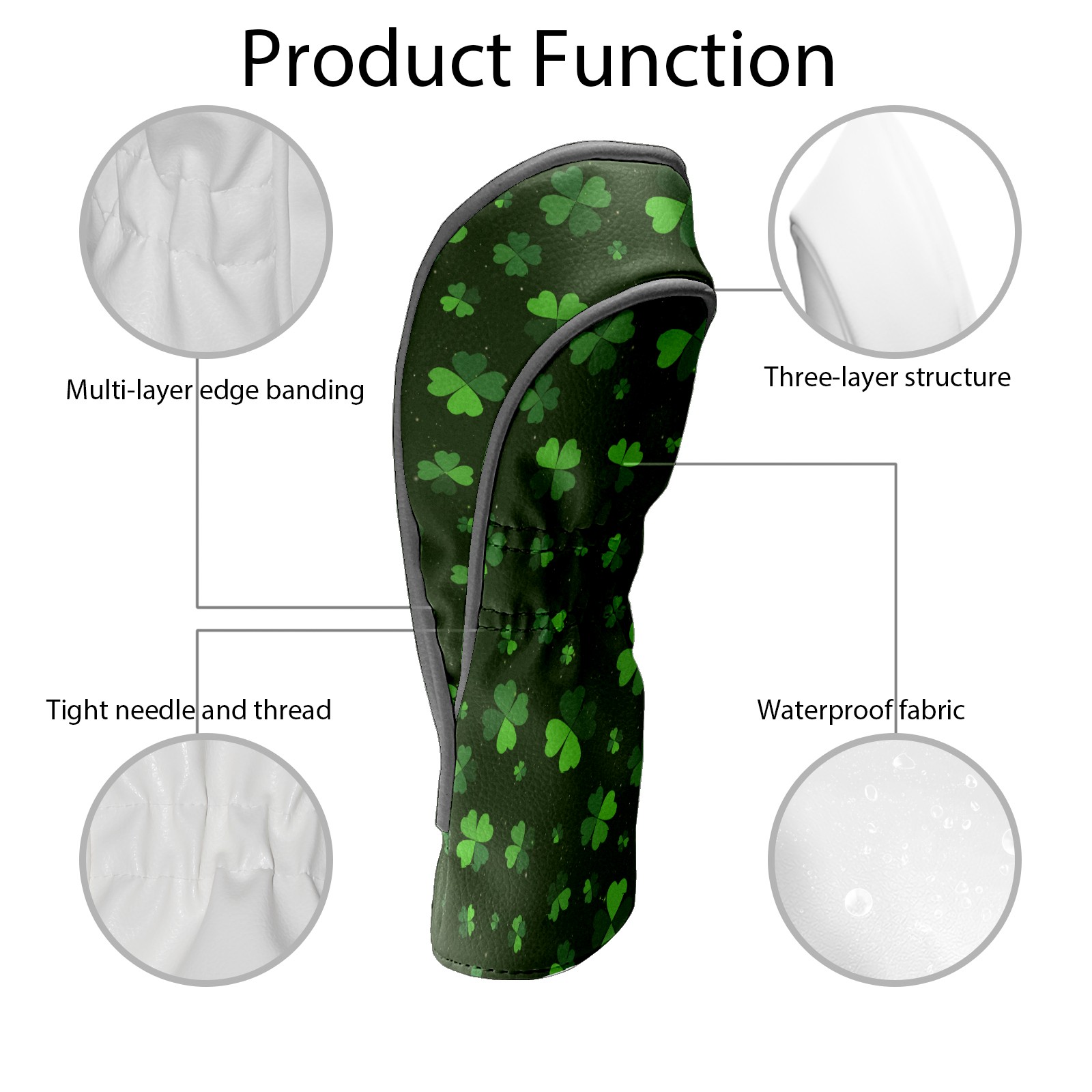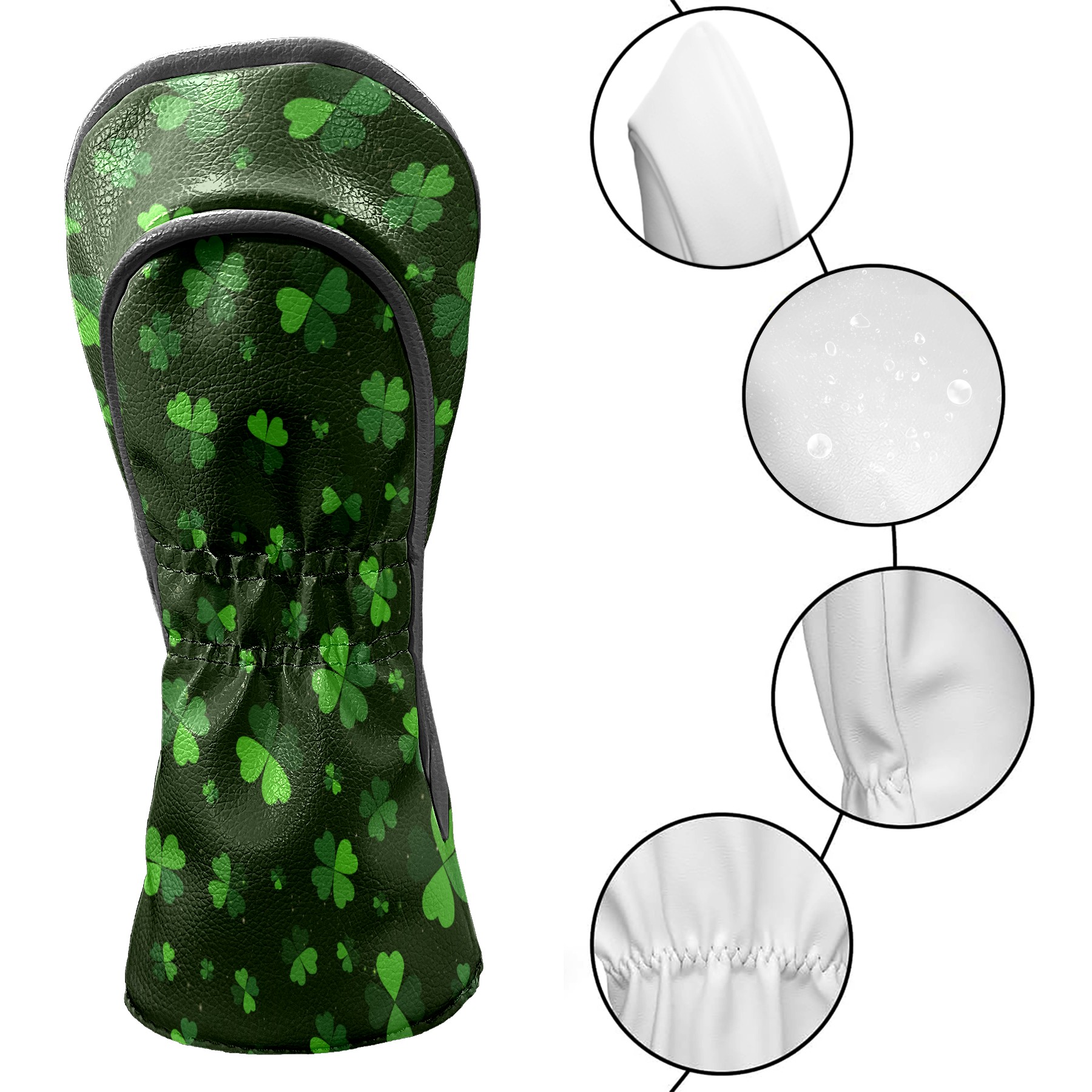 Golf Club Head Cover Waterproof Leather for Driver & Fairway Wood, Driver Headcovers, Golf Accessories for Men Women, Anti-Scratch, Golf Gift for Golfers, 1/3/5 Wood Cover Lucky 3-leaf grass durk