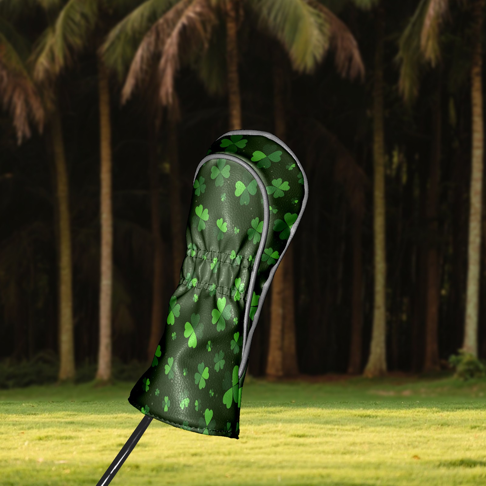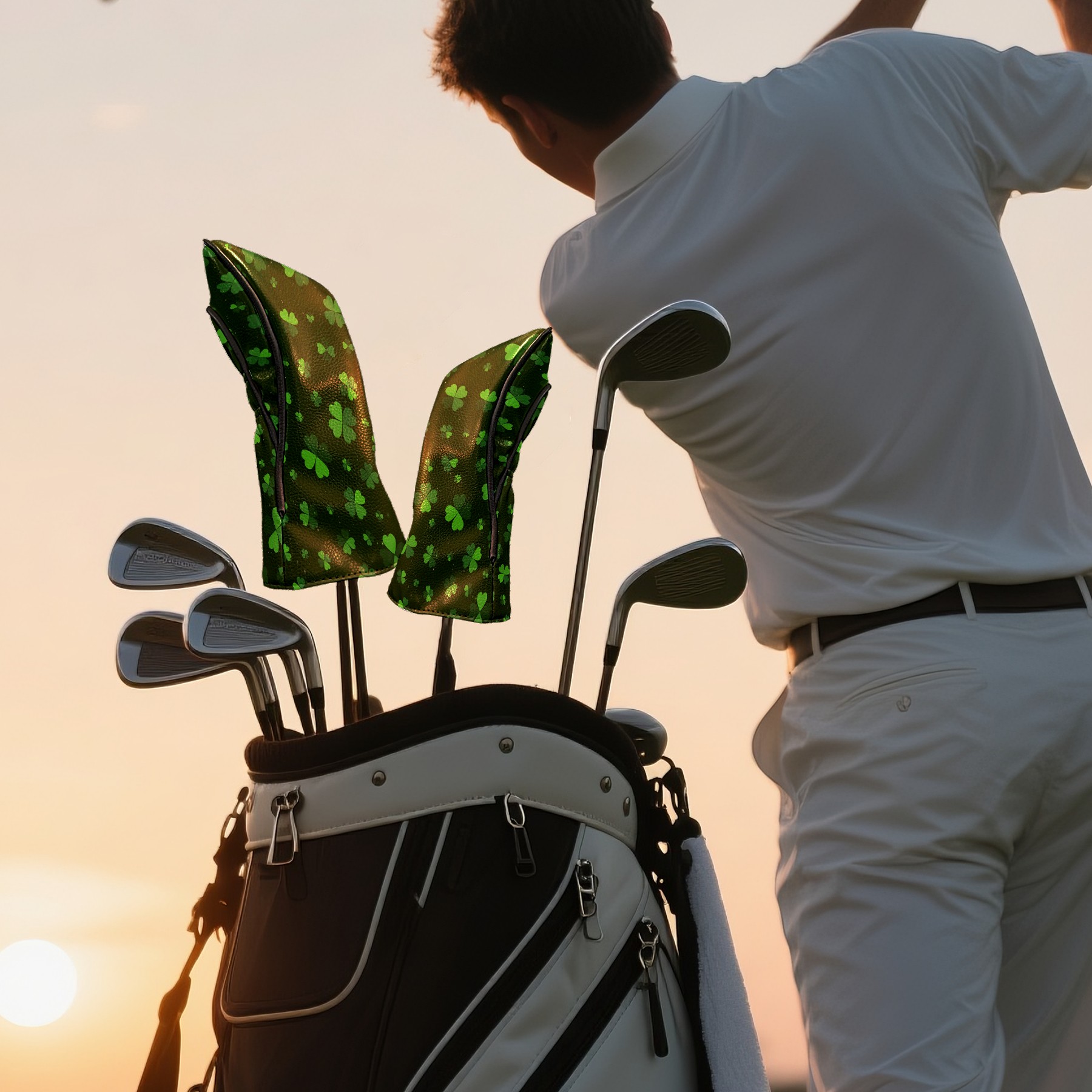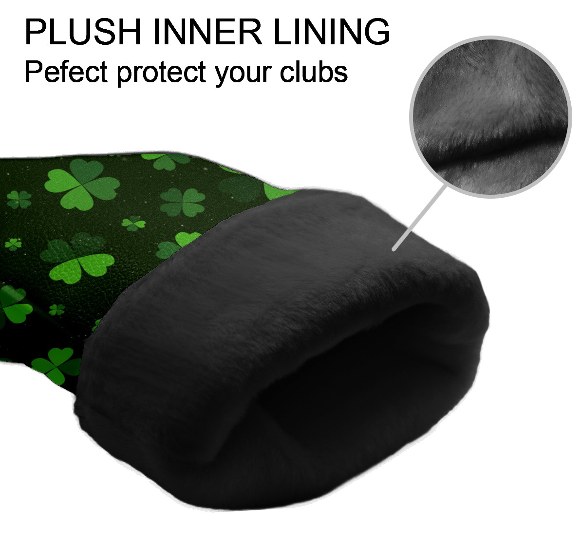 Golf Club Head Cover Waterproof Leather for Driver & Fairway Wood, Driver Headcovers, Golf Accessories for Men Women, Anti-Scratch, Golf Gift for Golfers, 1/3/5 Wood Cover Lucky 3-leaf grass durk