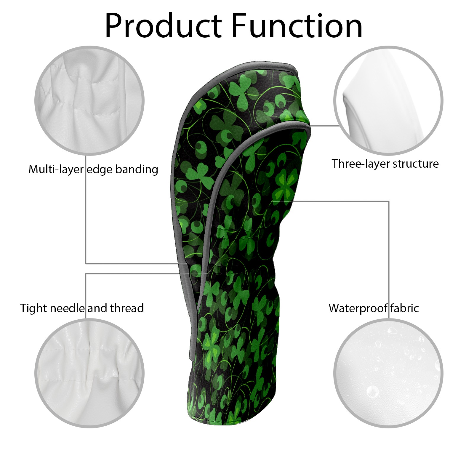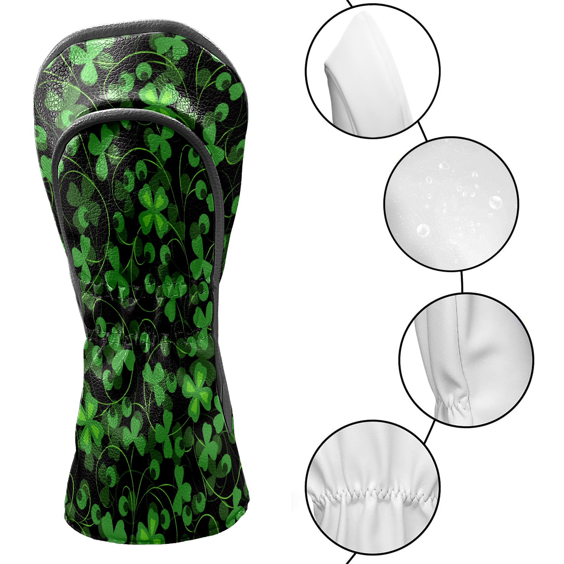 Golf Club Head Cover Waterproof Leather for Driver & Fairway Wood, Driver Headcovers, Golf Accessories for Men Women, Anti-Scratch, Golf Gift for Golfers, 1/3/5 Wood Cover green Lucky 3-leaf grass