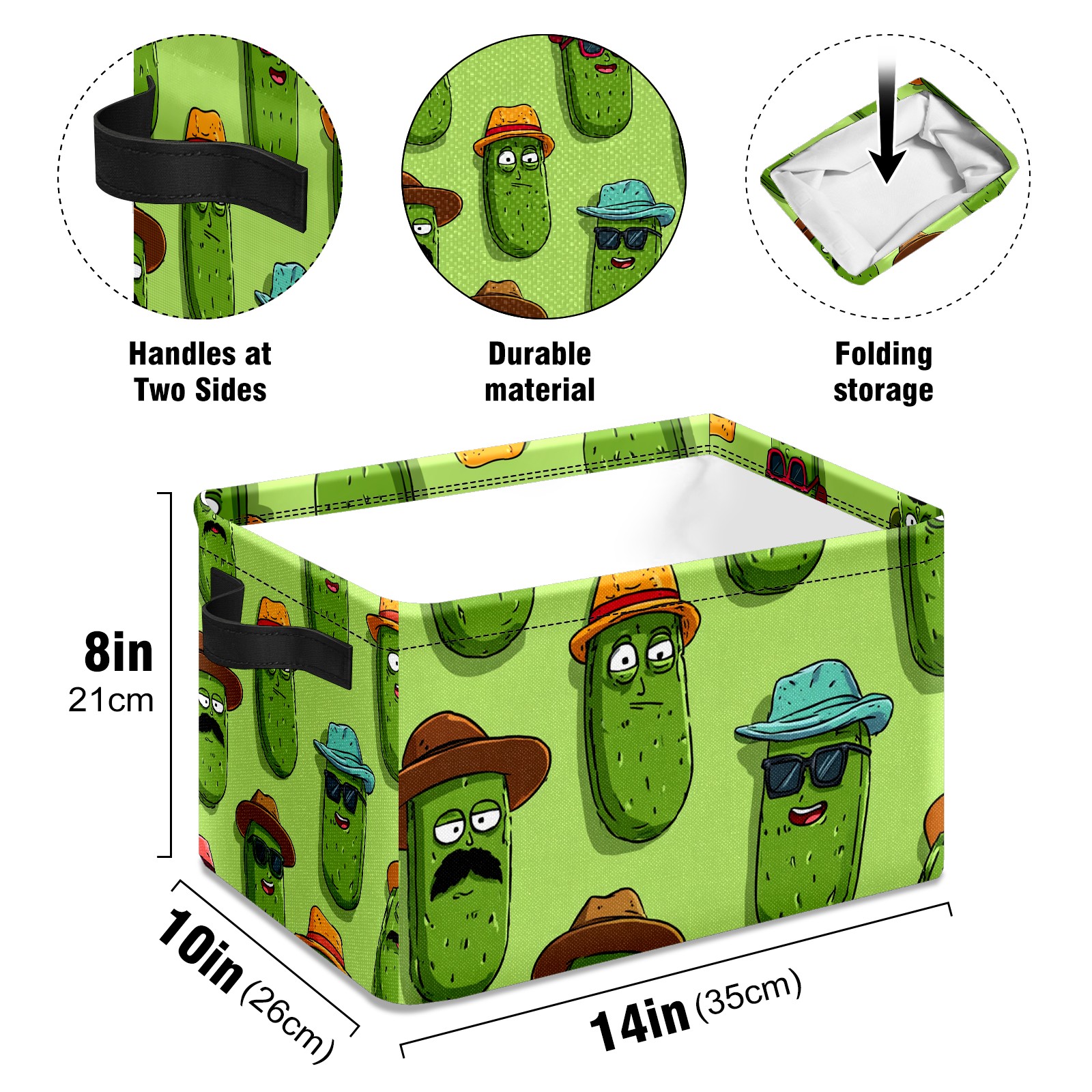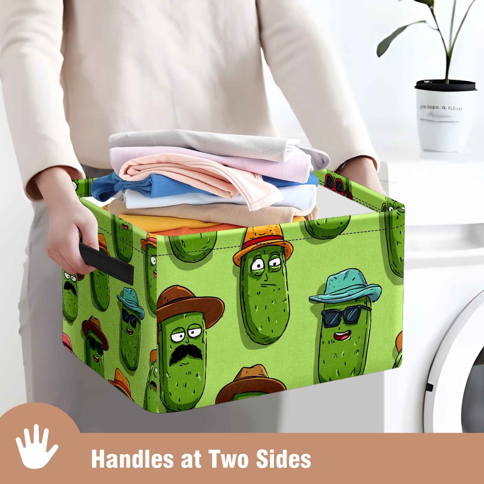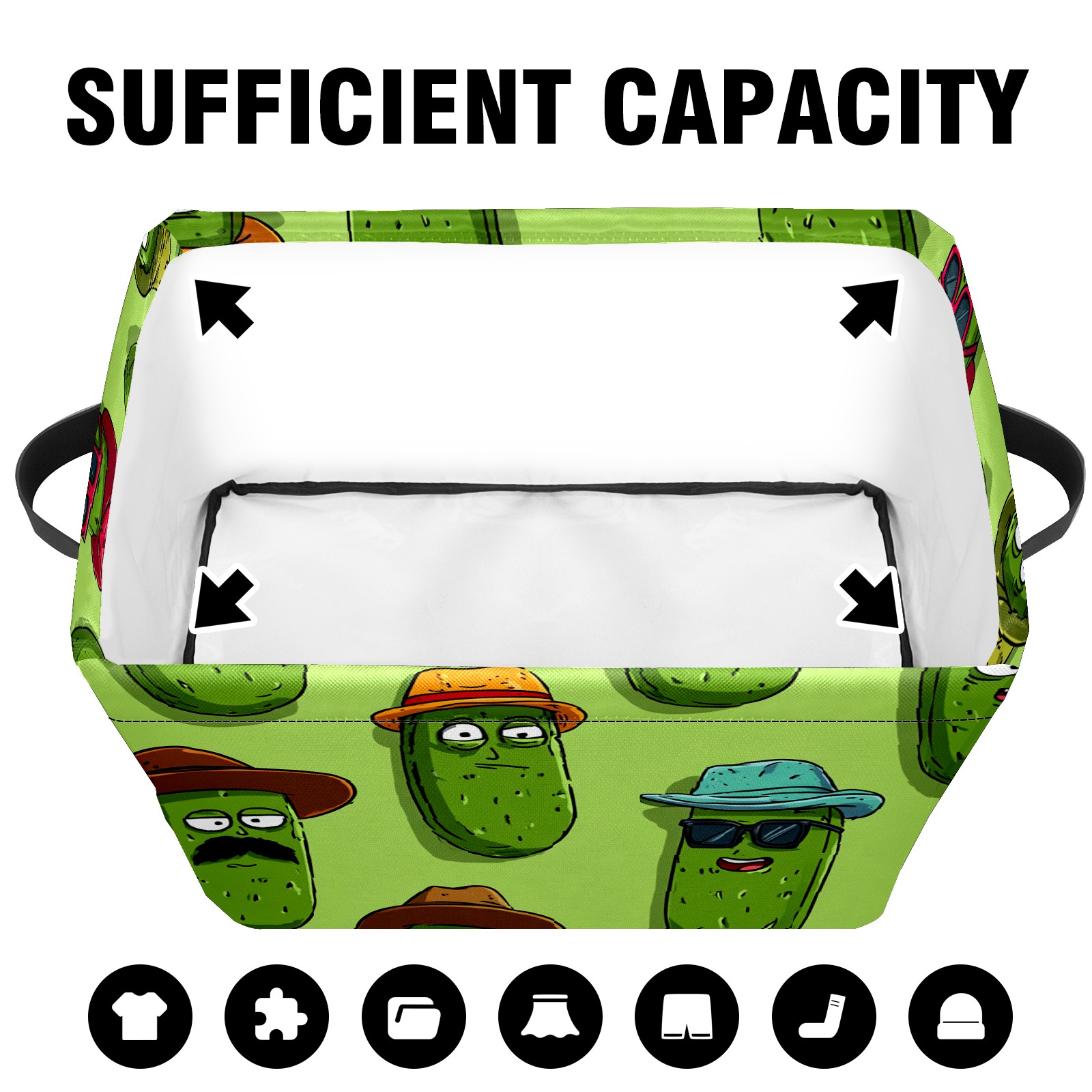 MSINMKOK Storage Basket for Organizing Pickles Green Large Basket Storage Shelves, Fabric Basket Organizer Bin with Handles for Closet Toys Clothes Organizing Home Nursery Gifts