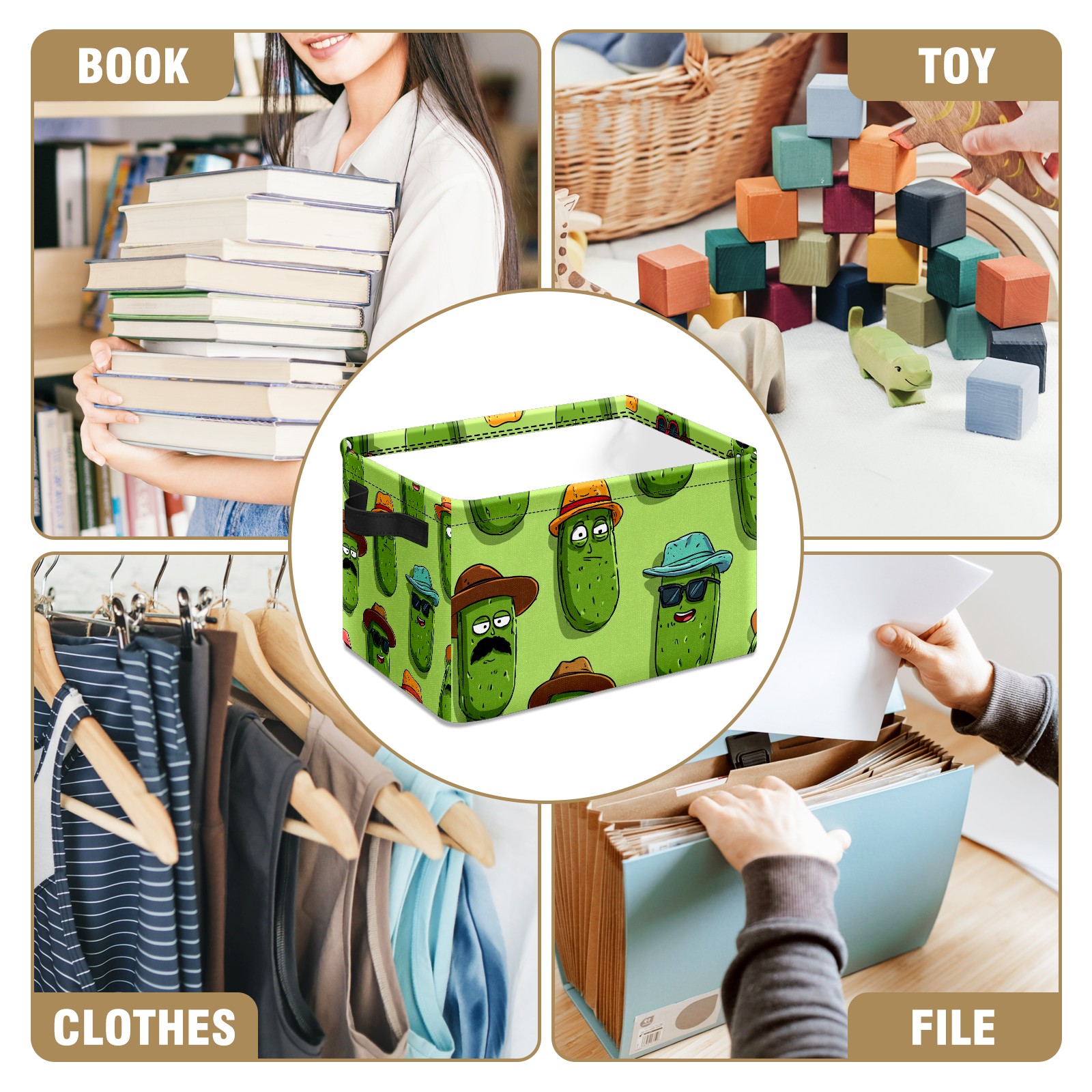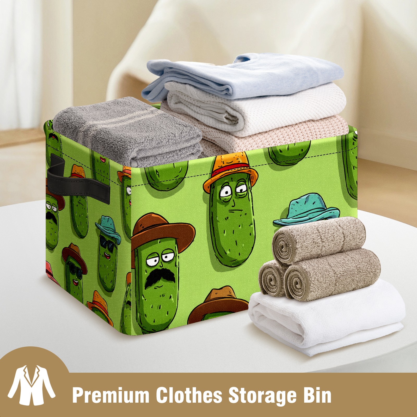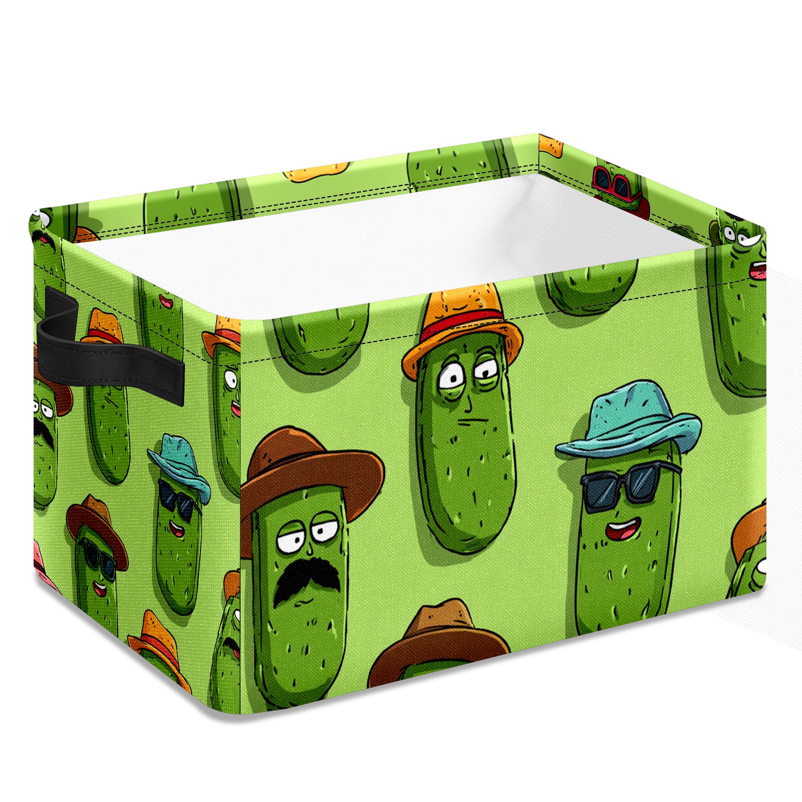 MSINMKOK Storage Basket for Organizing Pickles Green Large Basket Storage Shelves, Fabric Basket Organizer Bin with Handles for Closet Toys Clothes Organizing Home Nursery Gifts