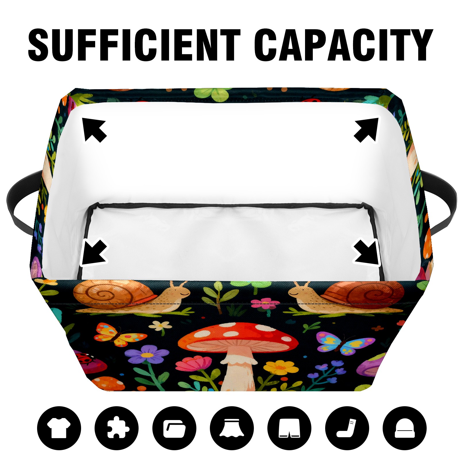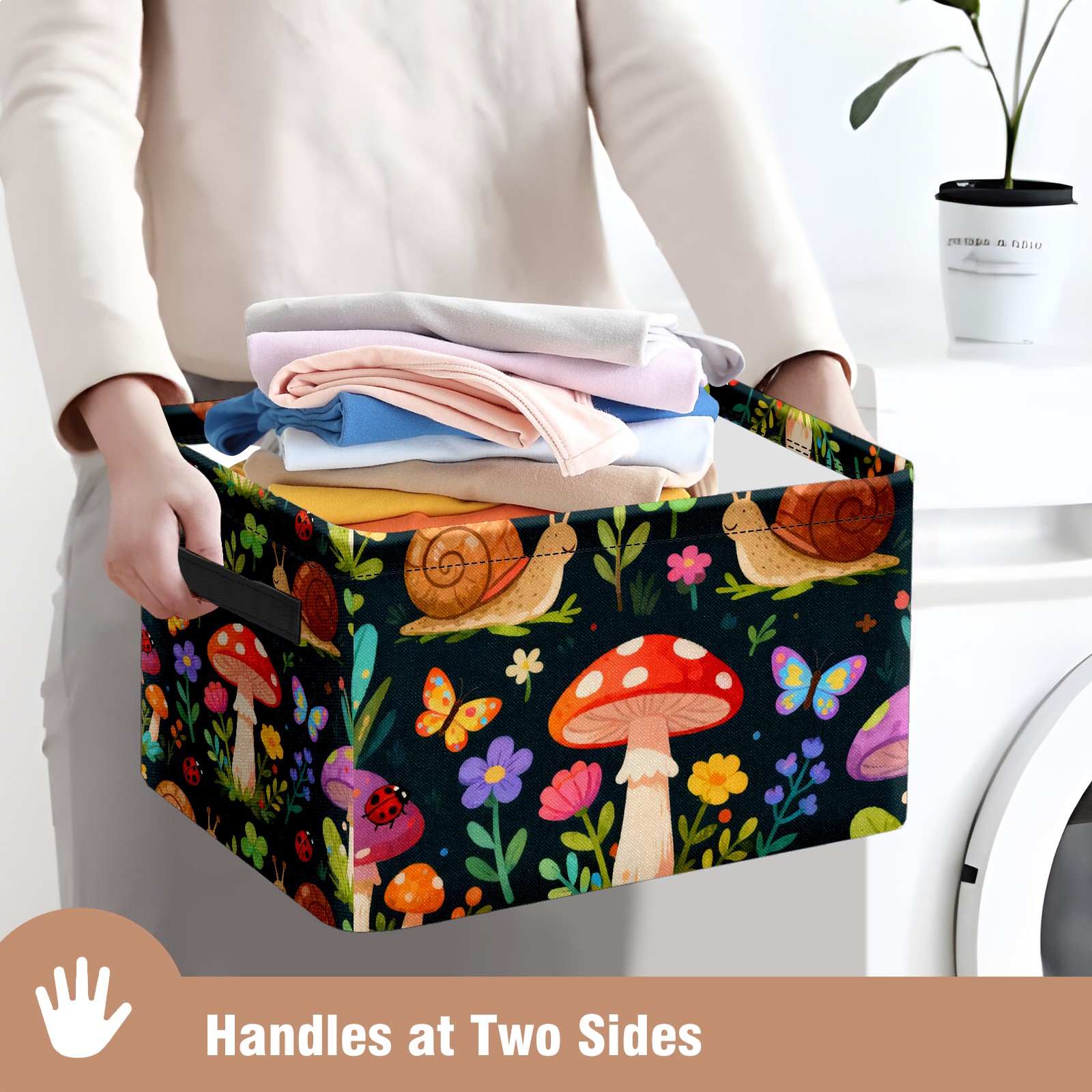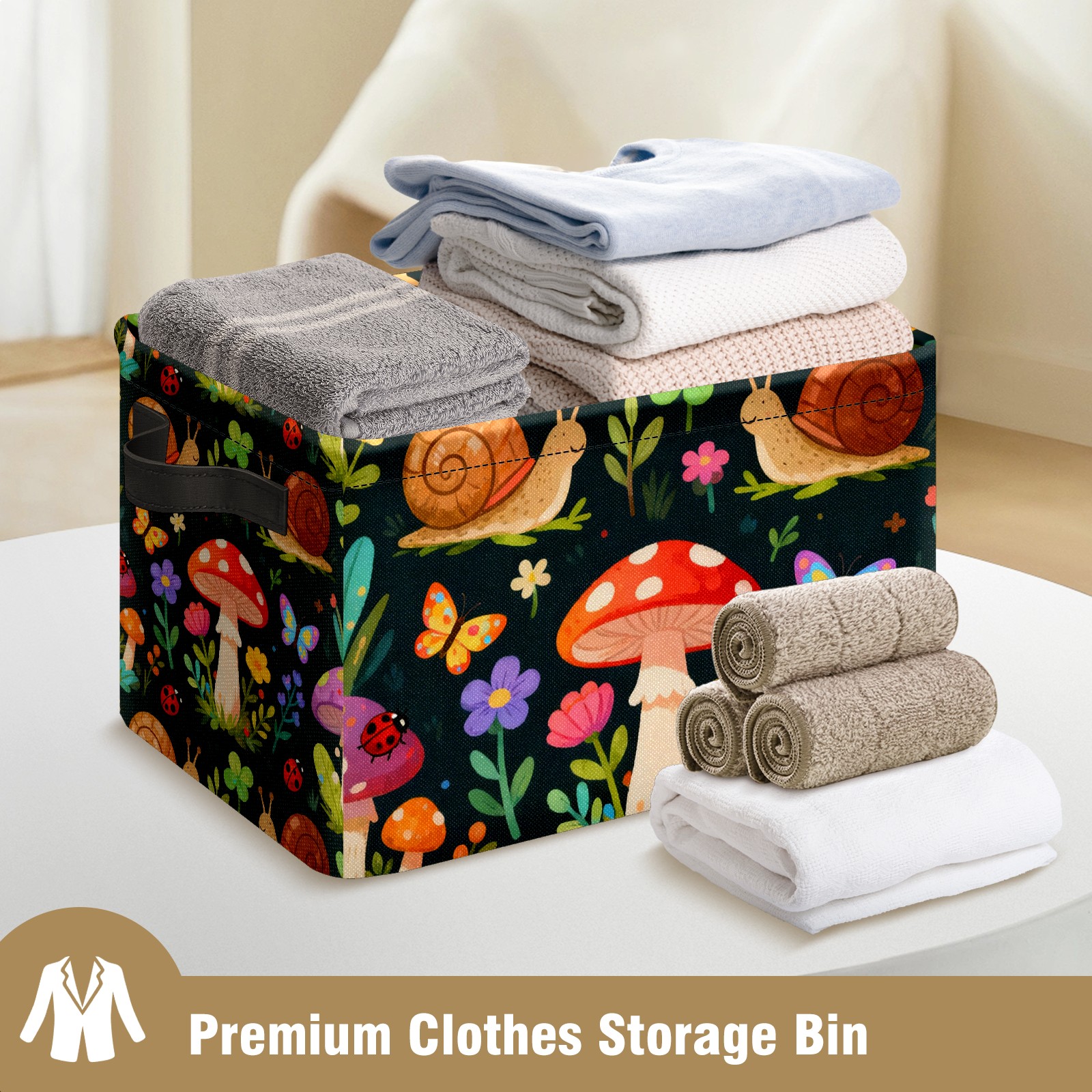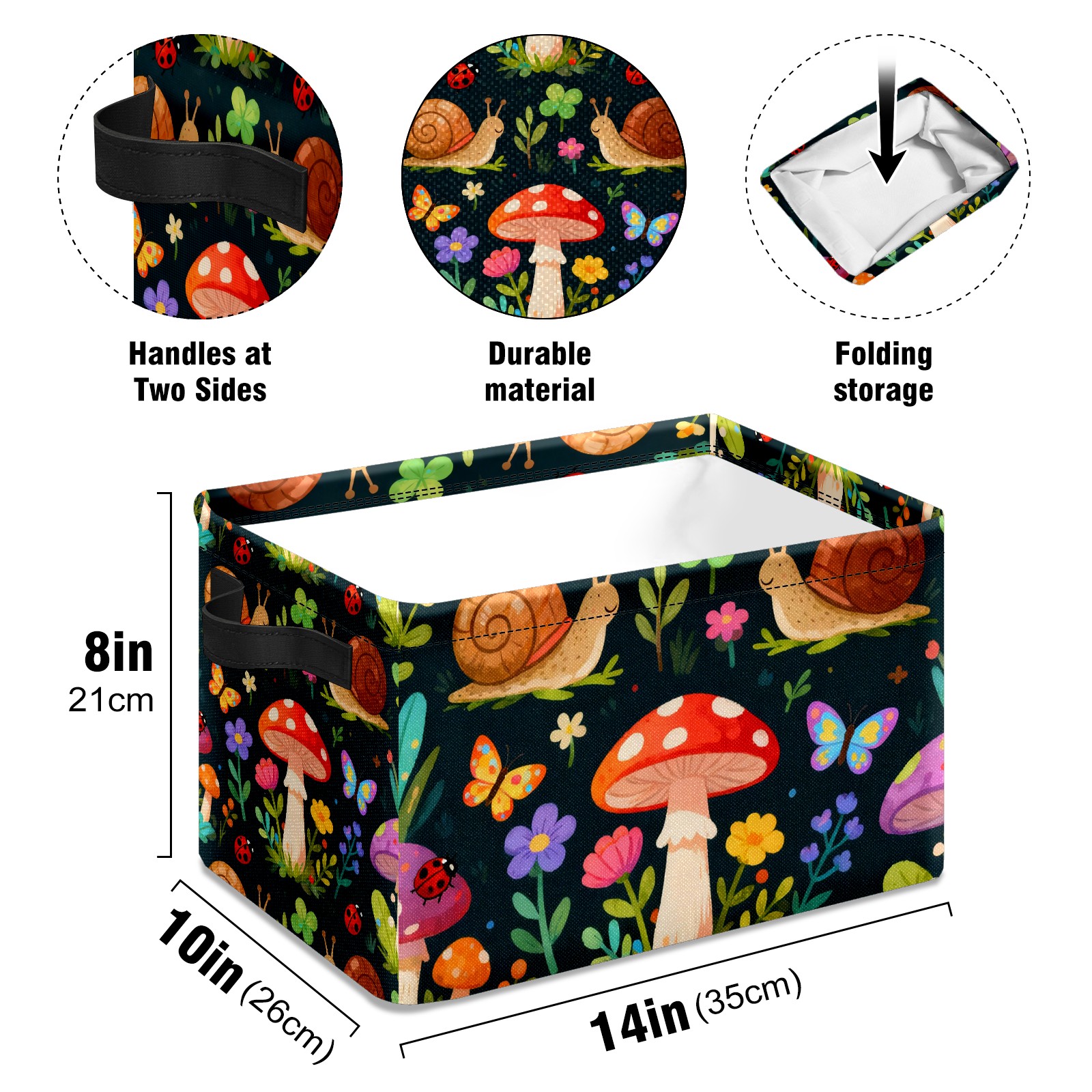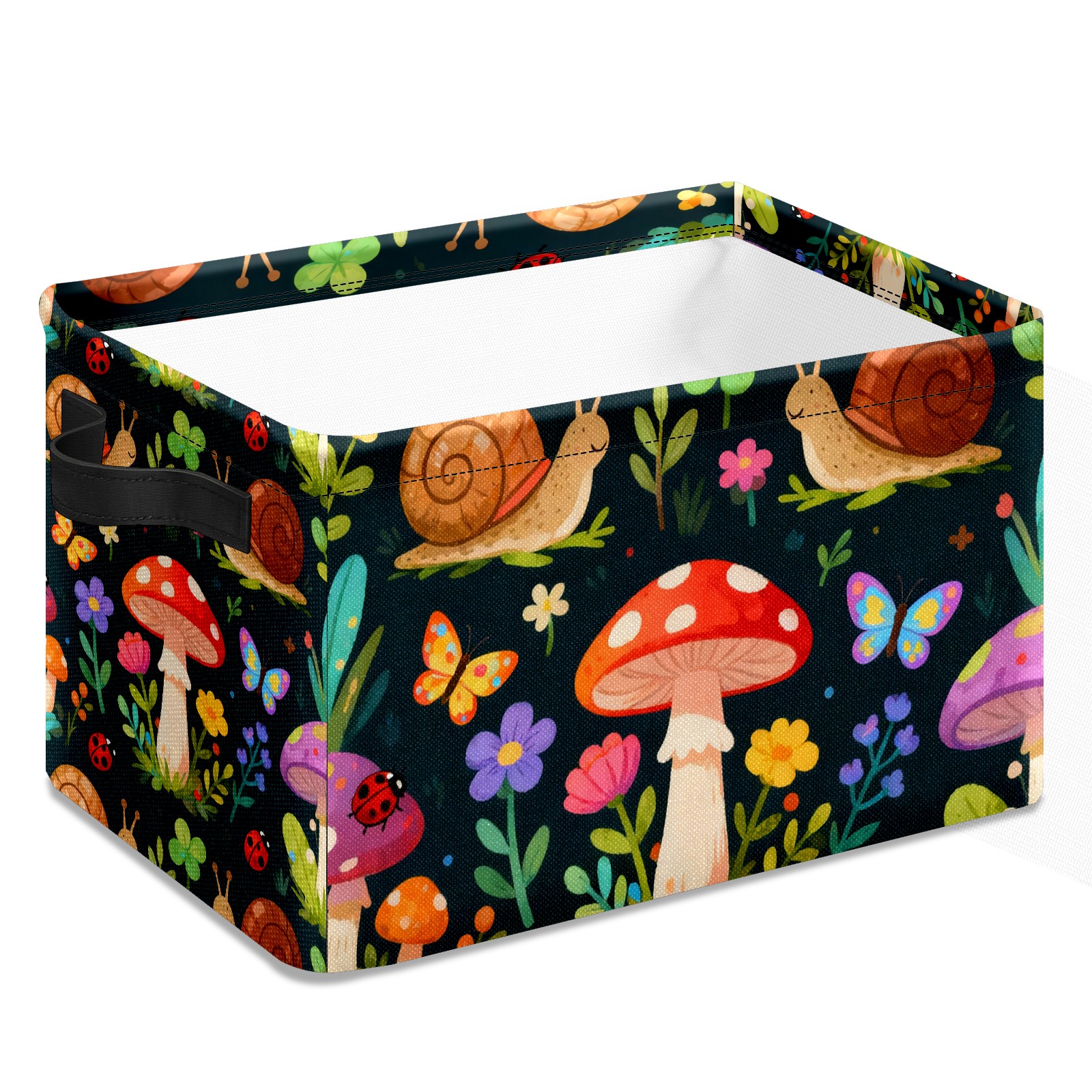 MSINMKOK Storage Basket for Organizing Forest Mushrooms Snails Large Basket Storage Shelves, Fabric Basket Organizer Bin with Handles for Closet Toys Clothes Organizing Home Nursery Gifts