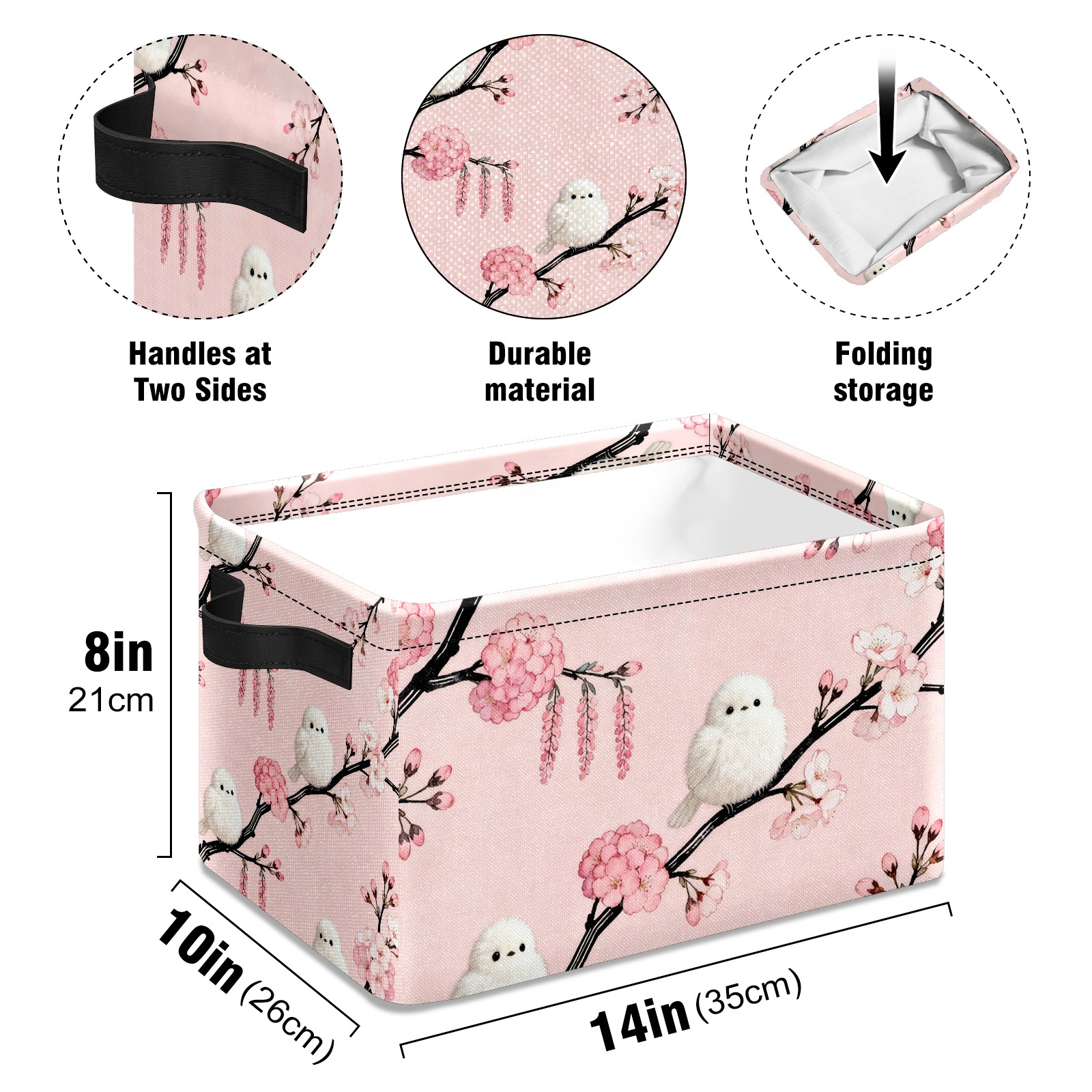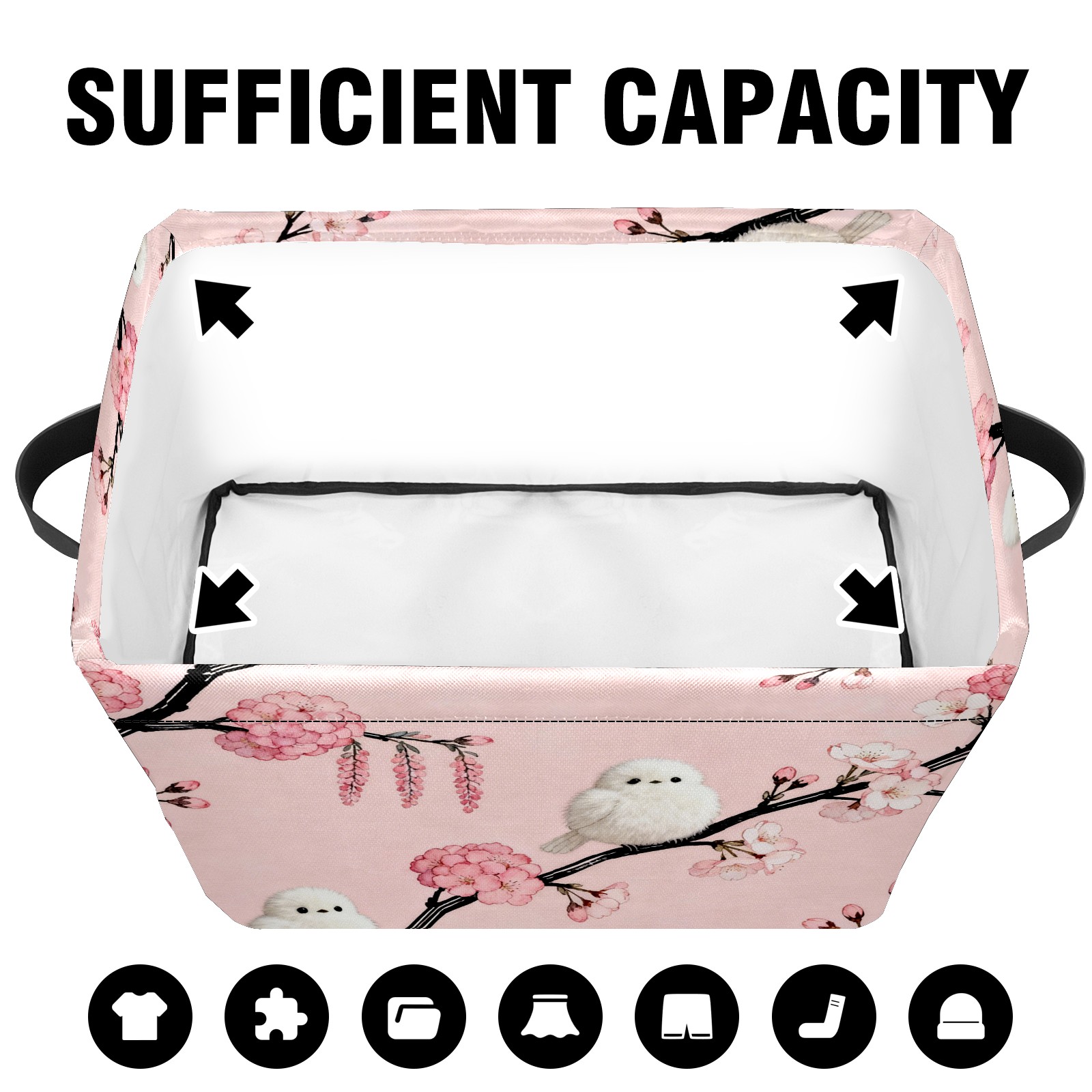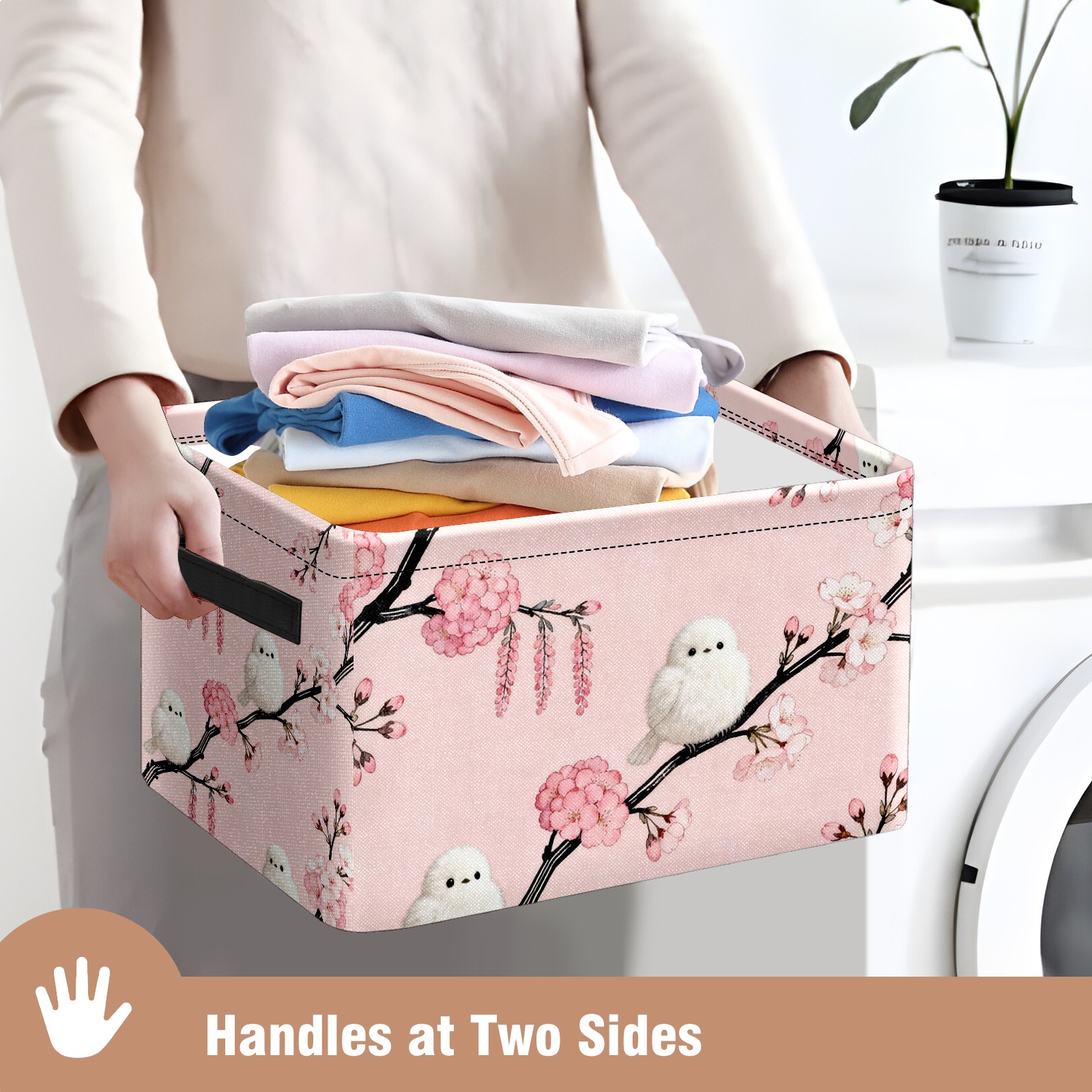 MSINMKOK Storage Basket for Organizing Flowers Birds On Pink Large Basket Storage Shelves, Fabric Basket Organizer Bin with Handles for Closet Toys Clothes Organizing Home Nursery Gifts
