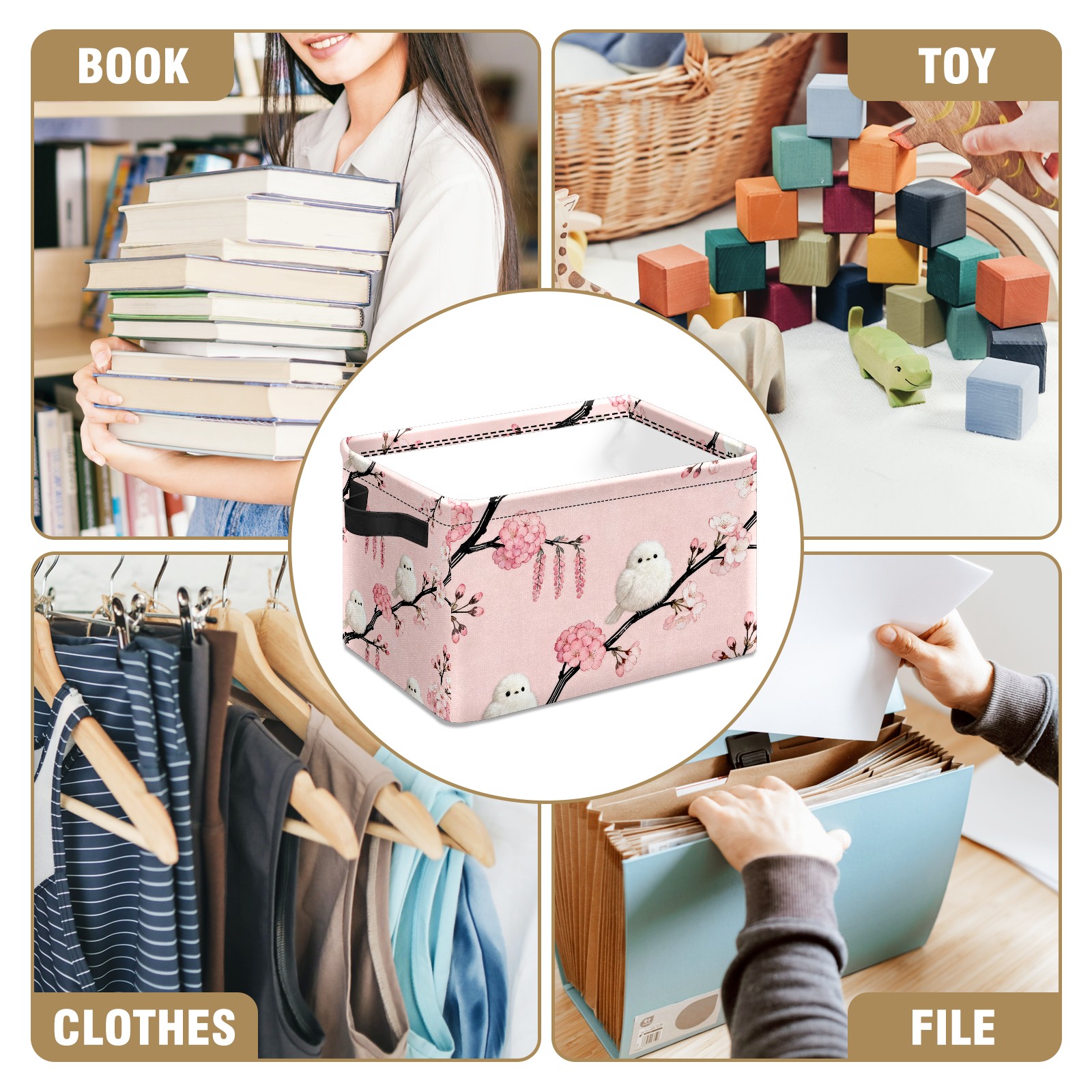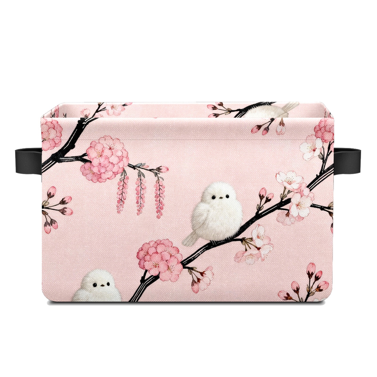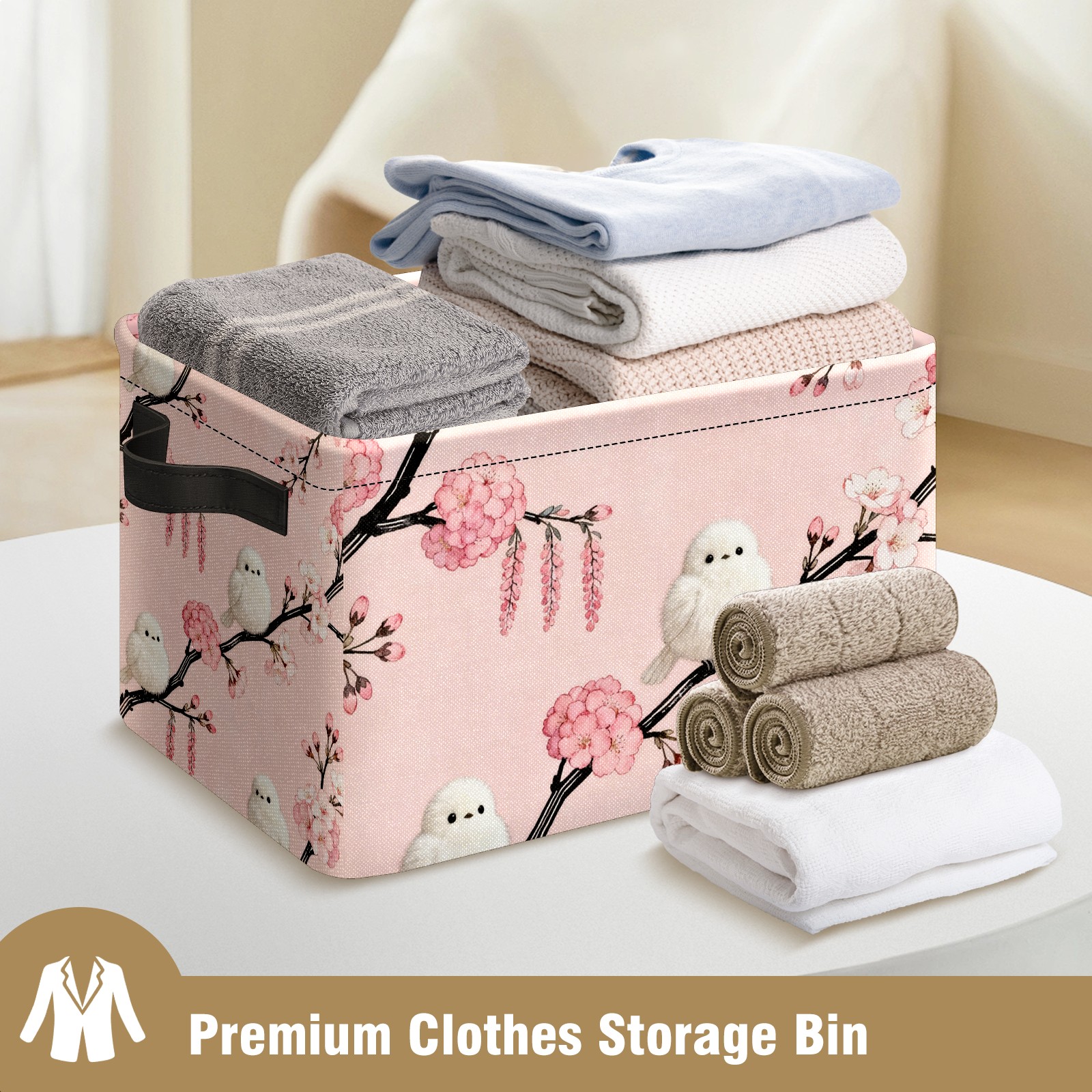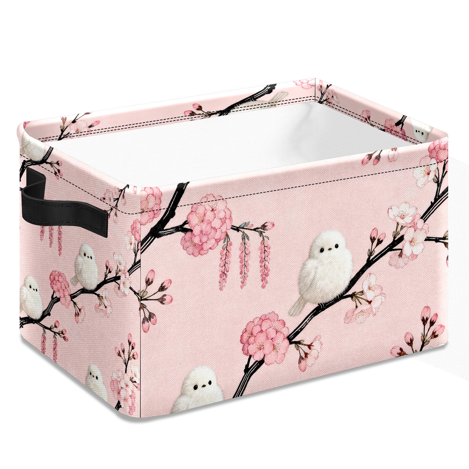 MSINMKOK Storage Basket for Organizing Flowers Birds On Pink Large Basket Storage Shelves, Fabric Basket Organizer Bin with Handles for Closet Toys Clothes Organizing Home Nursery Gifts