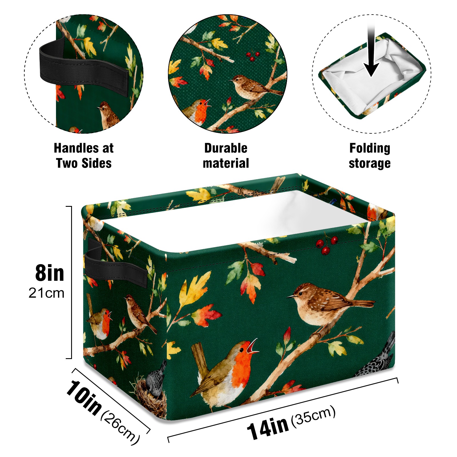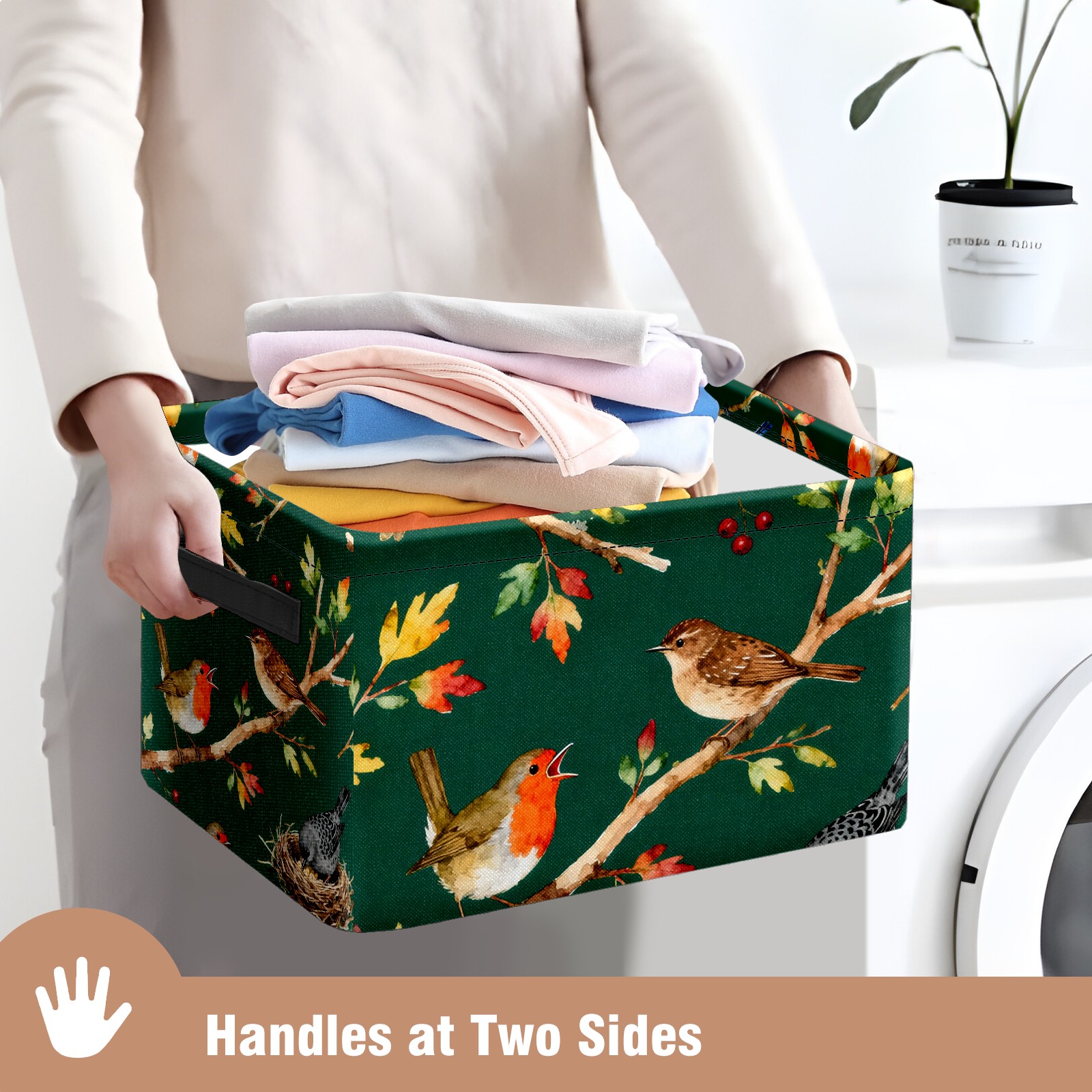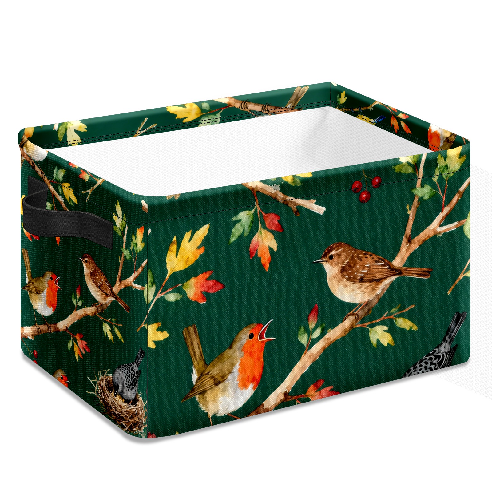 MSINMKOK Storage Basket for Organizing Birds On Green Large Basket Storage Shelves, Fabric Basket Organizer Bin with Handles for Closet Toys Clothes Organizing Home Nursery Gifts