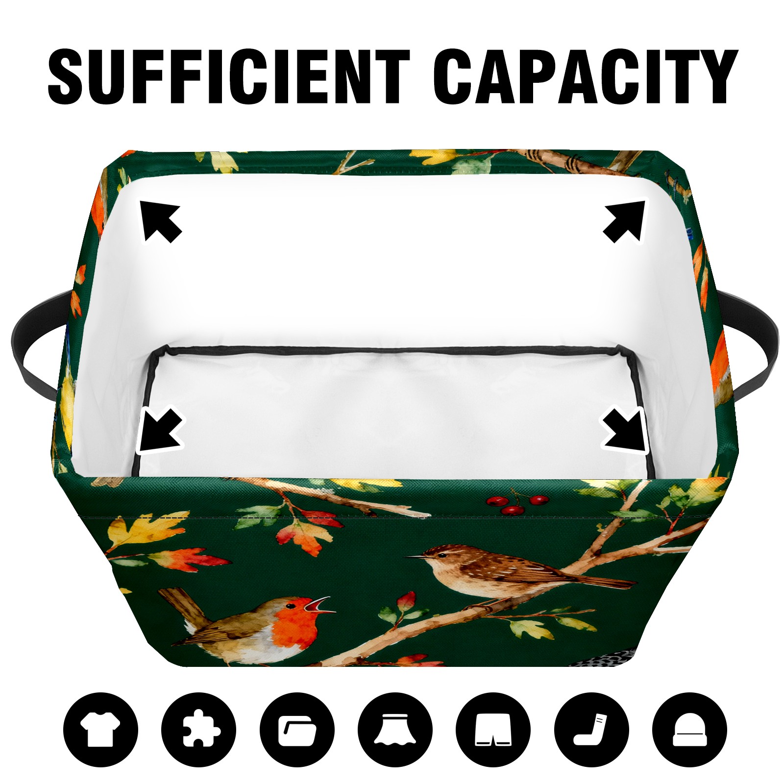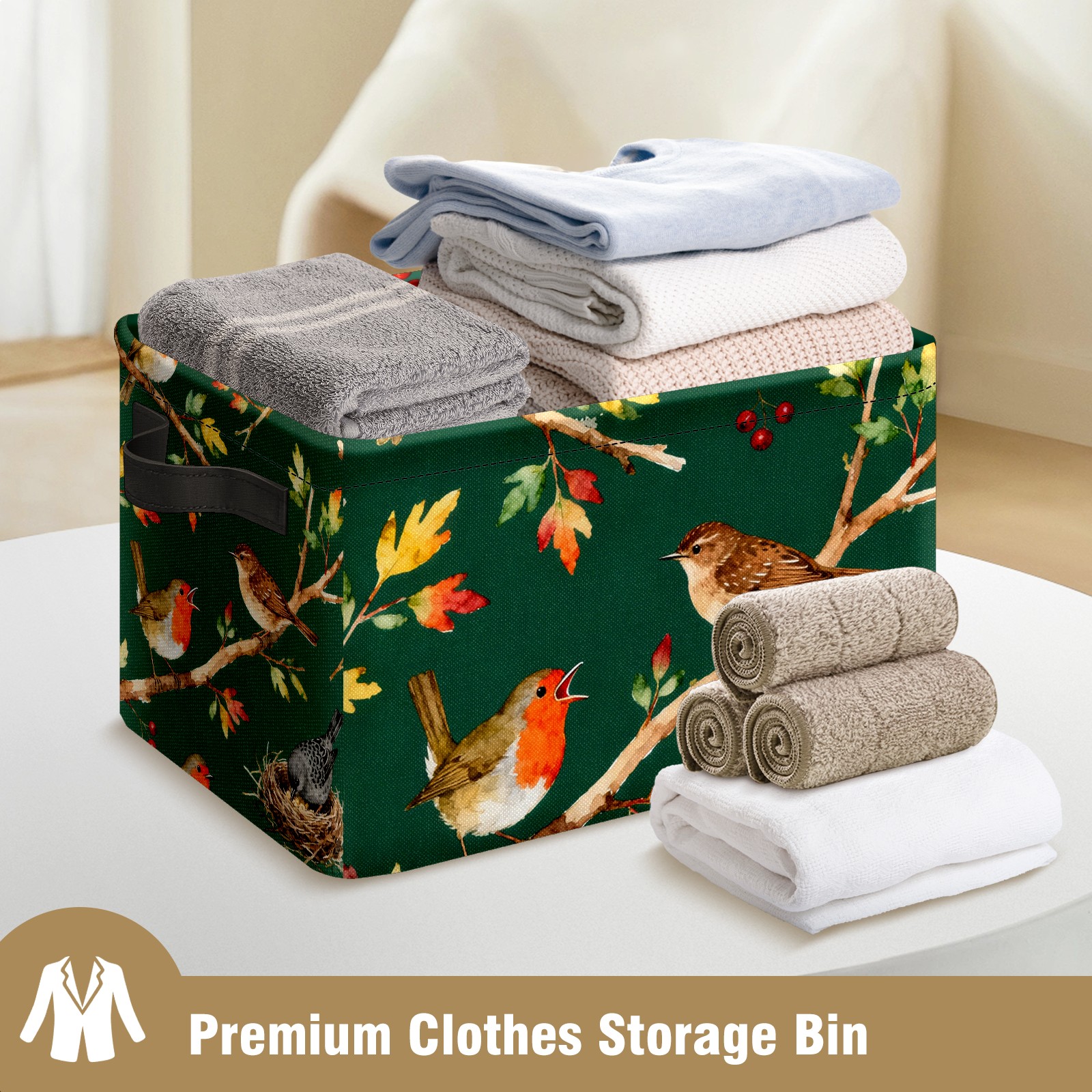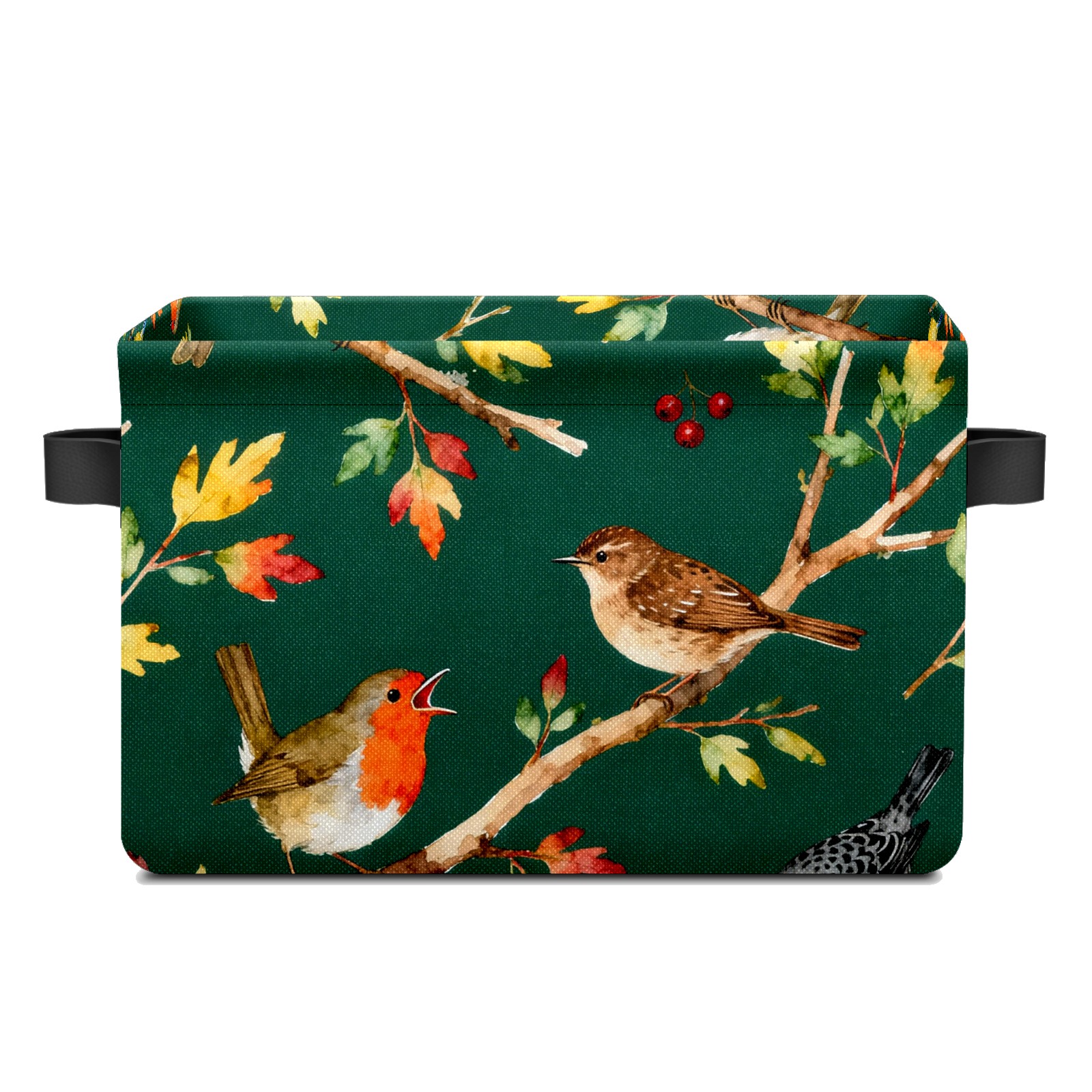 MSINMKOK Storage Basket for Organizing Birds On Green Large Basket Storage Shelves, Fabric Basket Organizer Bin with Handles for Closet Toys Clothes Organizing Home Nursery Gifts