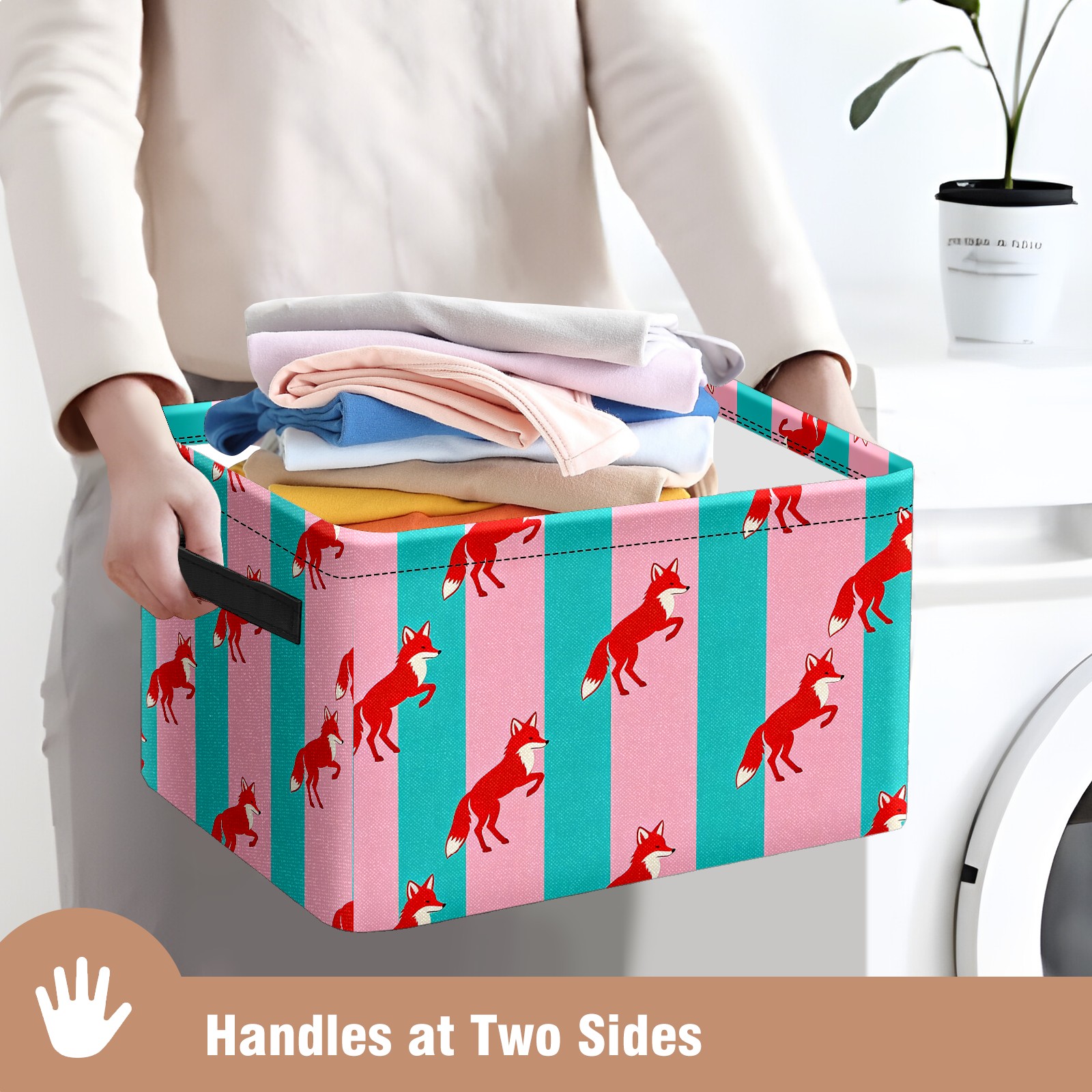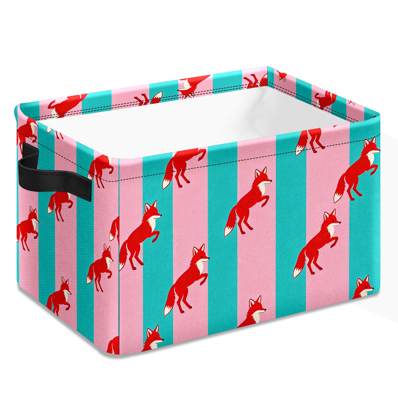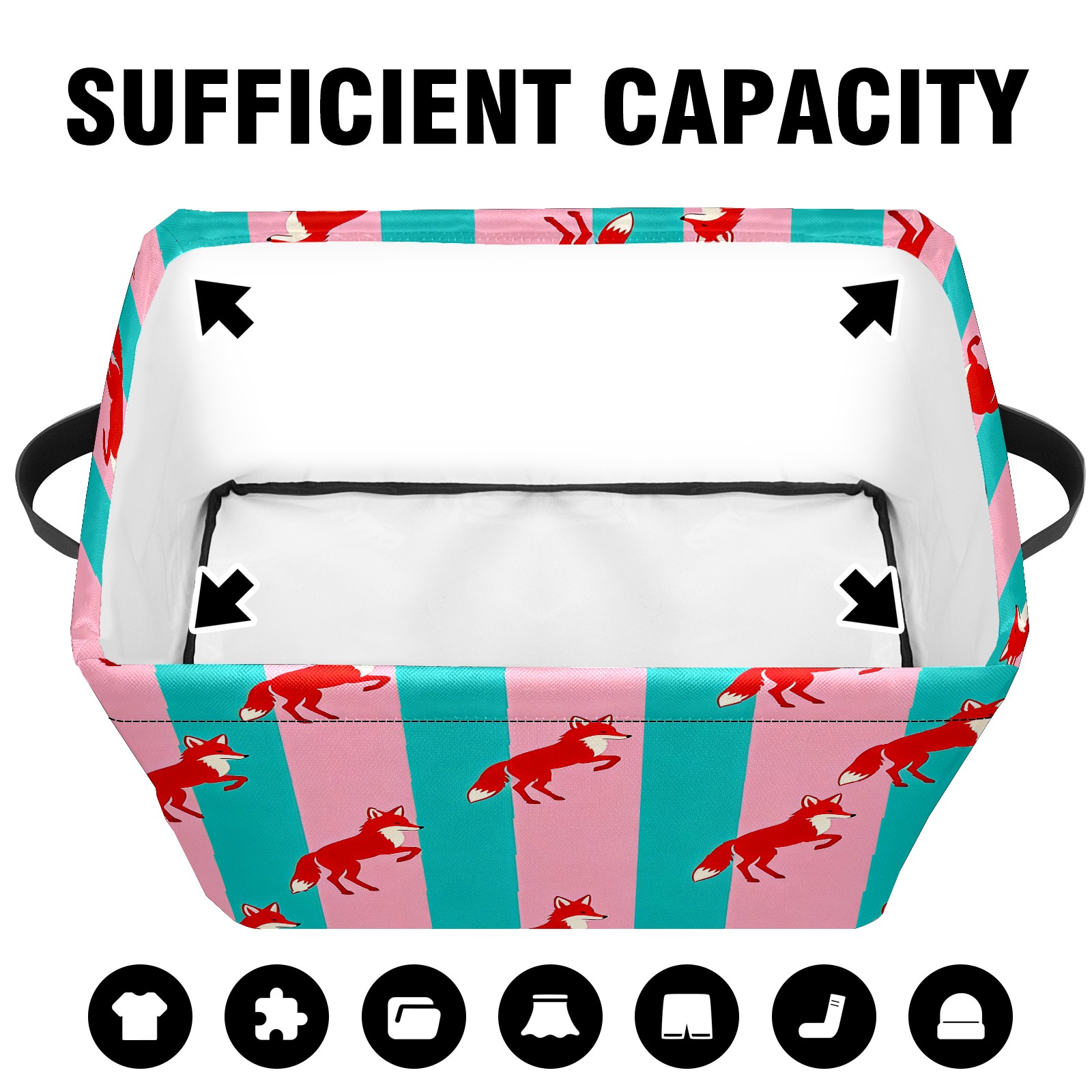 MSINMKOK Storage Basket for Organizing Red Fox Teal Pink Large Basket Storage Shelves, Fabric Basket Organizer Bin with Handles for Closet Toys Clothes Organizing Home Nursery Gifts