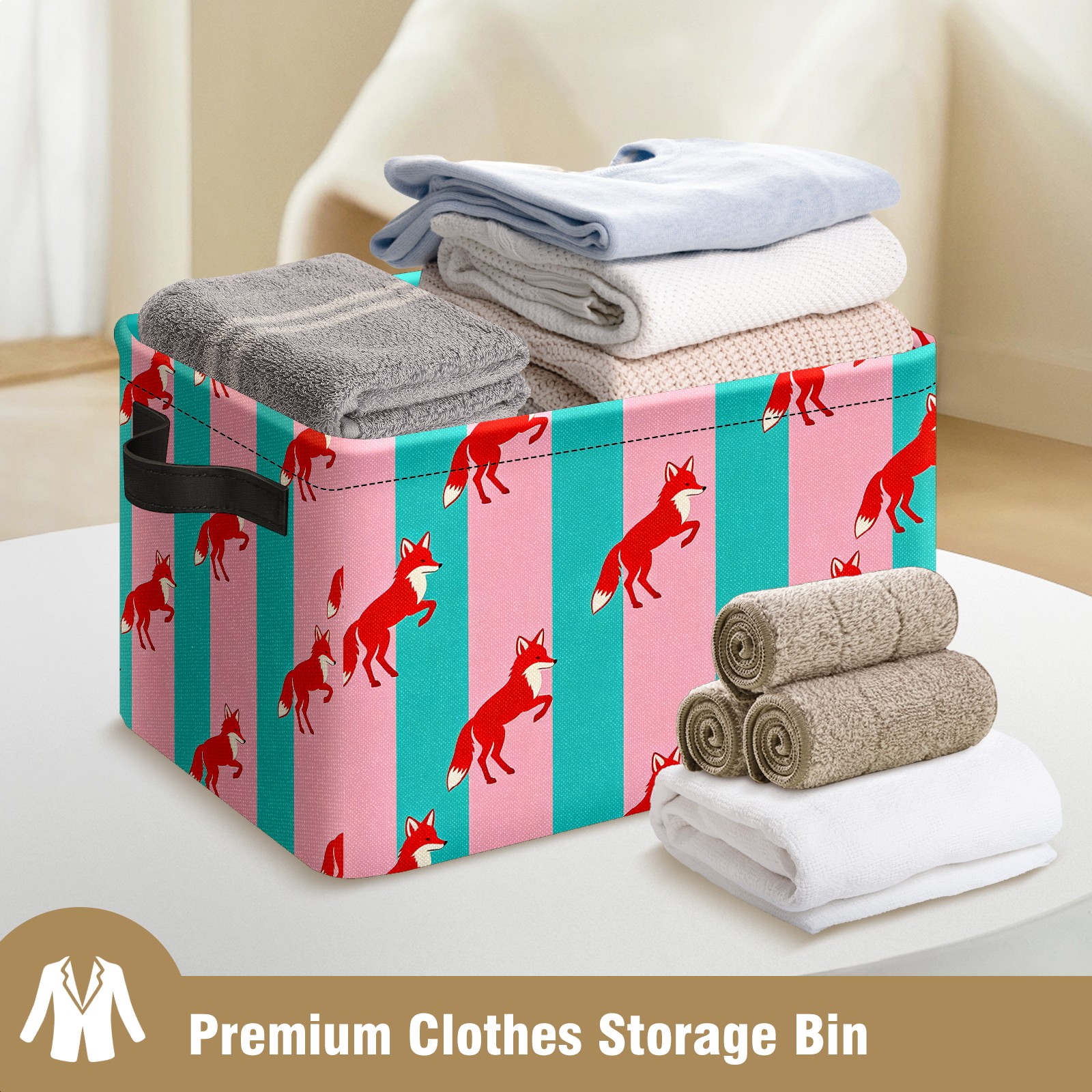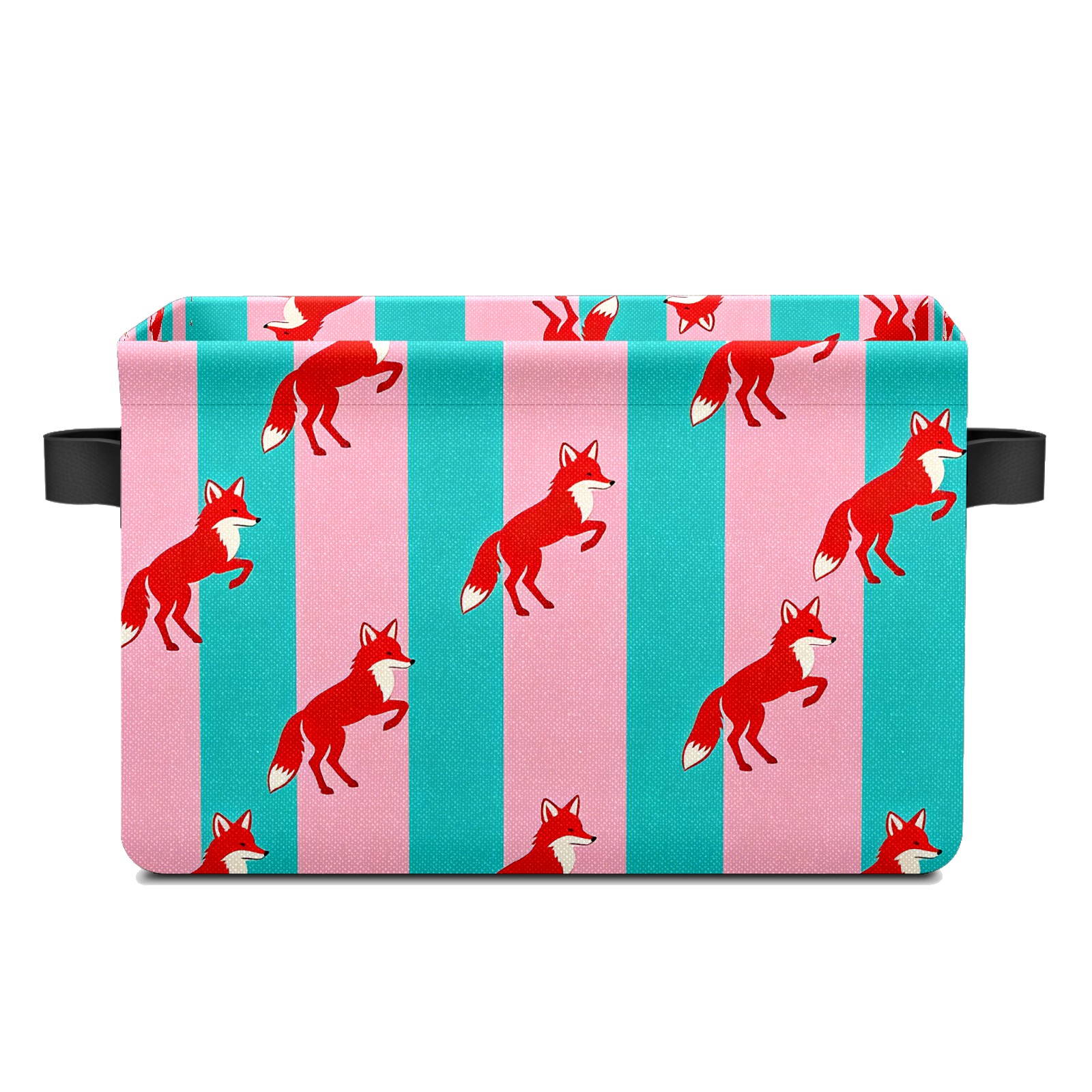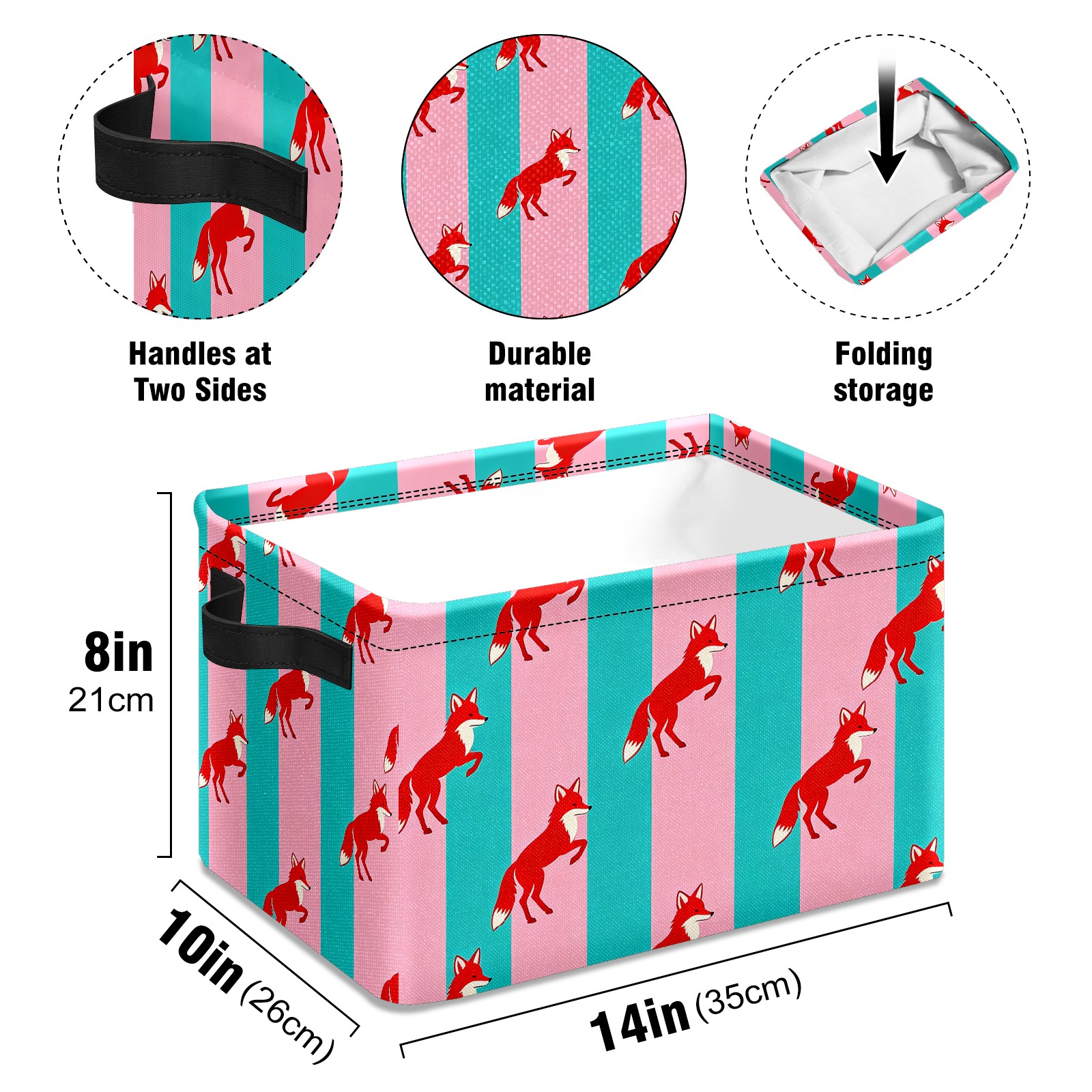 MSINMKOK Storage Basket for Organizing Red Fox Teal Pink Large Basket Storage Shelves, Fabric Basket Organizer Bin with Handles for Closet Toys Clothes Organizing Home Nursery Gifts