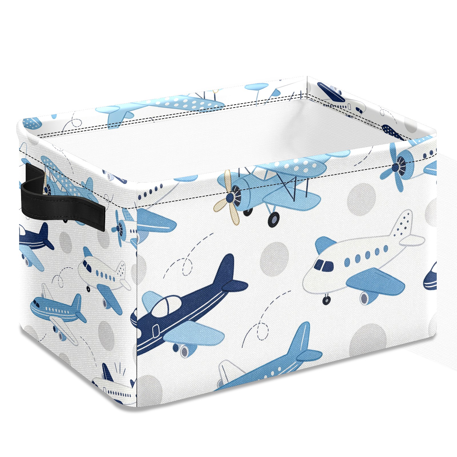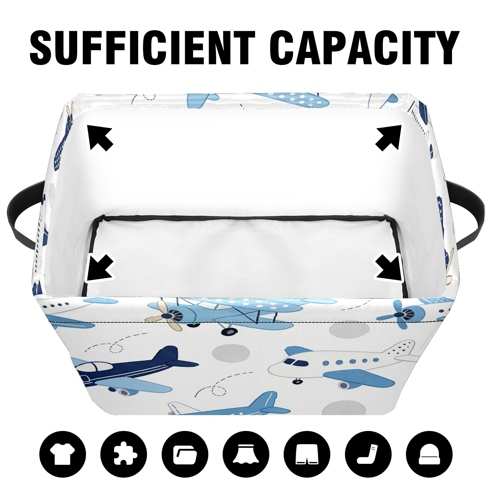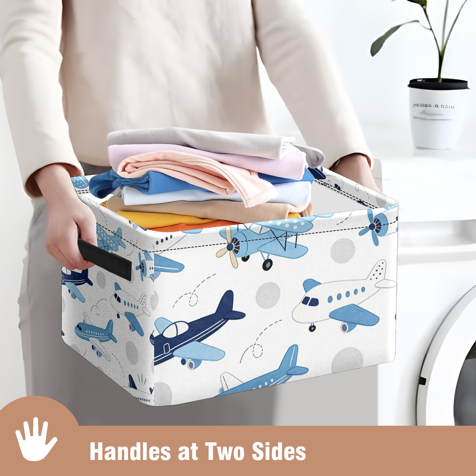 MSINMKOK Storage Basket for Organizing Light Blue Airplane Large Basket Storage Shelves, Fabric Basket Organizer Bin with Handles for Closet Toys Clothes Organizing Home Nursery Gifts