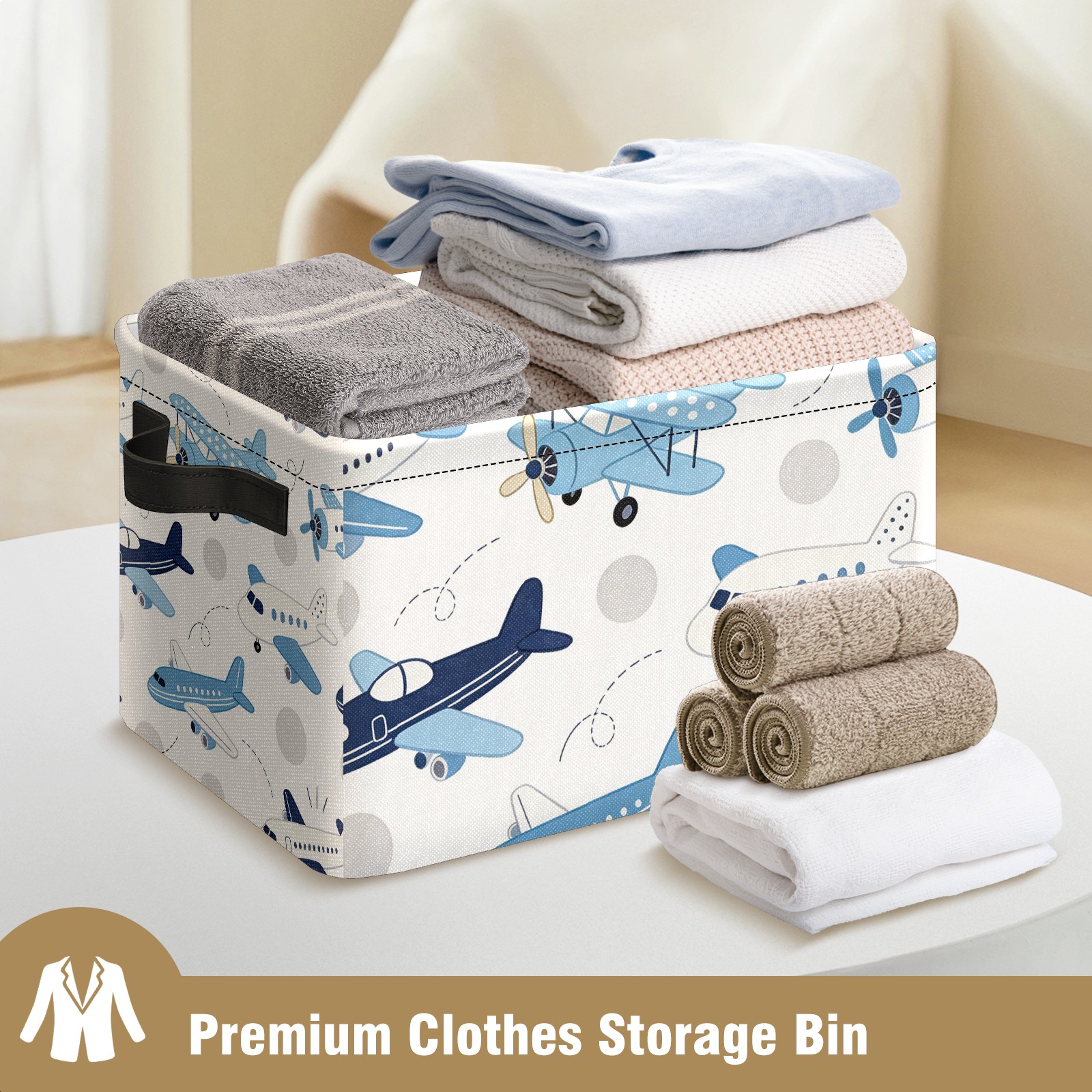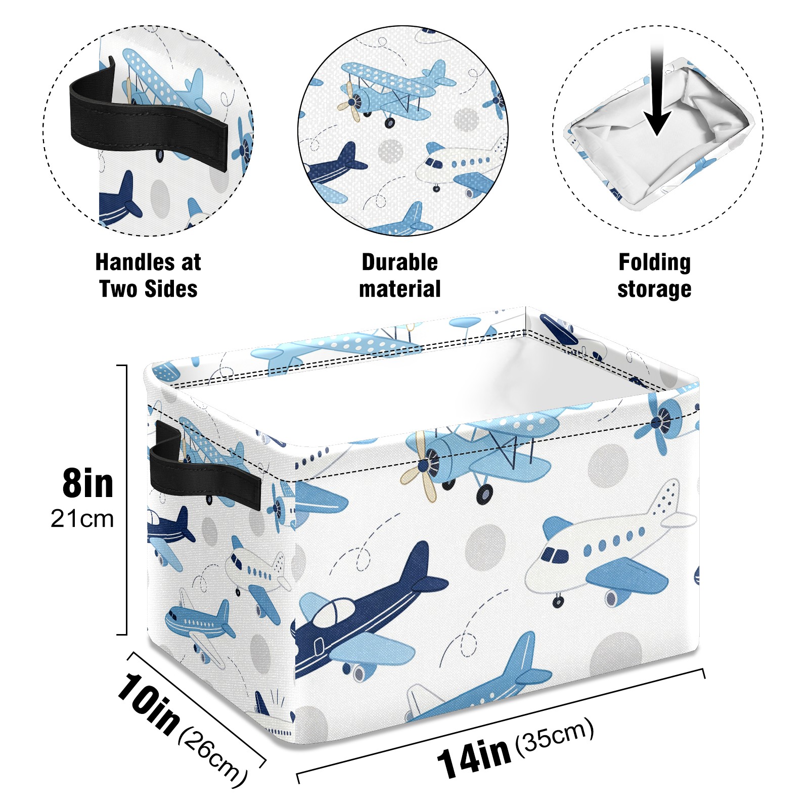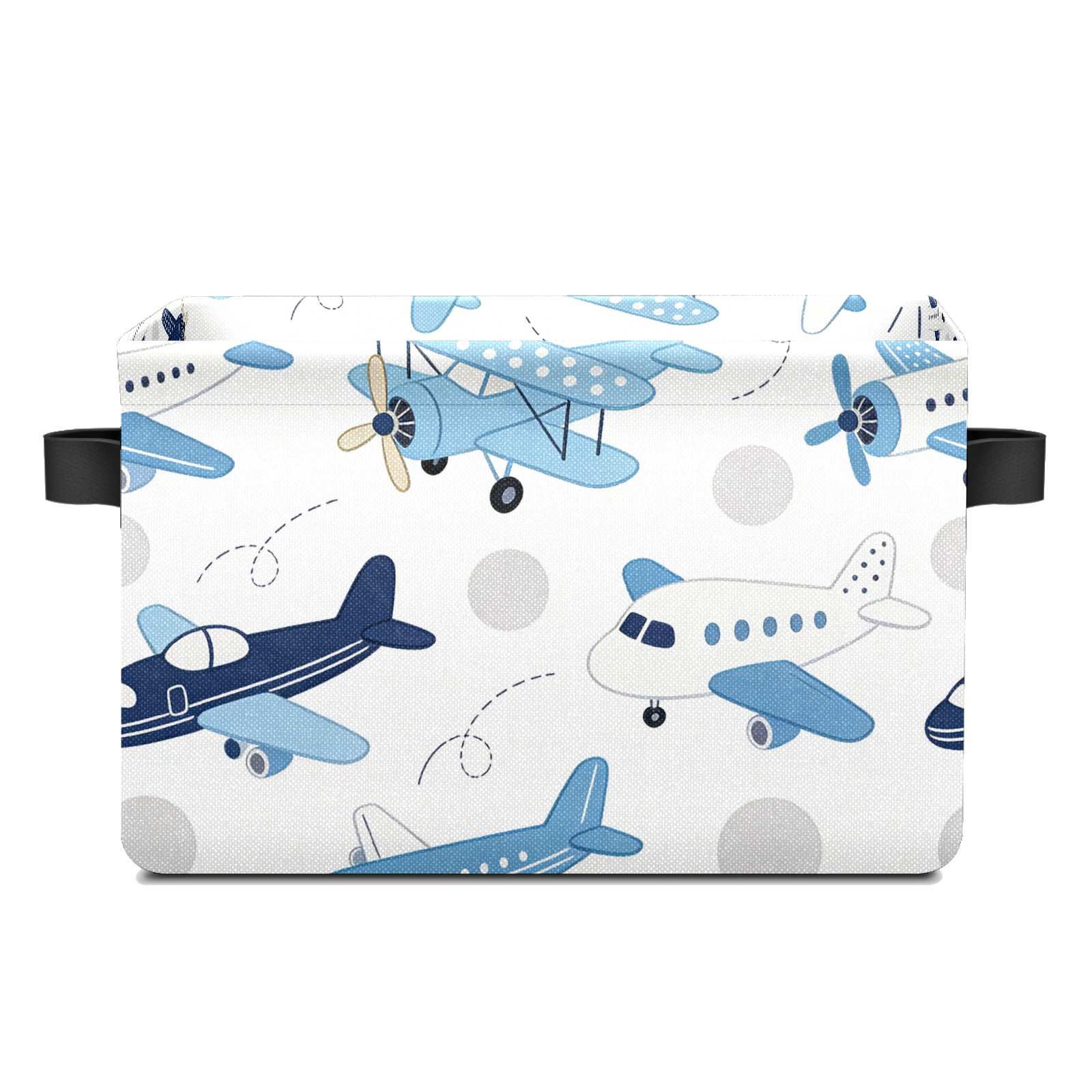 MSINMKOK Storage Basket for Organizing Light Blue Airplane Large Basket Storage Shelves, Fabric Basket Organizer Bin with Handles for Closet Toys Clothes Organizing Home Nursery Gifts