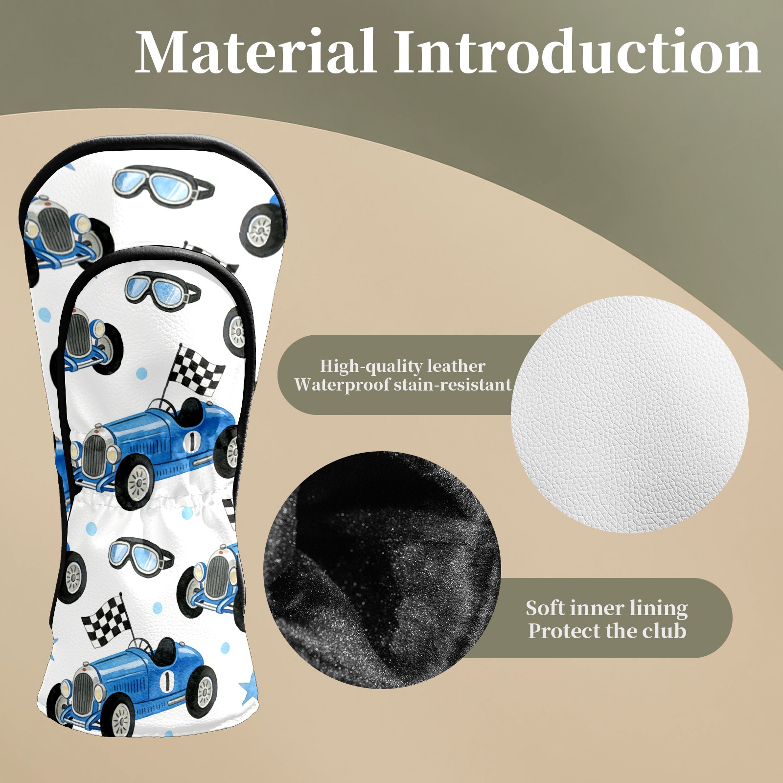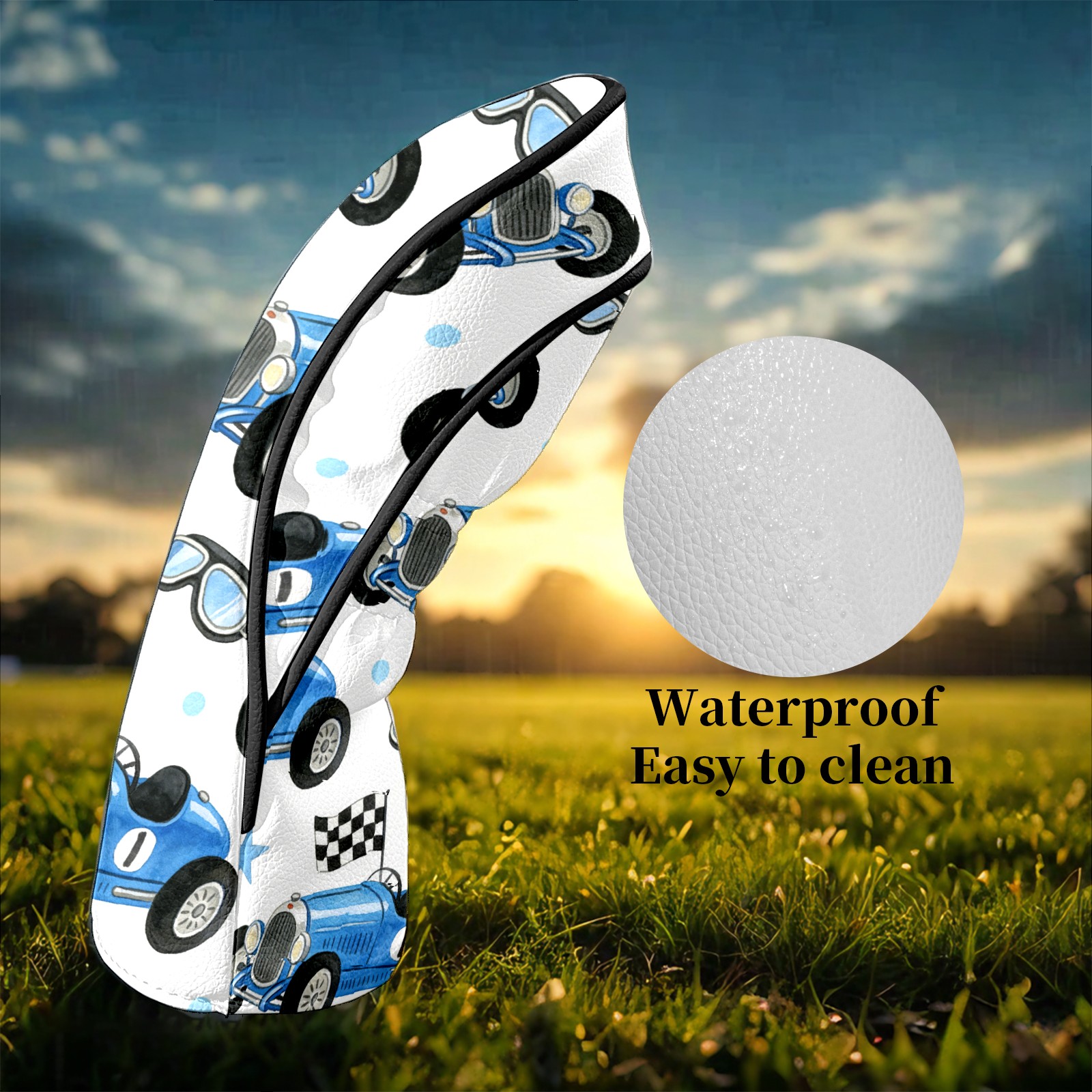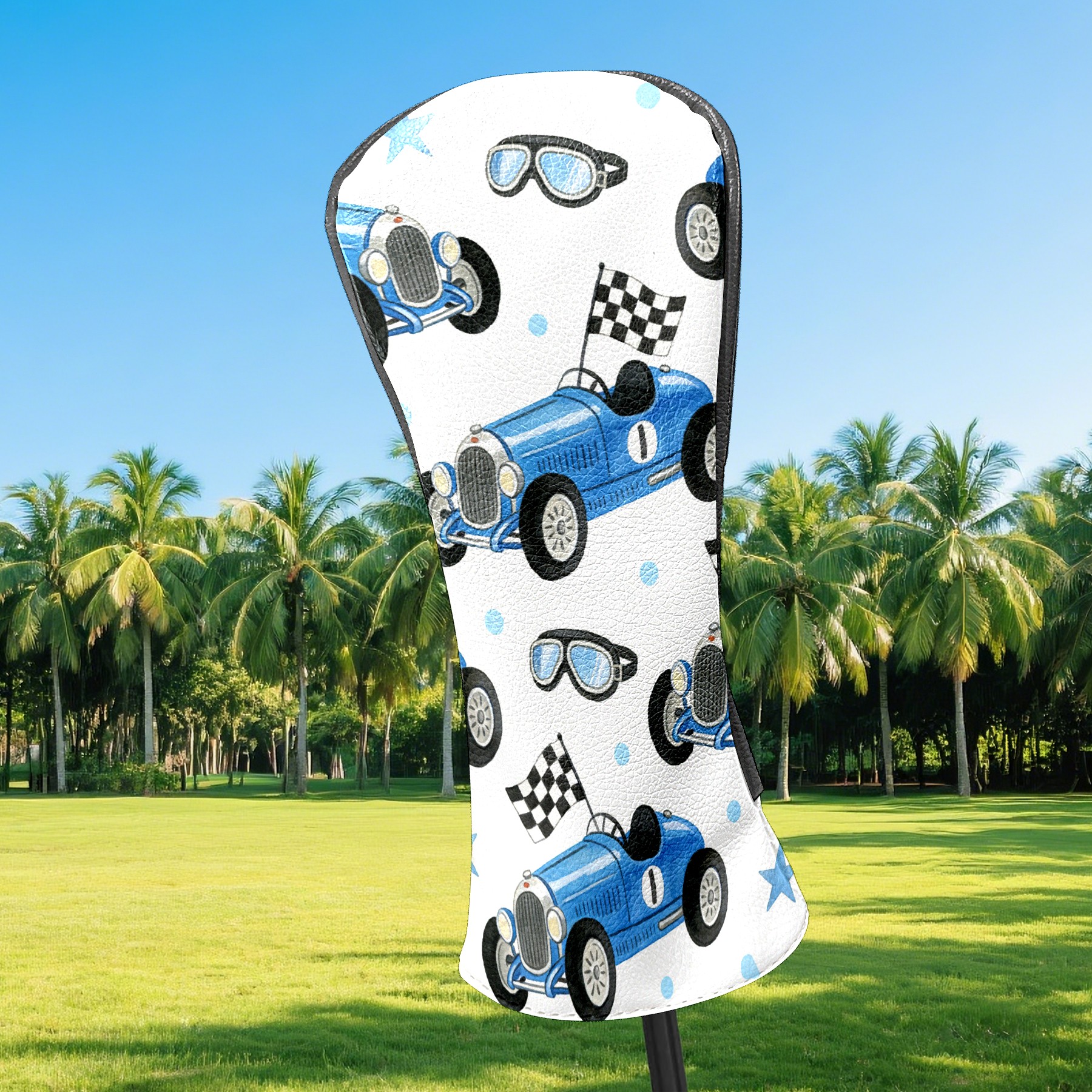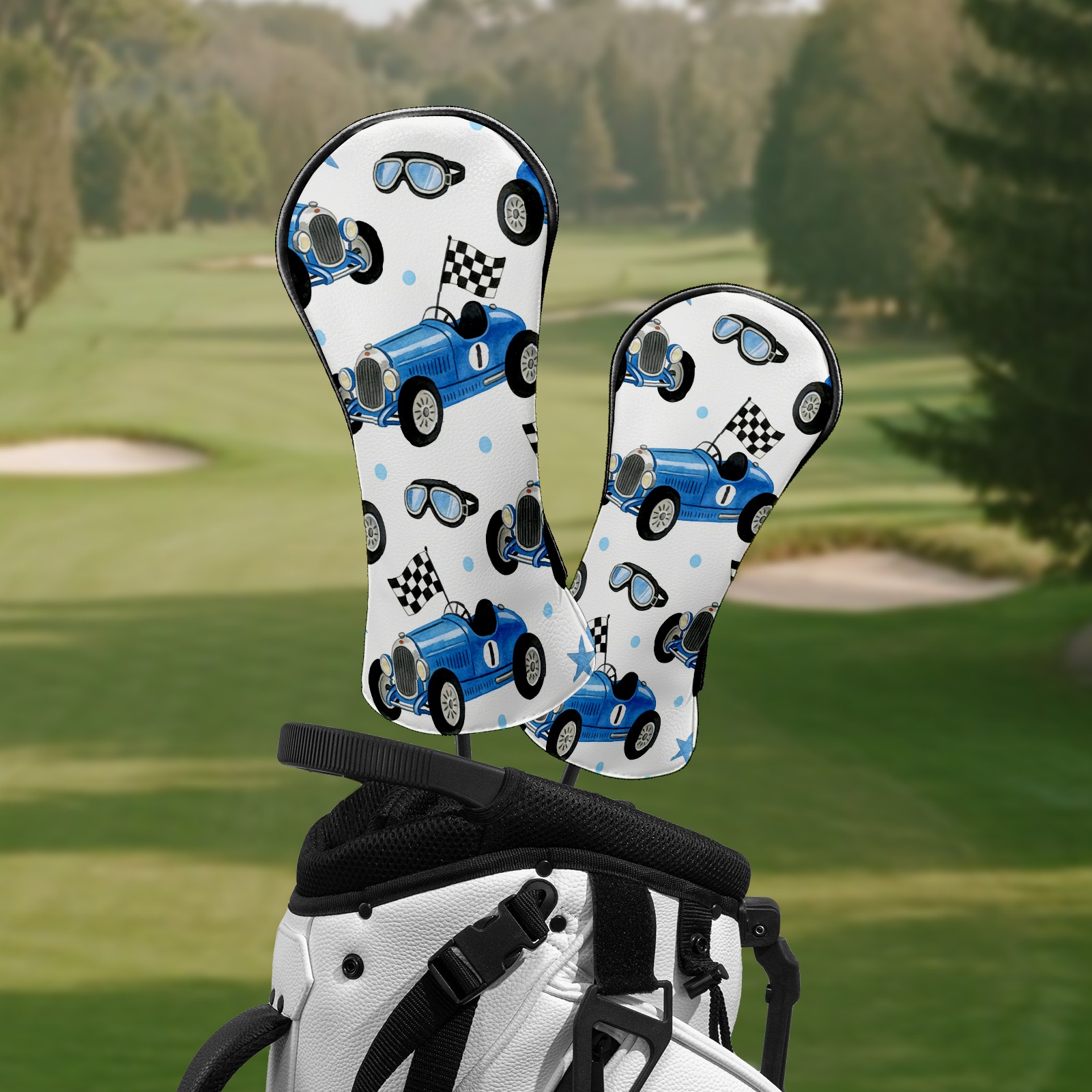 Golf Club Head Covers – Dynamic Car Blue with Soft Plush Lining, Waterproof PU Leather for Driver & Fairway Woods | Durable, No-Slip Elastic Fit | Novelty Gift for Men & Women