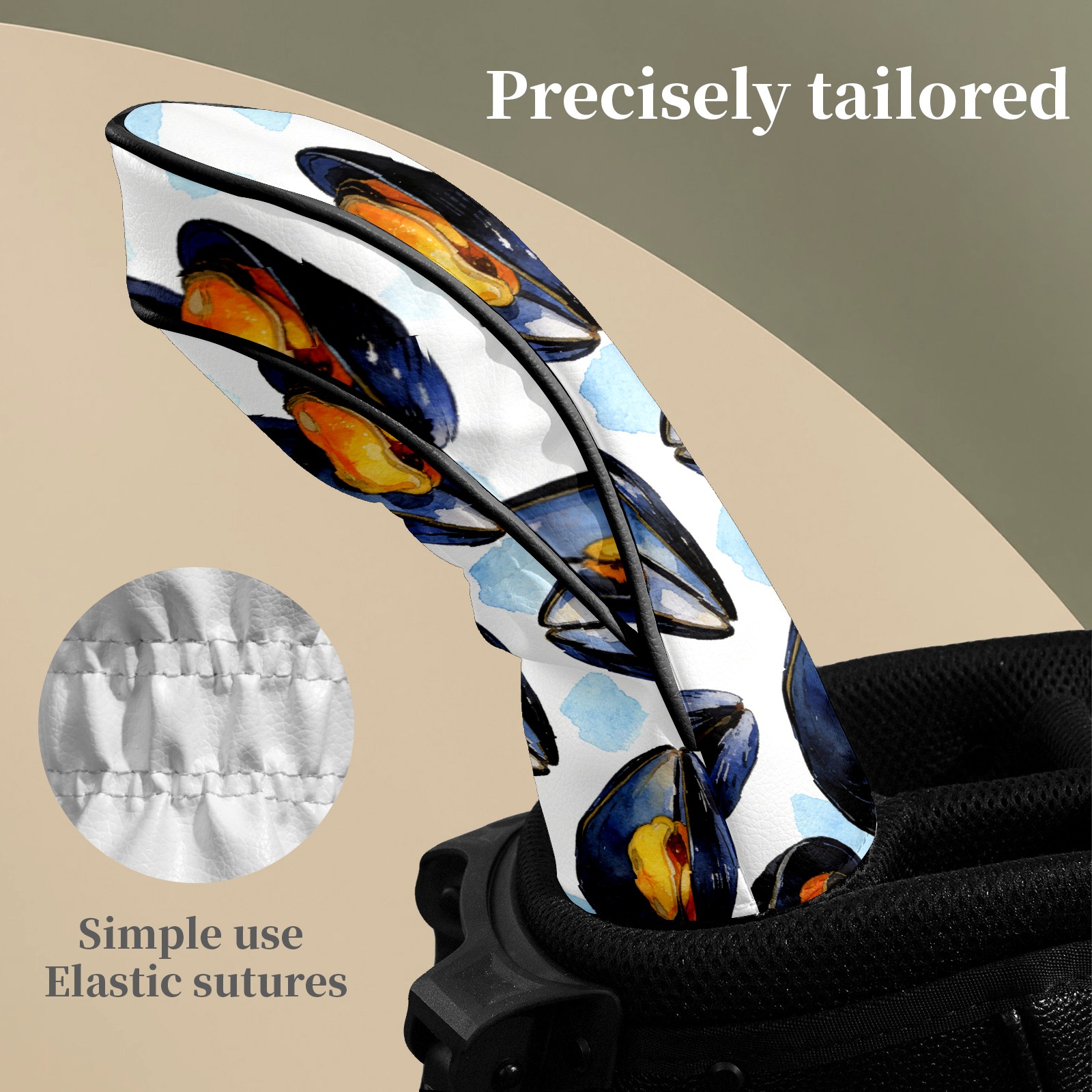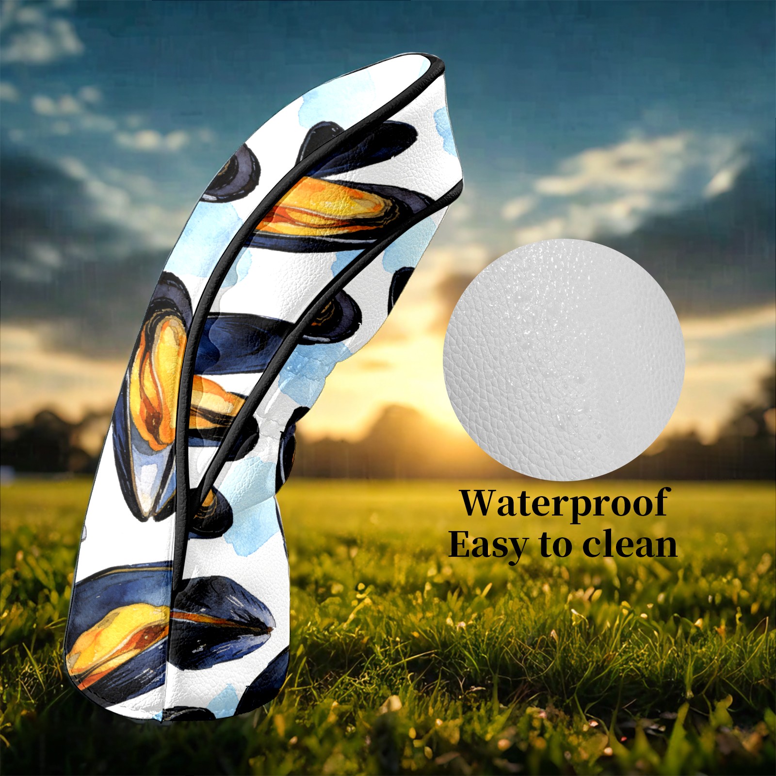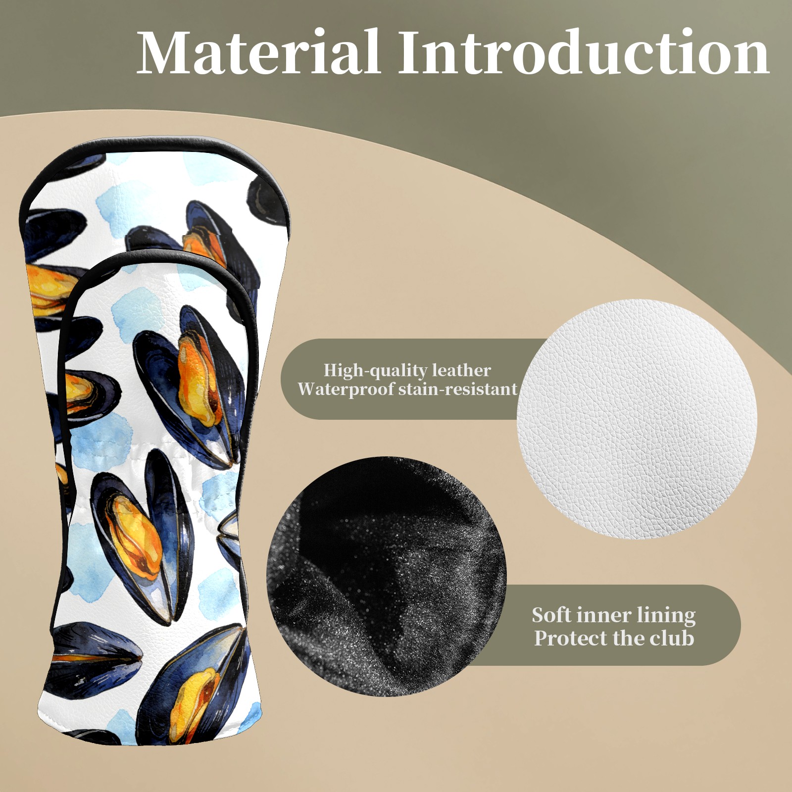 Golf Club Head Covers – Vintage Shell Black with Soft Plush Lining, Waterproof PU Leather for Driver & Fairway Woods | Durable, No-Slip Elastic Fit | Novelty Gift for Men & Women