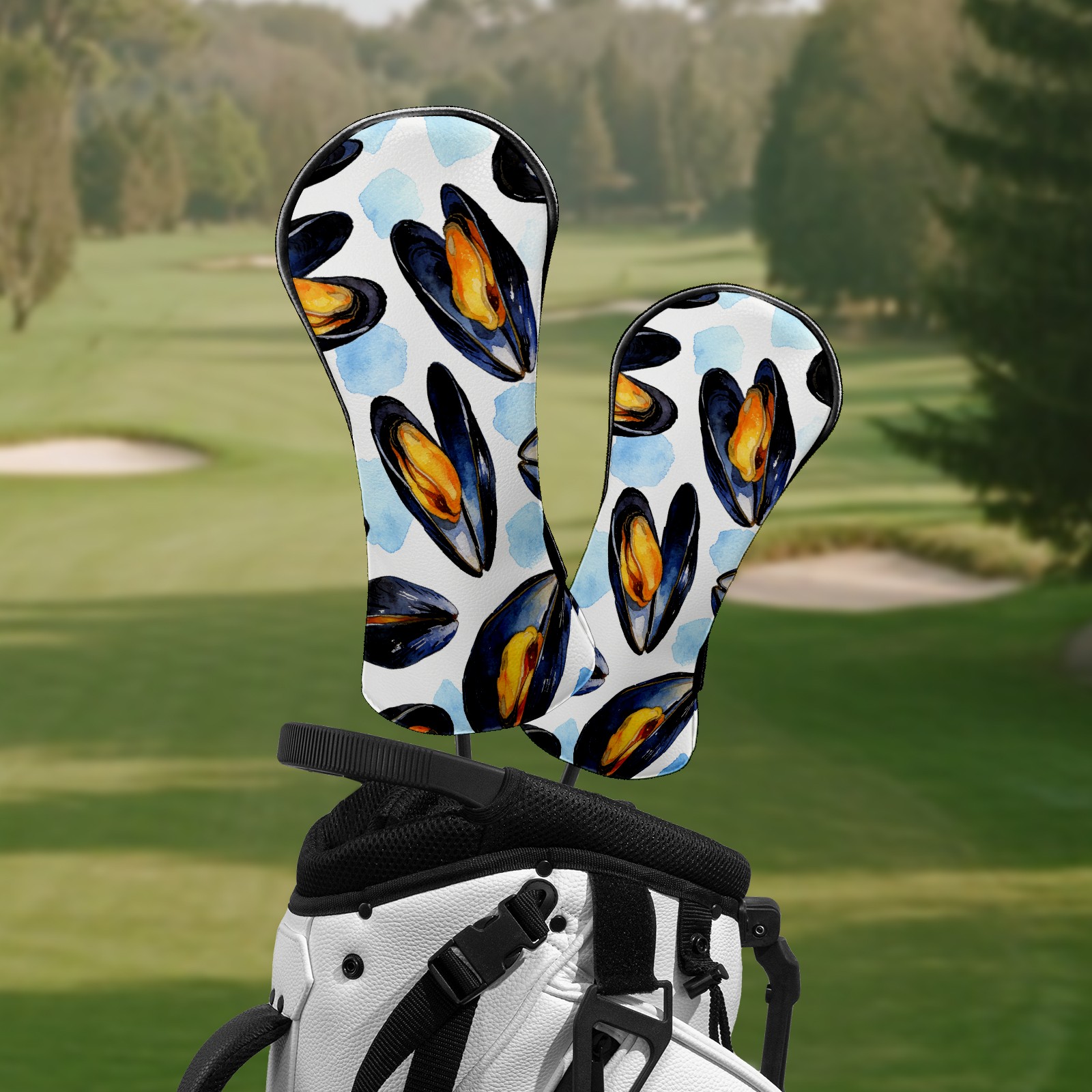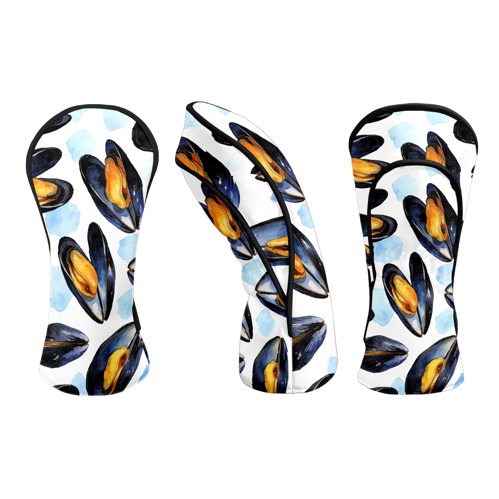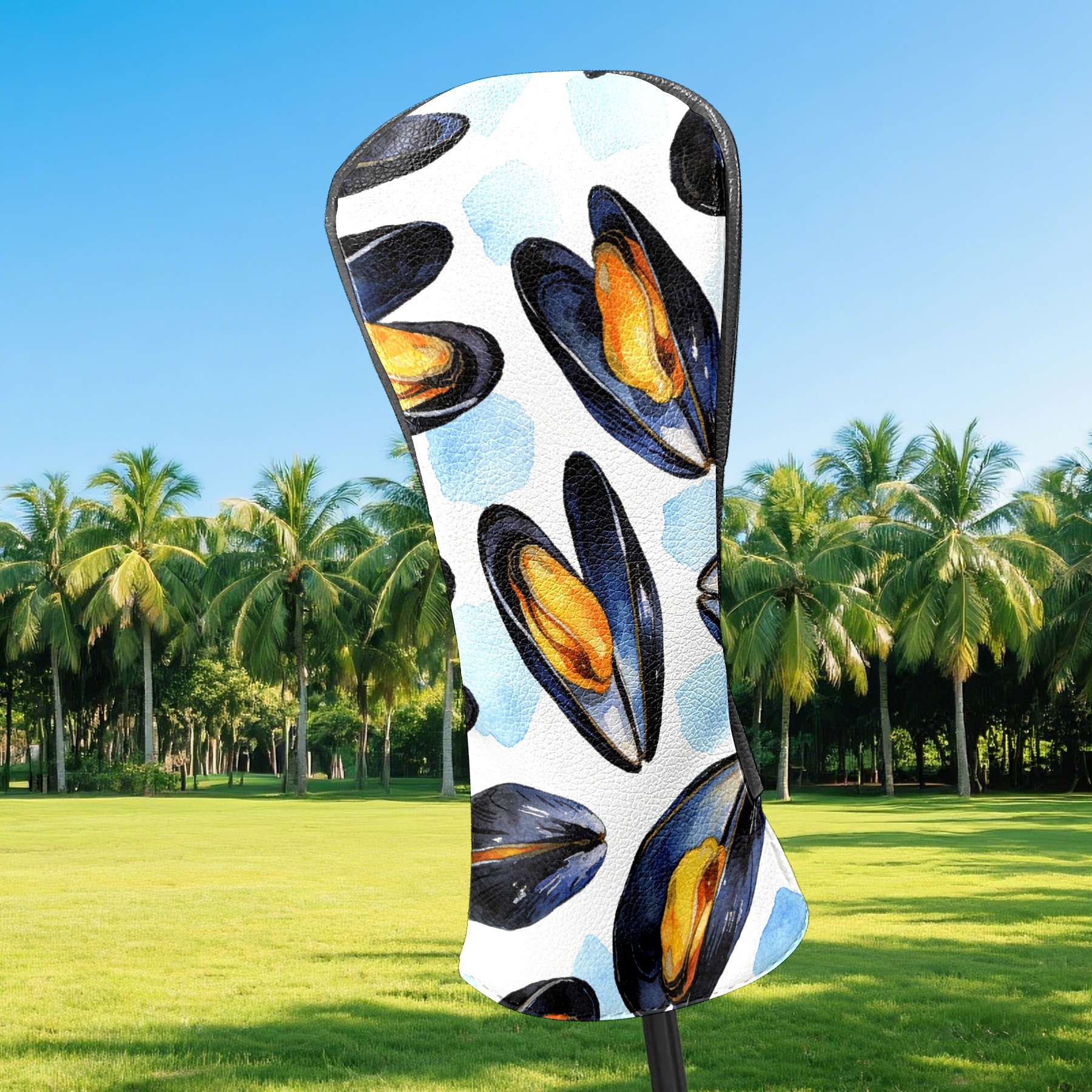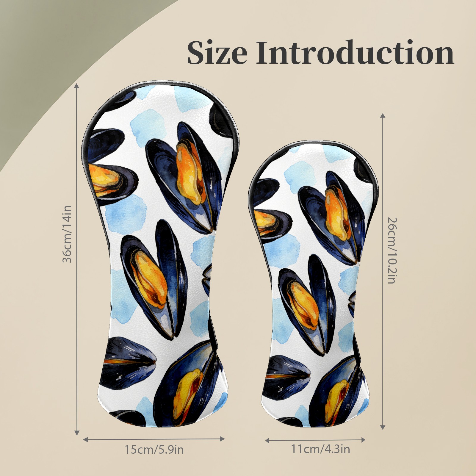 Golf Club Head Covers – Vintage Shell Black with Soft Plush Lining, Waterproof PU Leather for Driver & Fairway Woods | Durable, No-Slip Elastic Fit | Novelty Gift for Men & Women