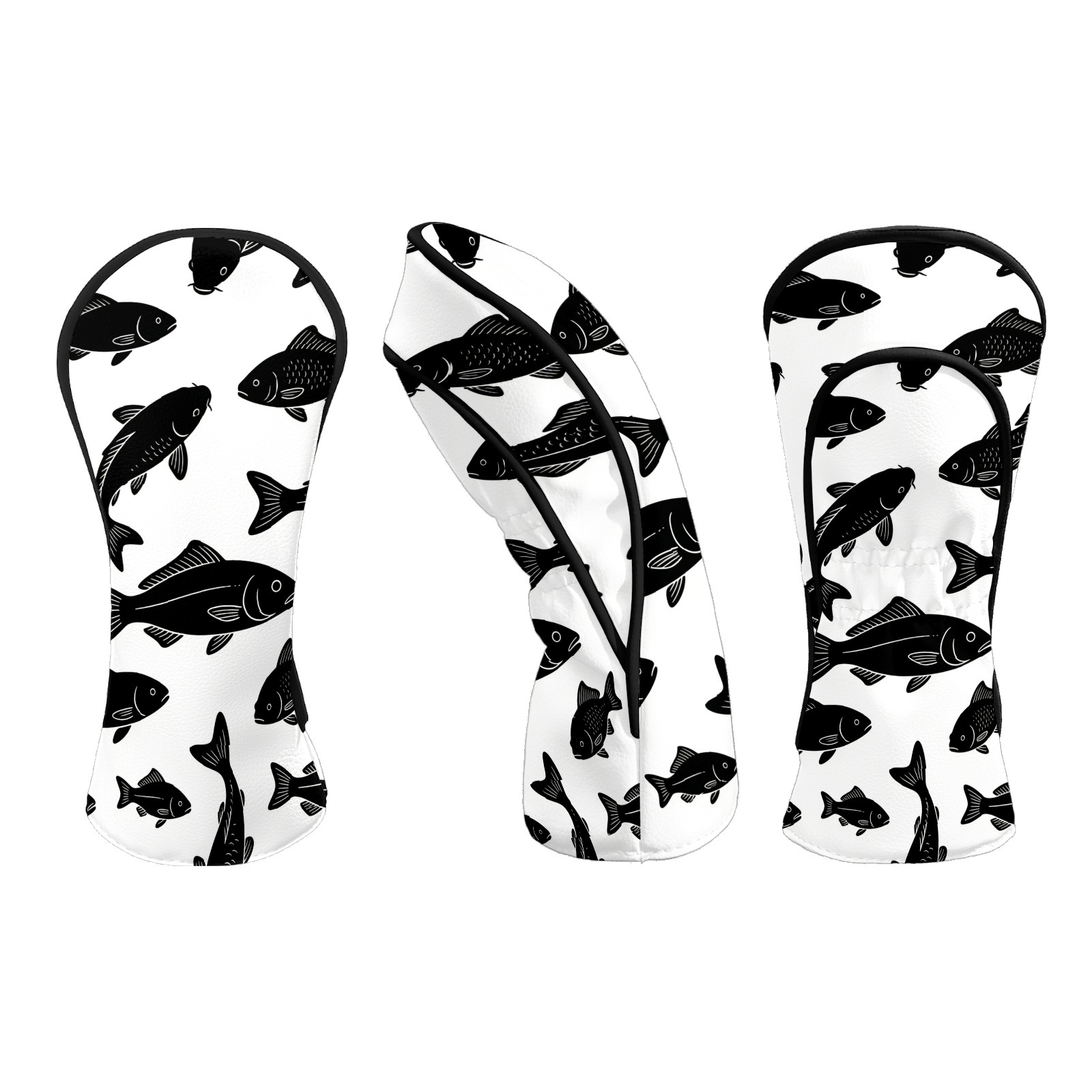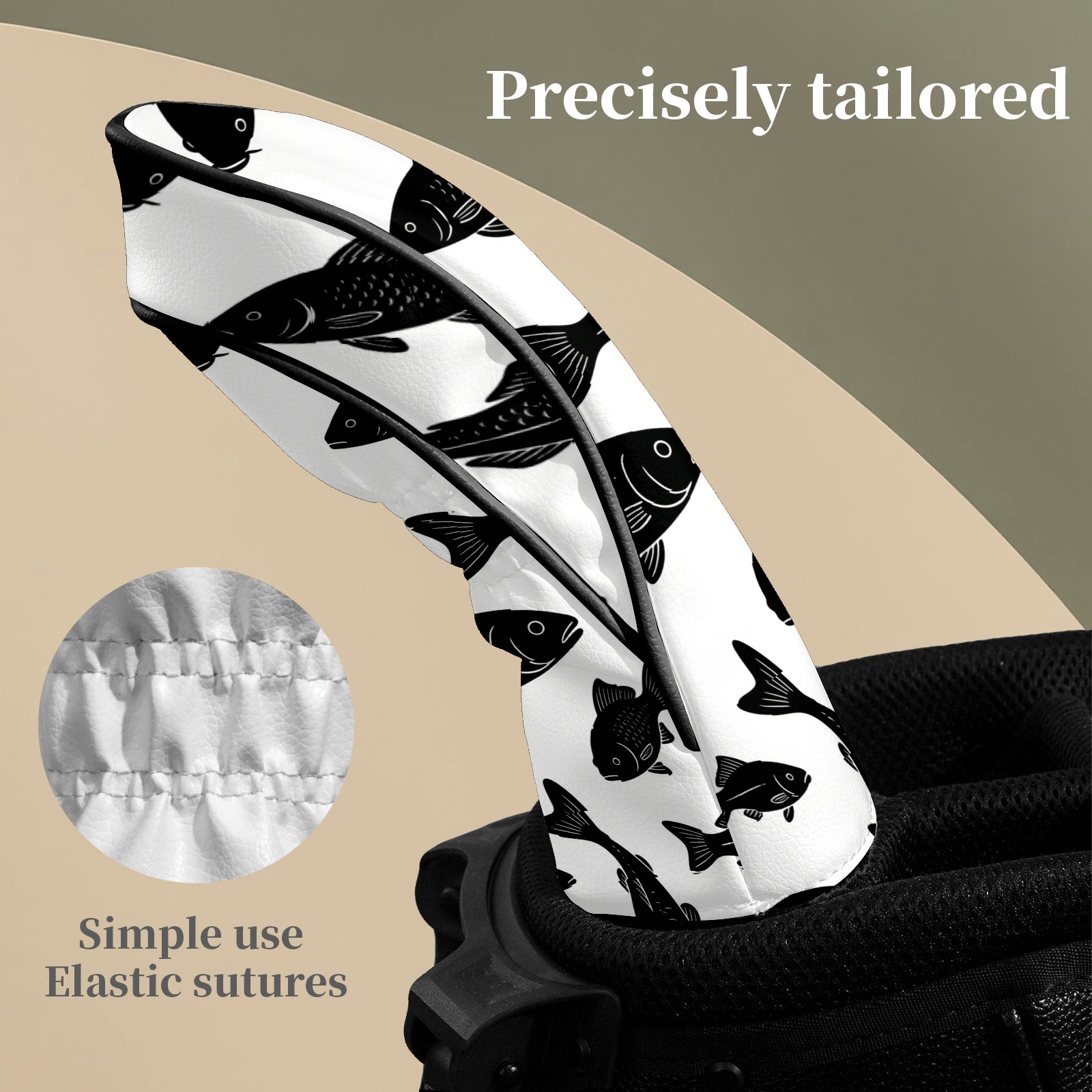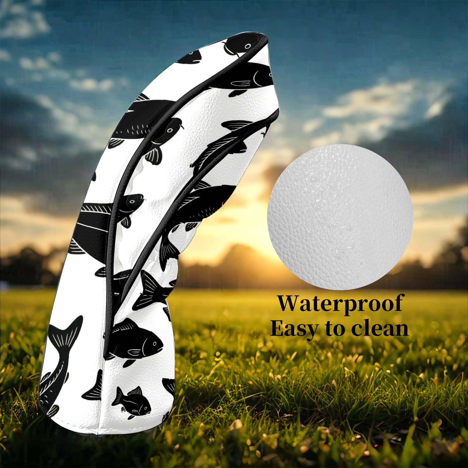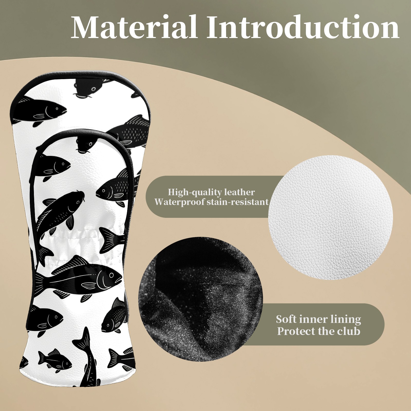 Golf Club Head Covers – Cool Fish Black with Soft Plush Lining, Waterproof PU Leather for Driver & Fairway Woods | Durable, No-Slip Elastic Fit | Novelty Gift for Men & Women
