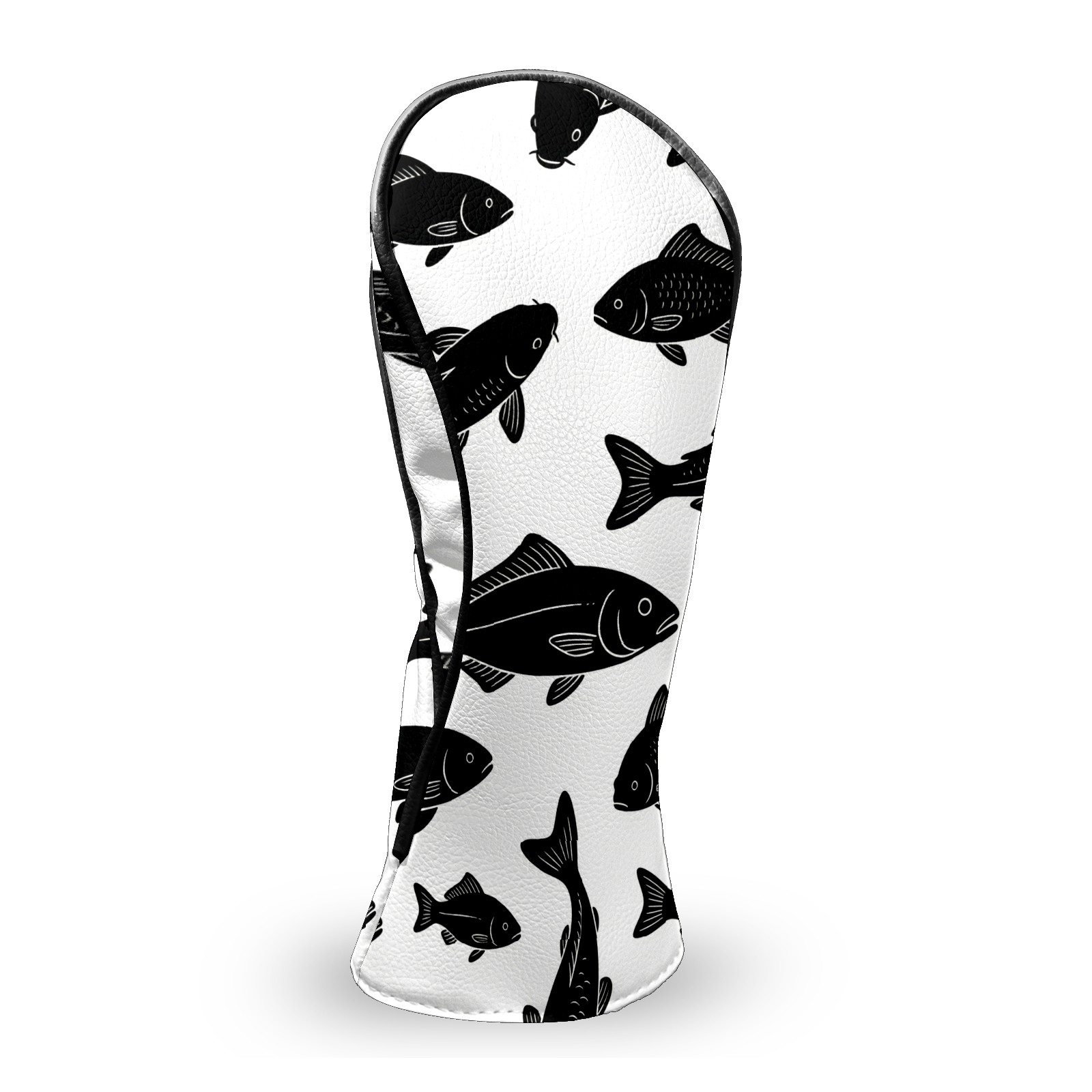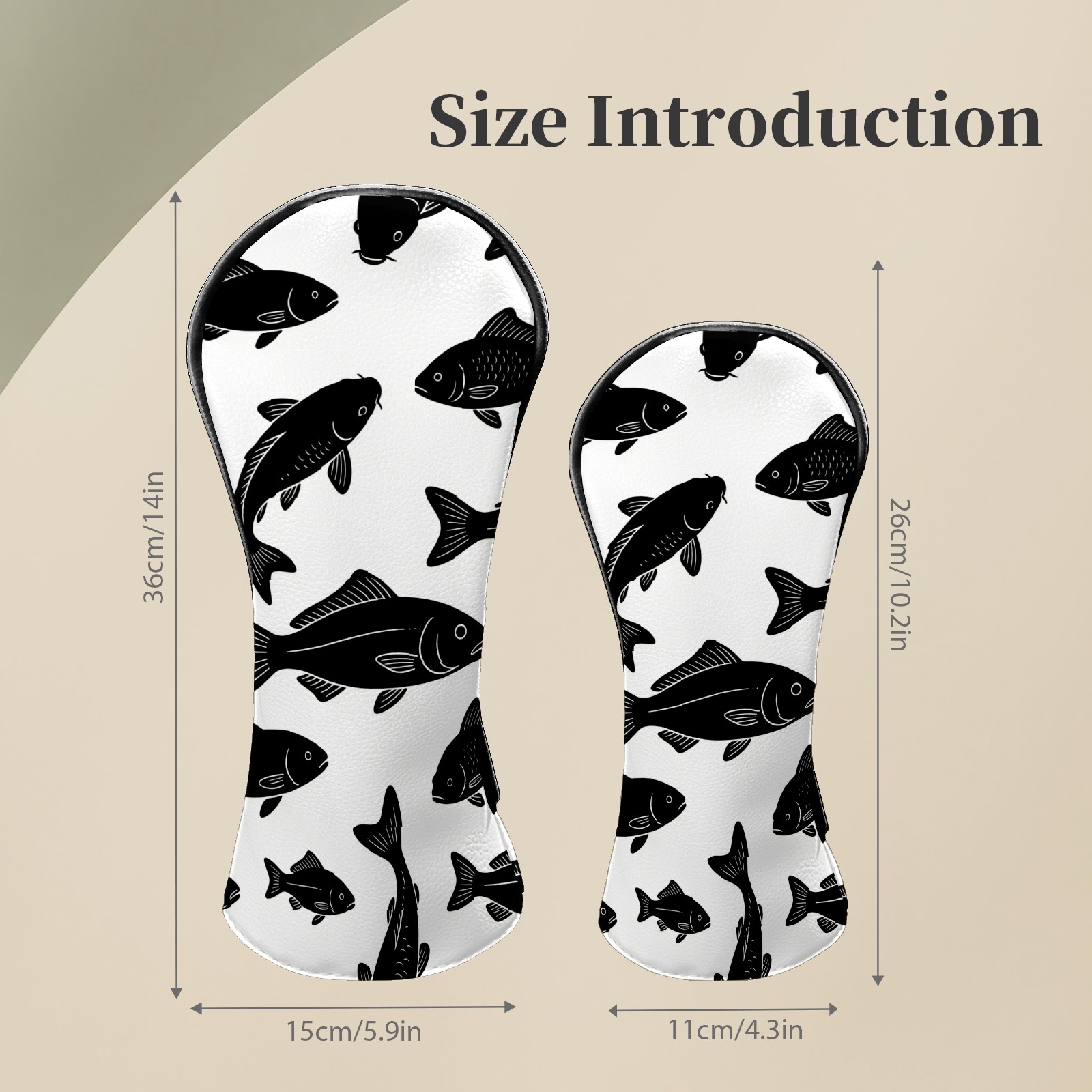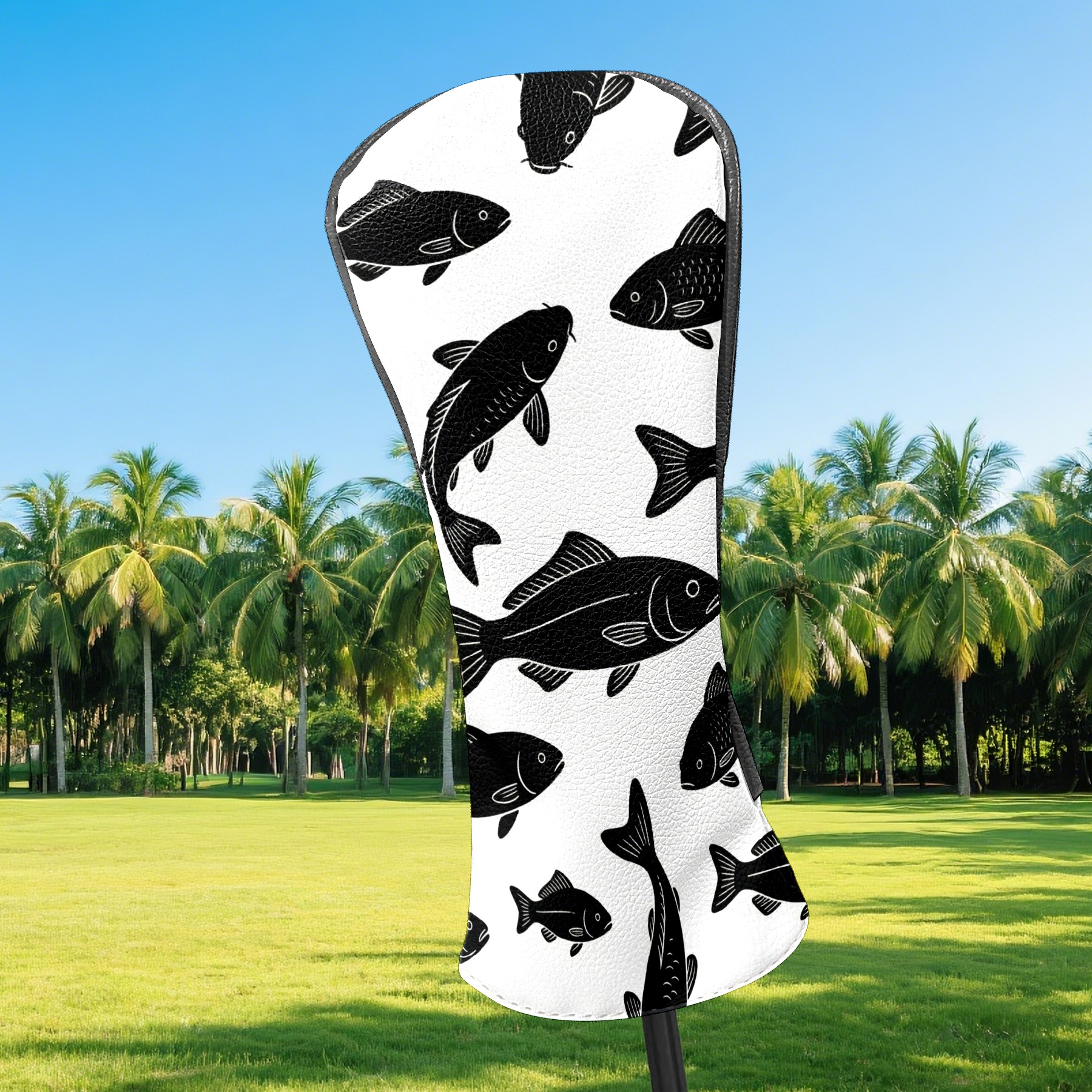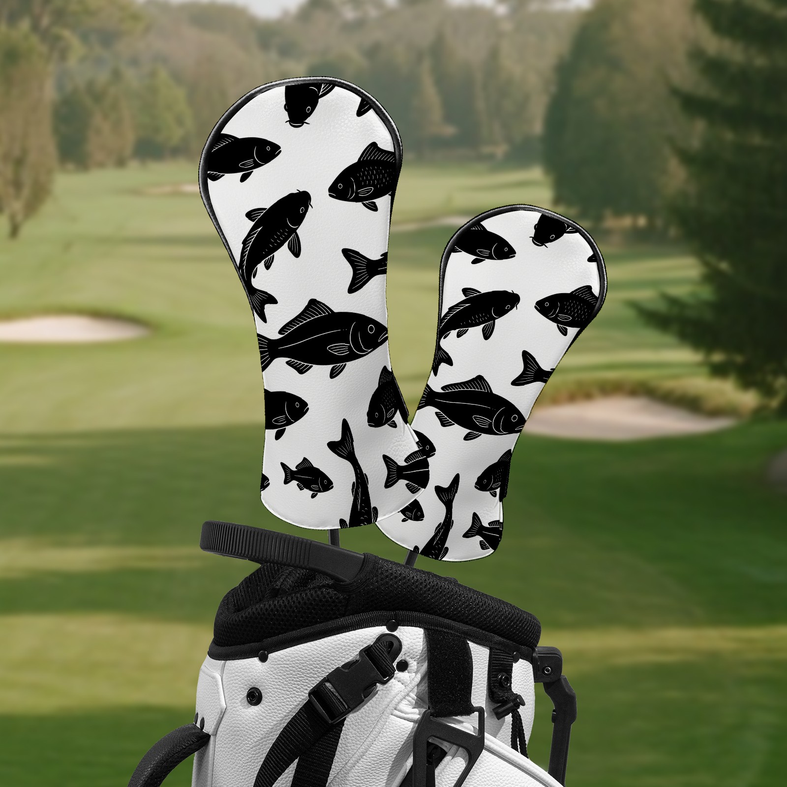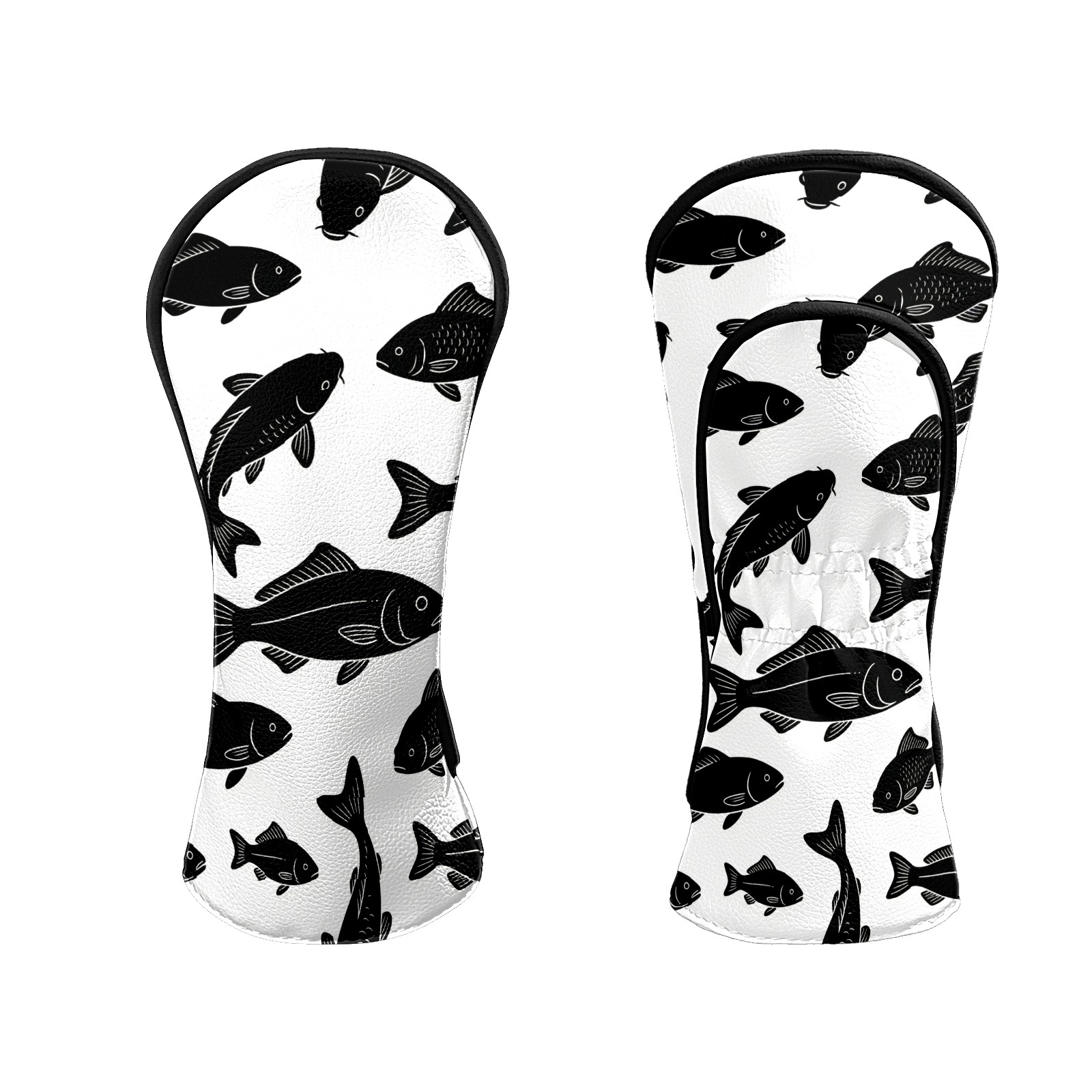 Golf Club Head Covers – Cool Fish Black with Soft Plush Lining, Waterproof PU Leather for Driver & Fairway Woods | Durable, No-Slip Elastic Fit | Novelty Gift for Men & Women