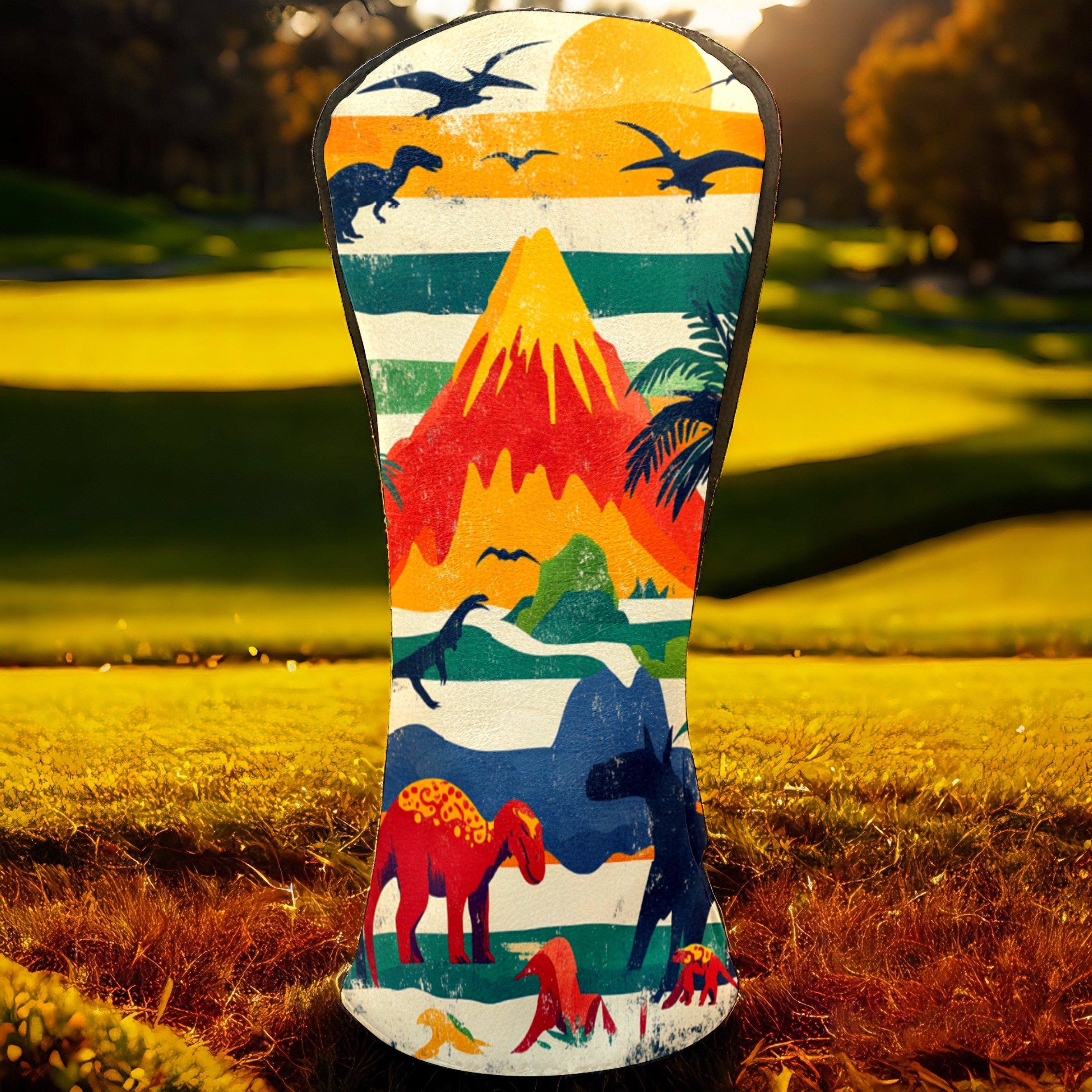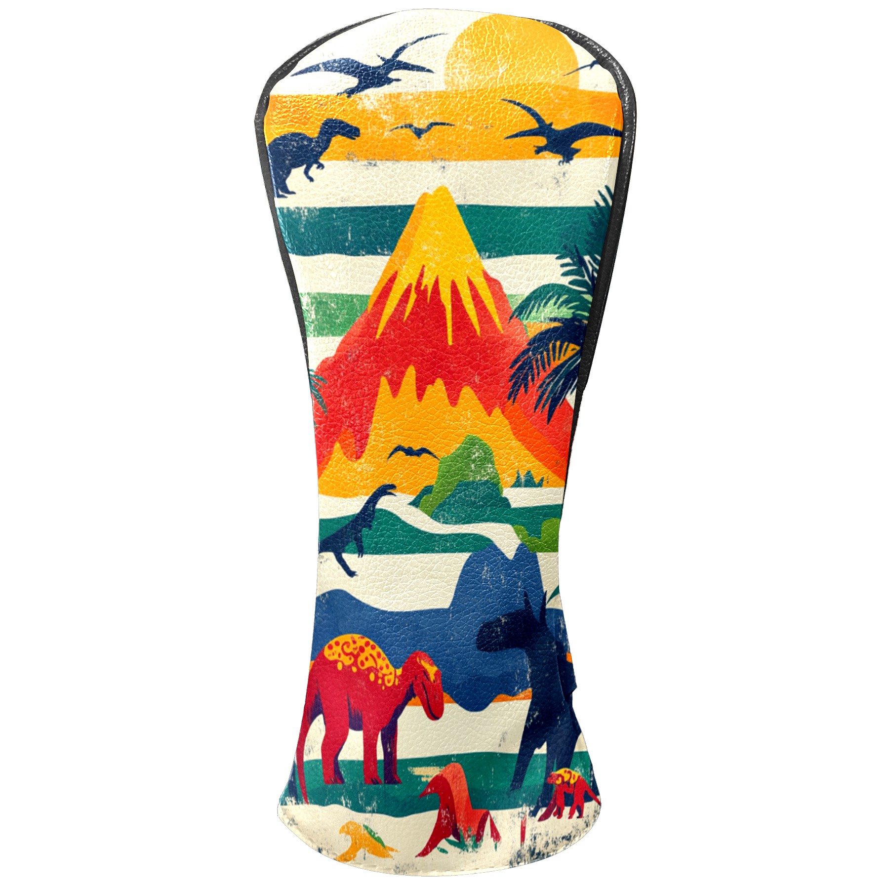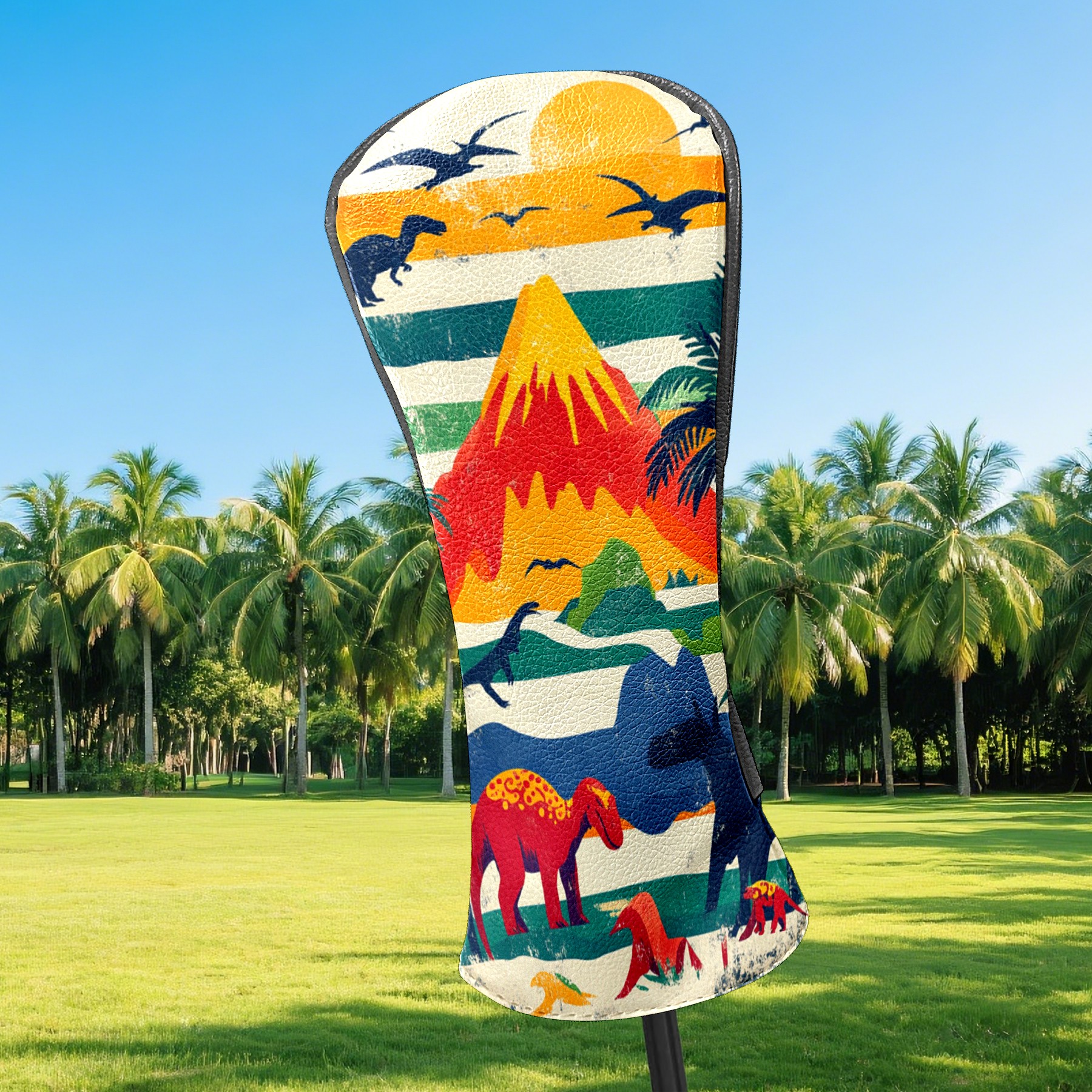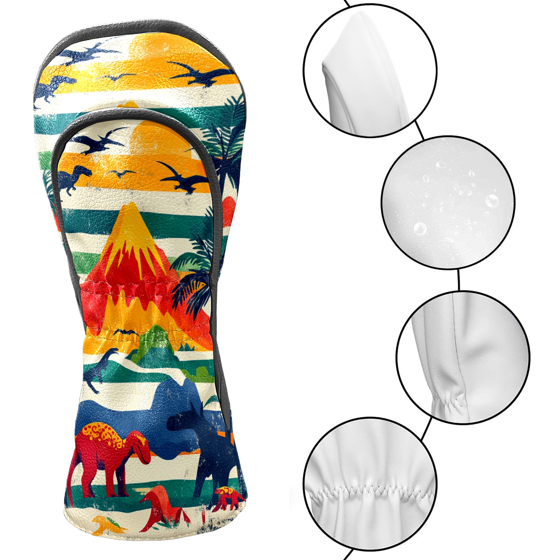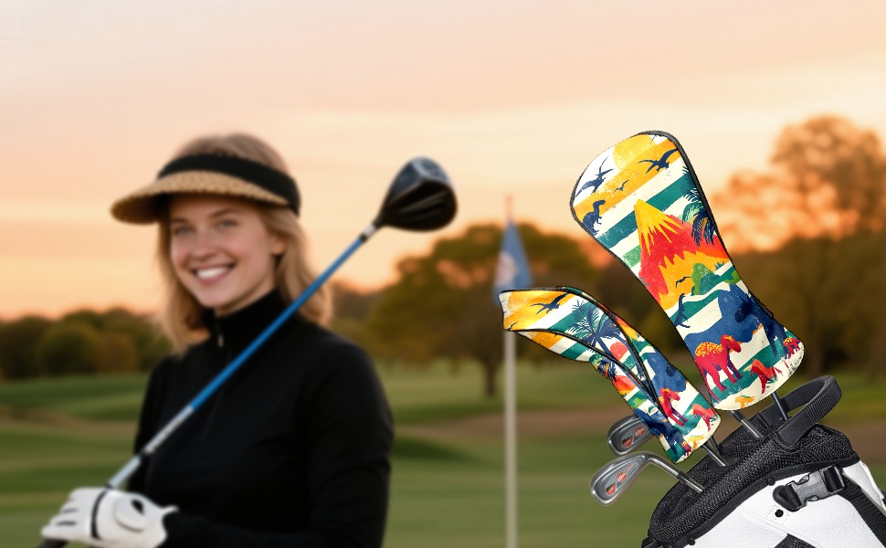 Golf Headcovers Fits Driver Hybrid Fairway 3/5 Wood, Waterproof PU Leather Golf Club Protector, Ideal Sports Accessories & Golfer Gift Retro Dinosaur Pattern