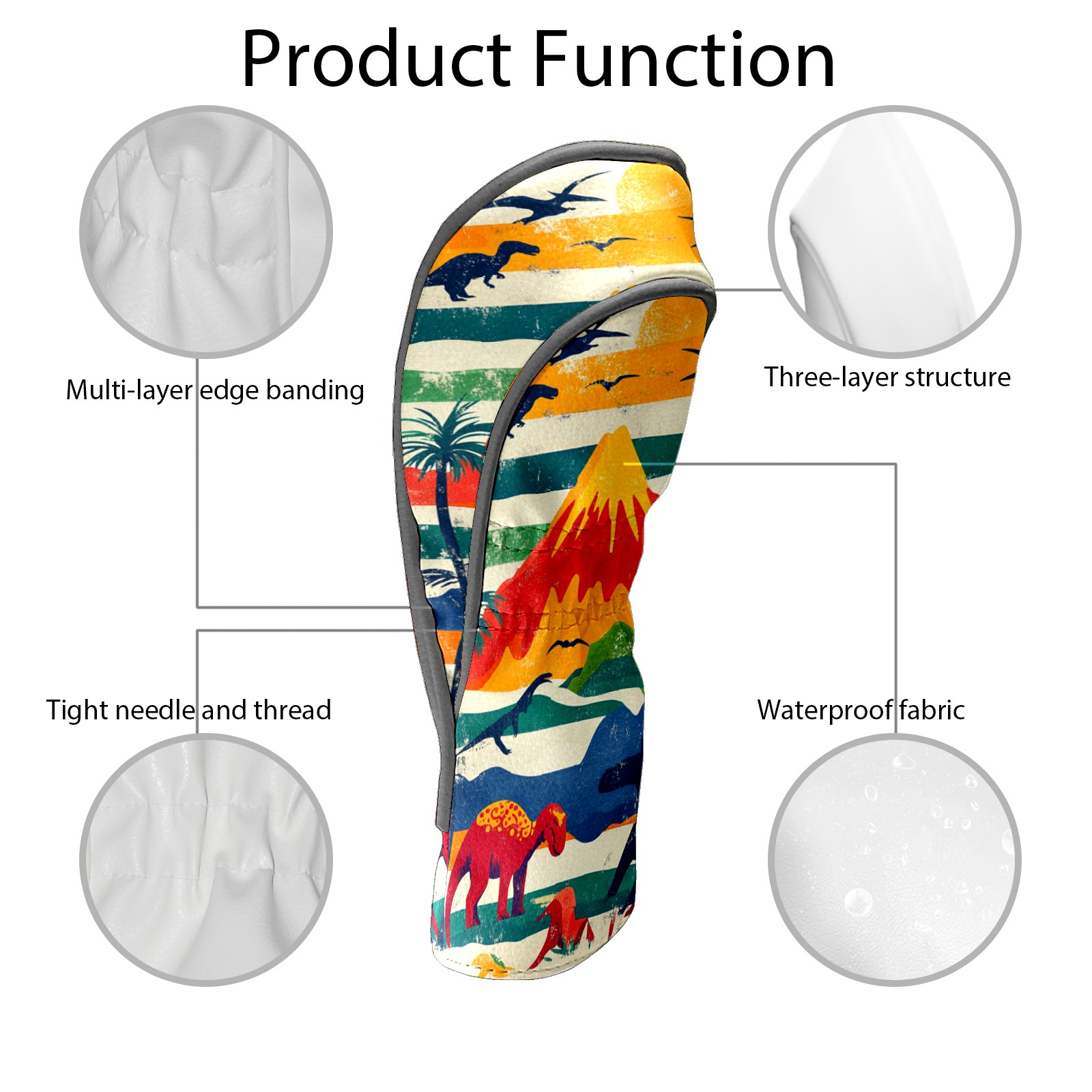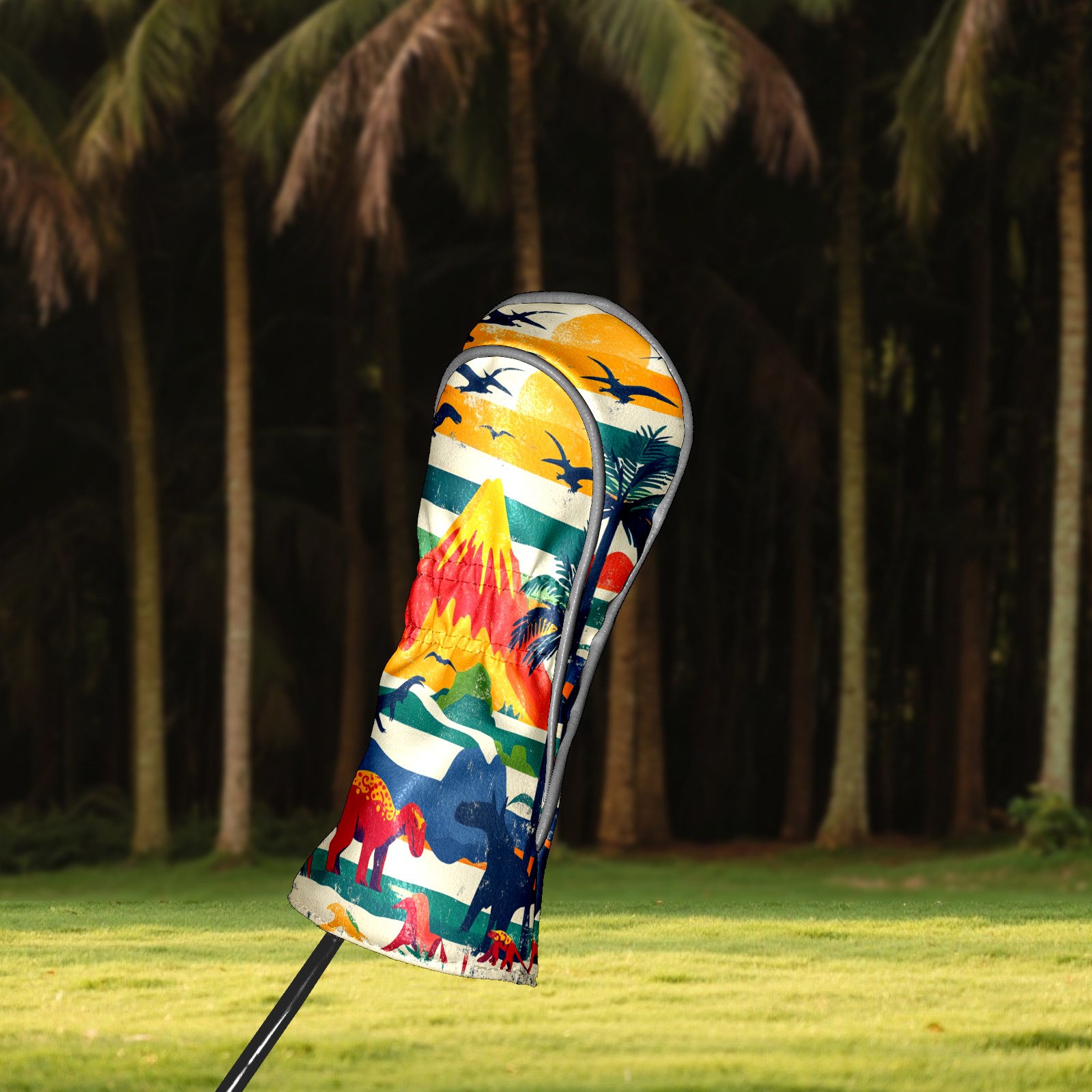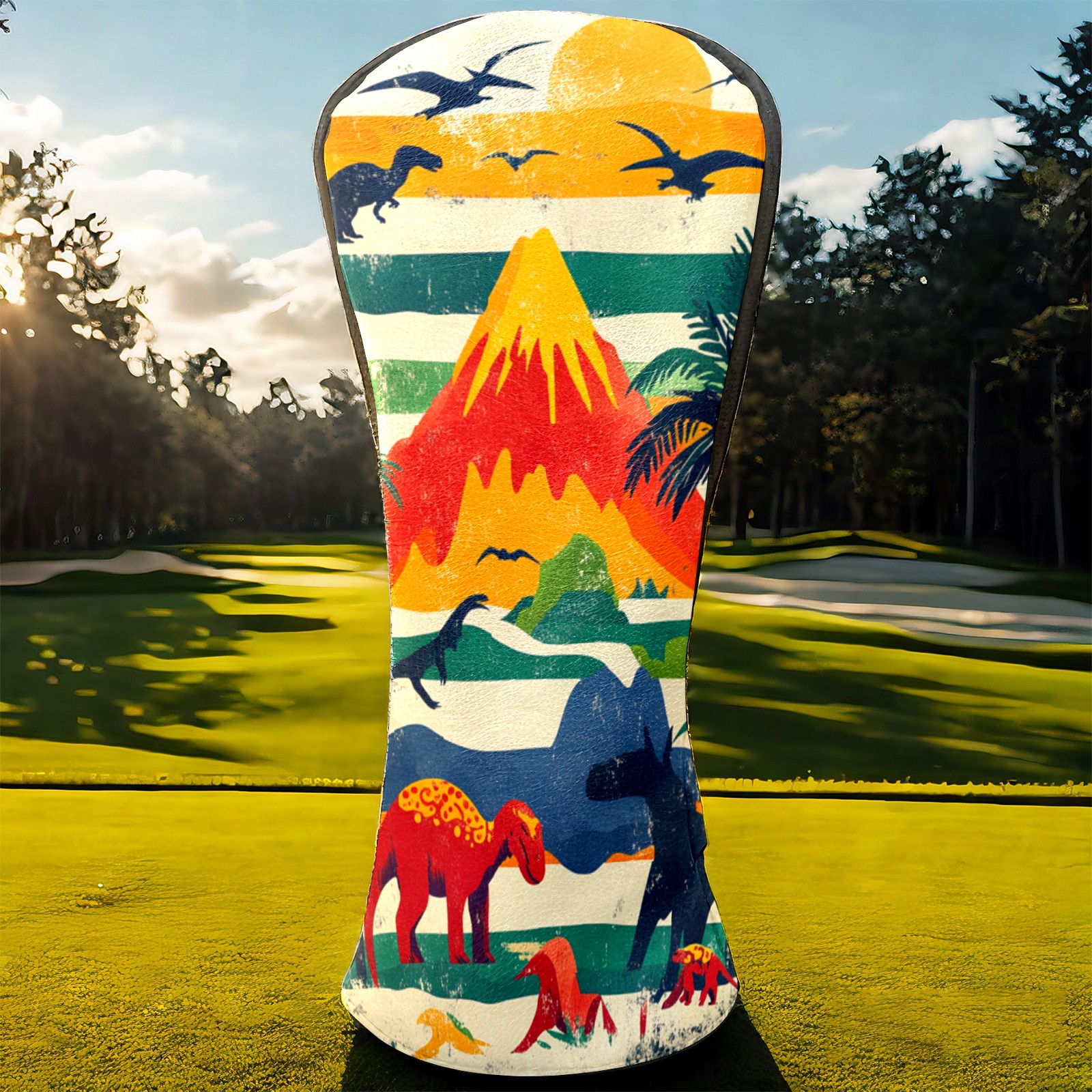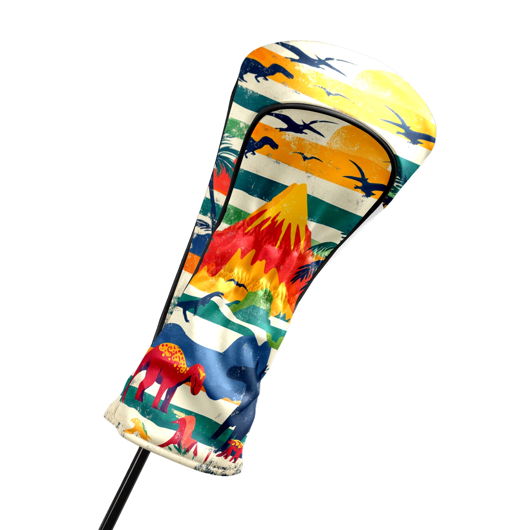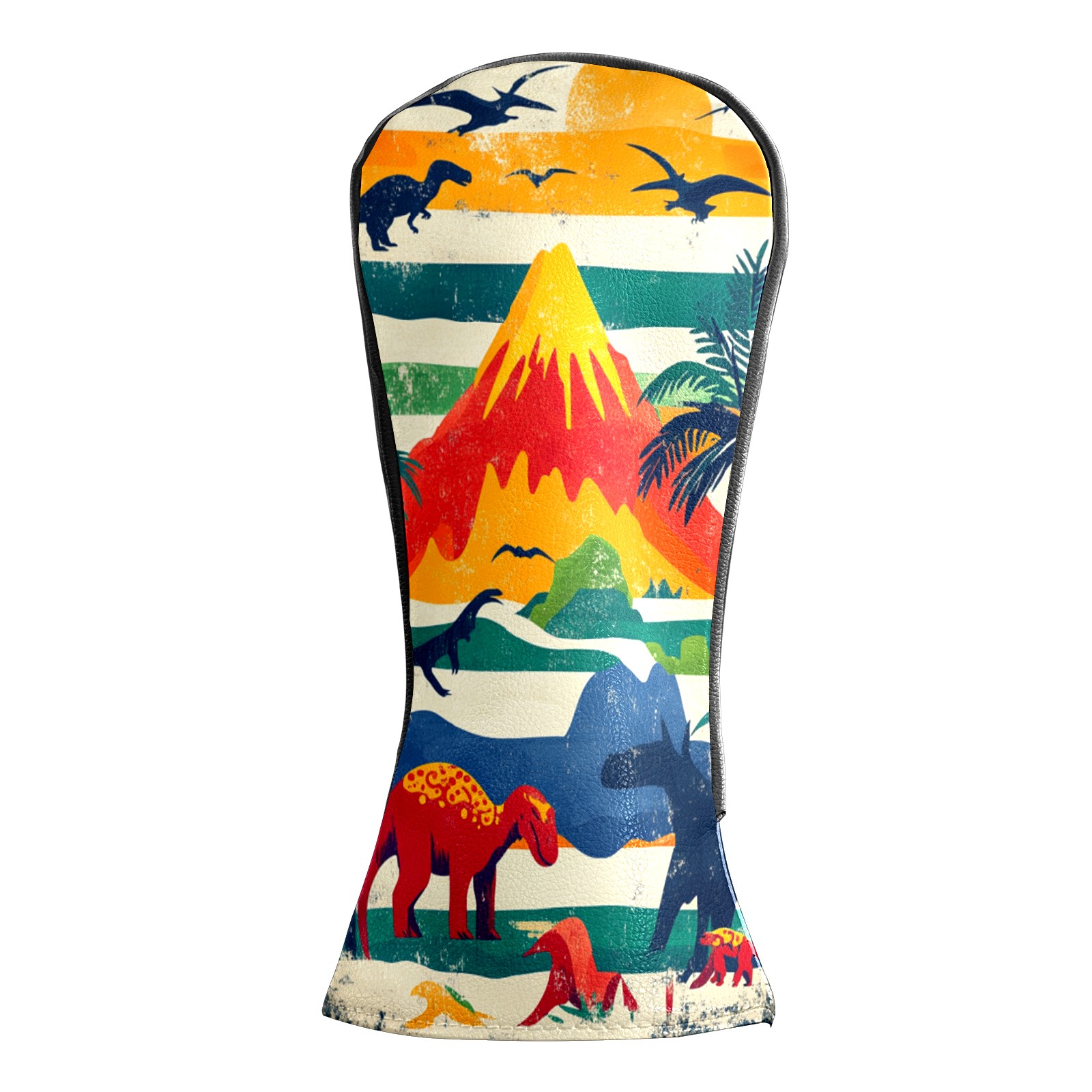 Golf Headcovers Fits Driver Hybrid Fairway 3/5 Wood, Waterproof PU Leather Golf Club Protector, Ideal Sports Accessories & Golfer Gift Retro Dinosaur Pattern
