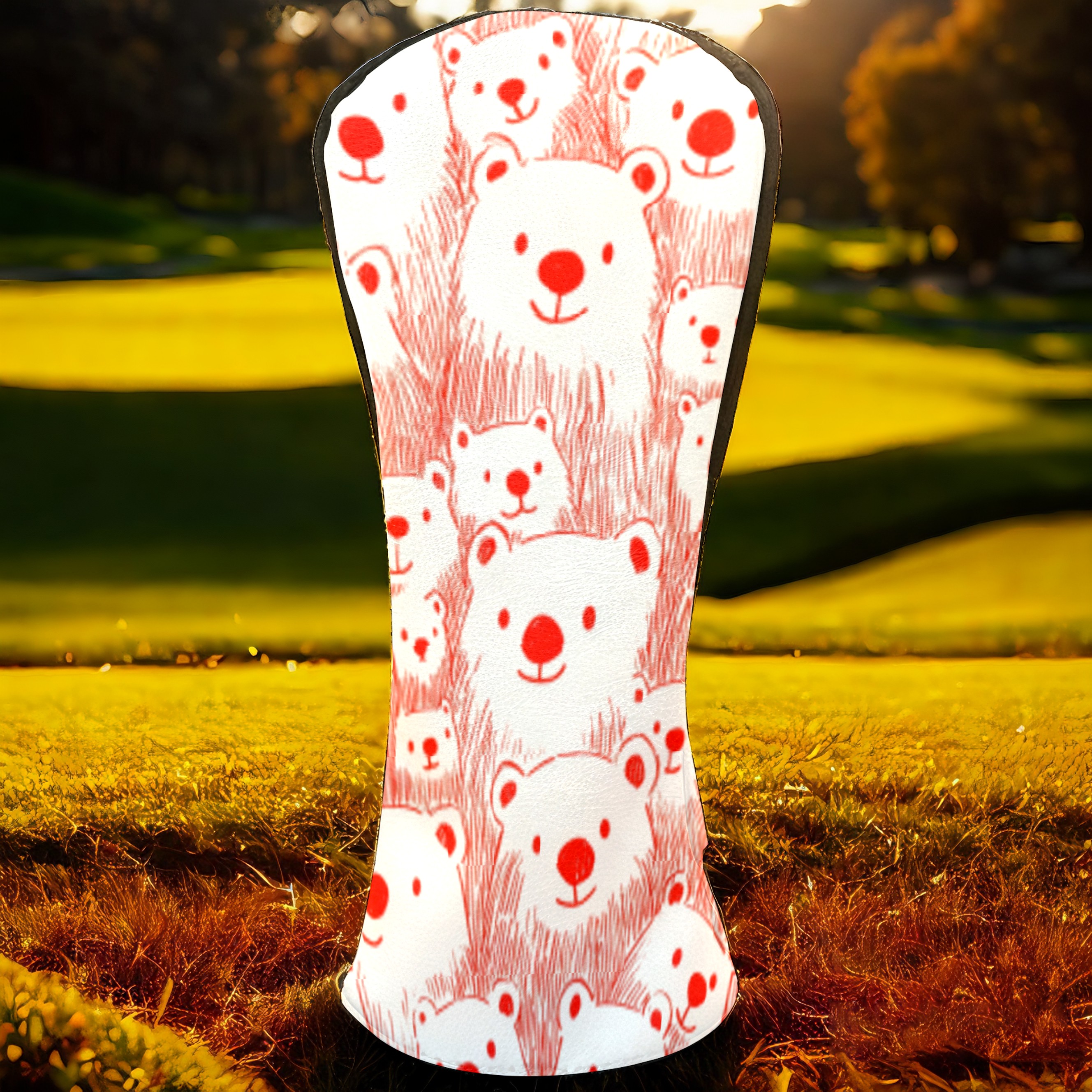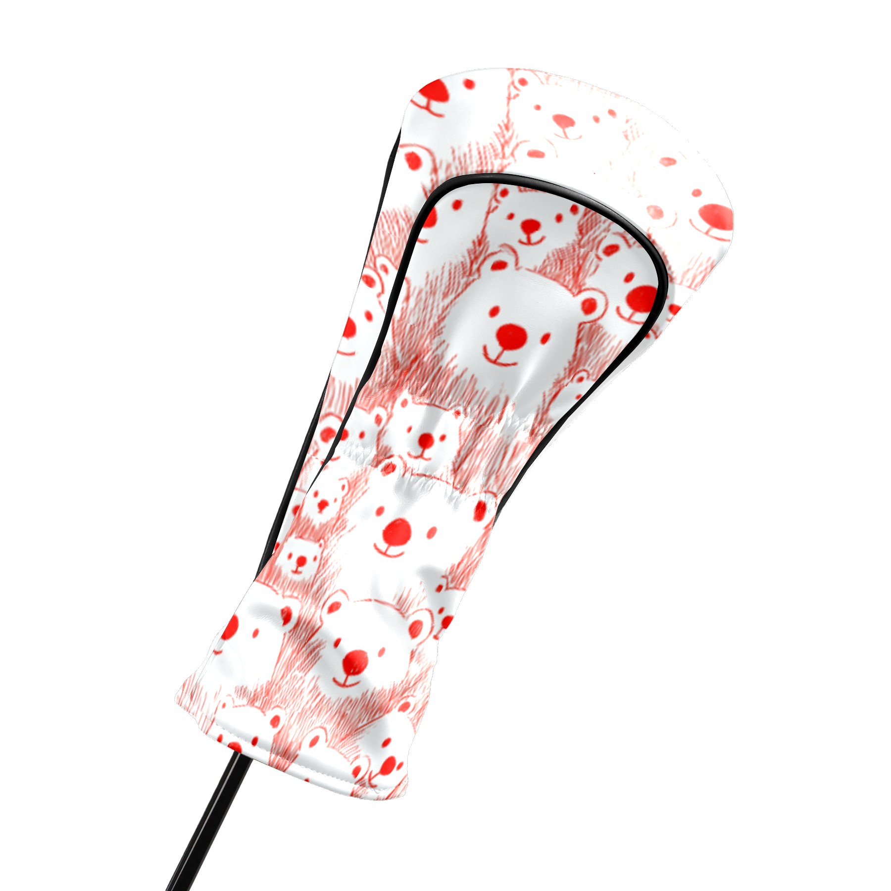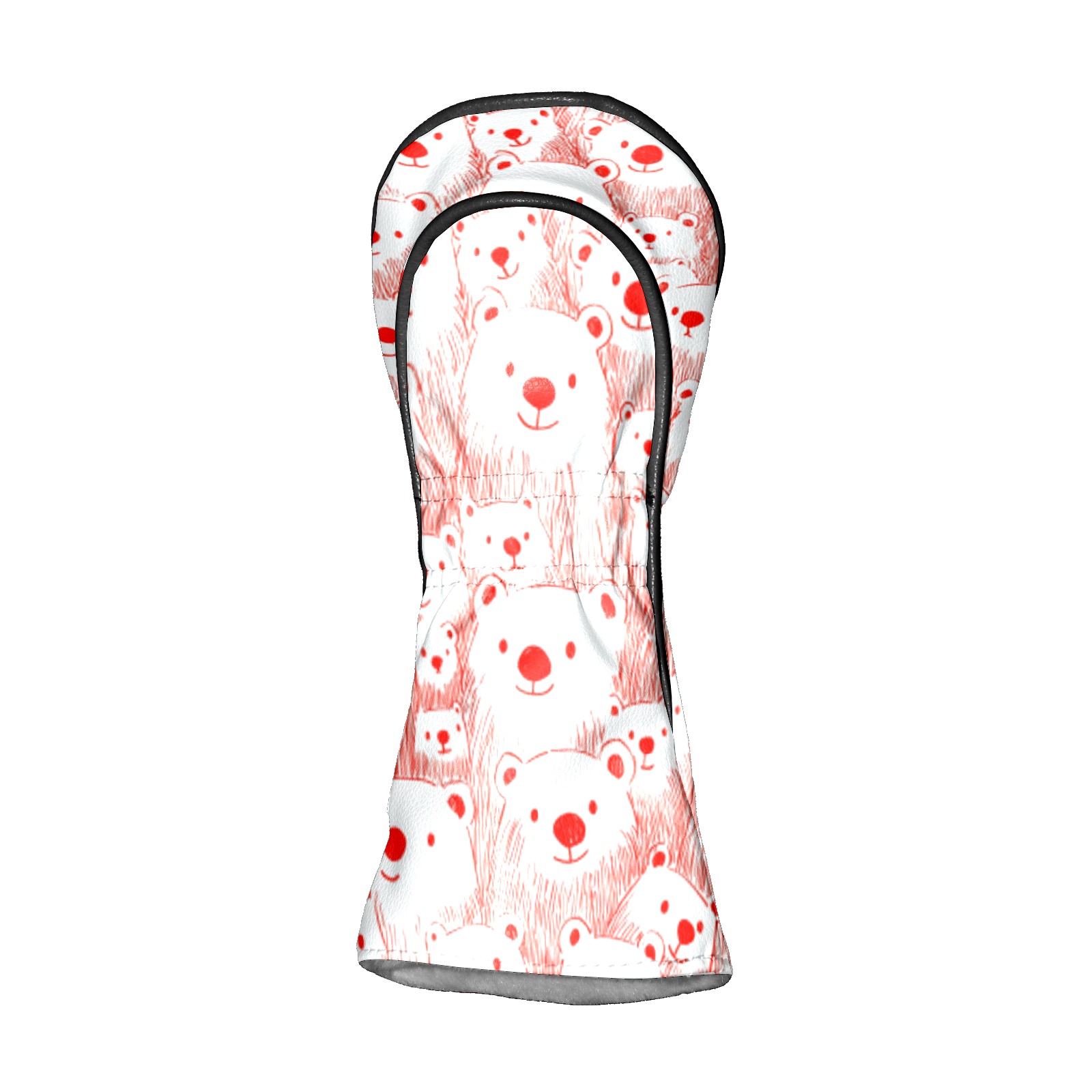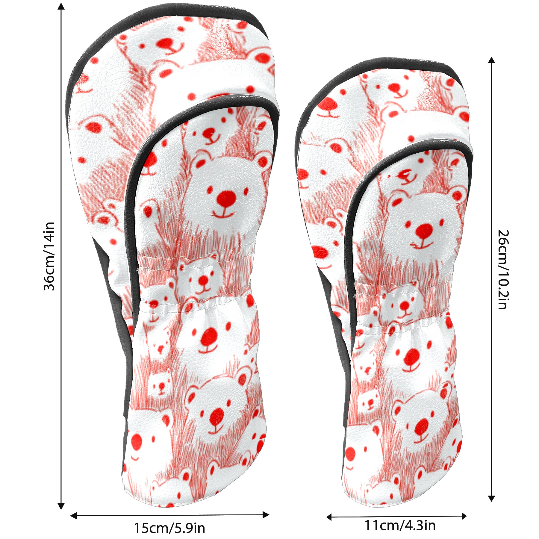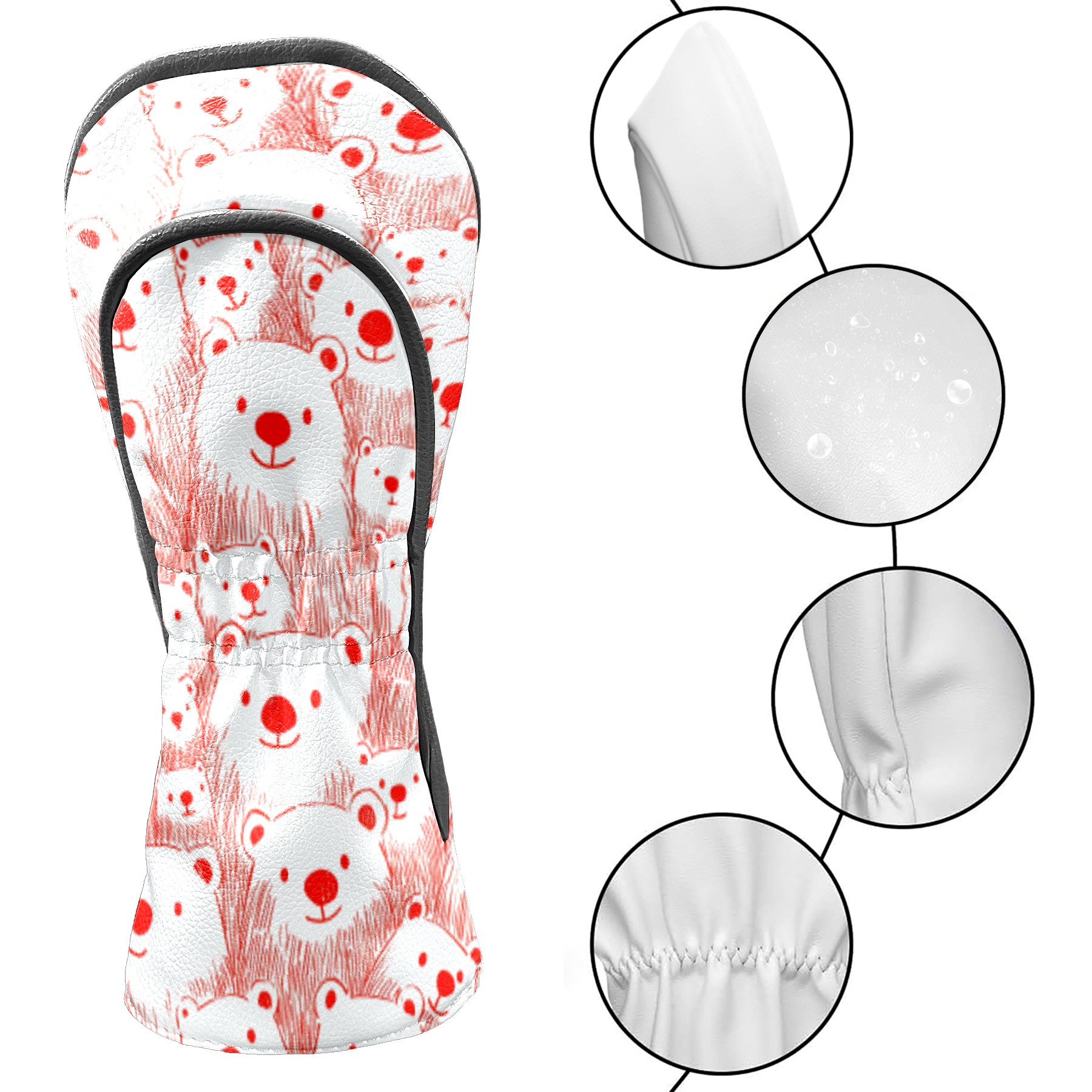 Golf Headcovers Fits Driver Hybrid Fairway 3/5 Wood, Waterproof PU Leather Golf Club Protector, Ideal Sports Accessories & Golfer Gift Red Bear Pattern