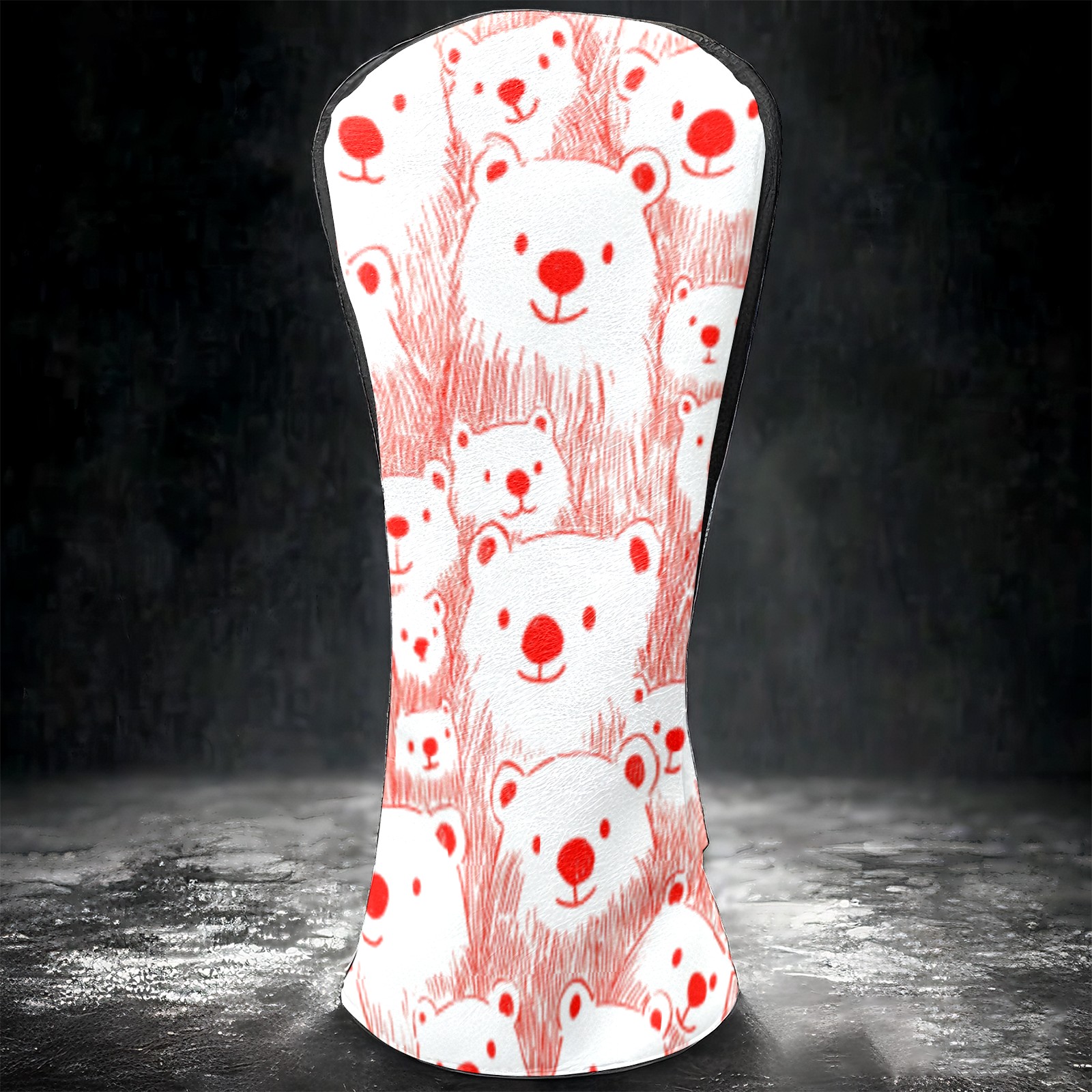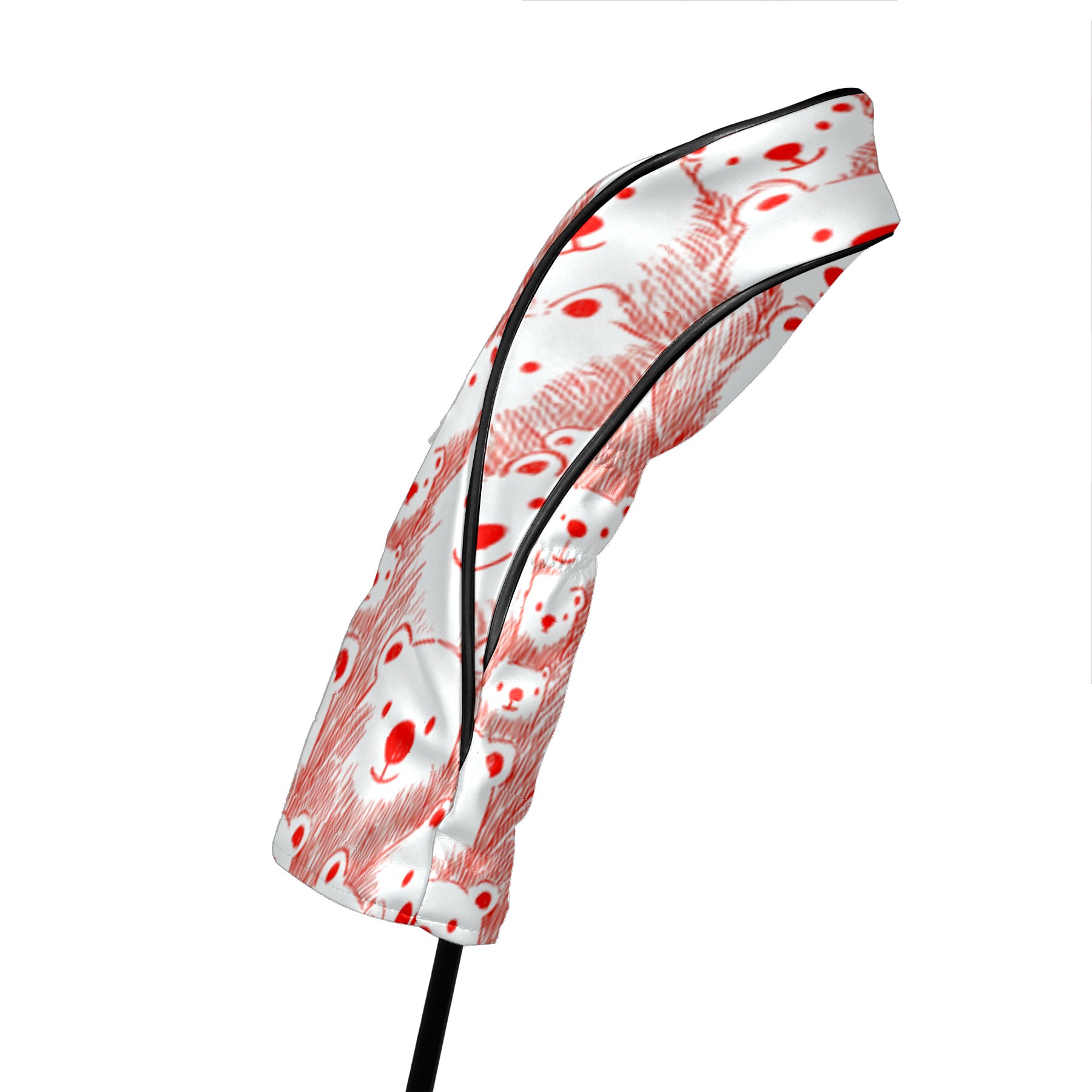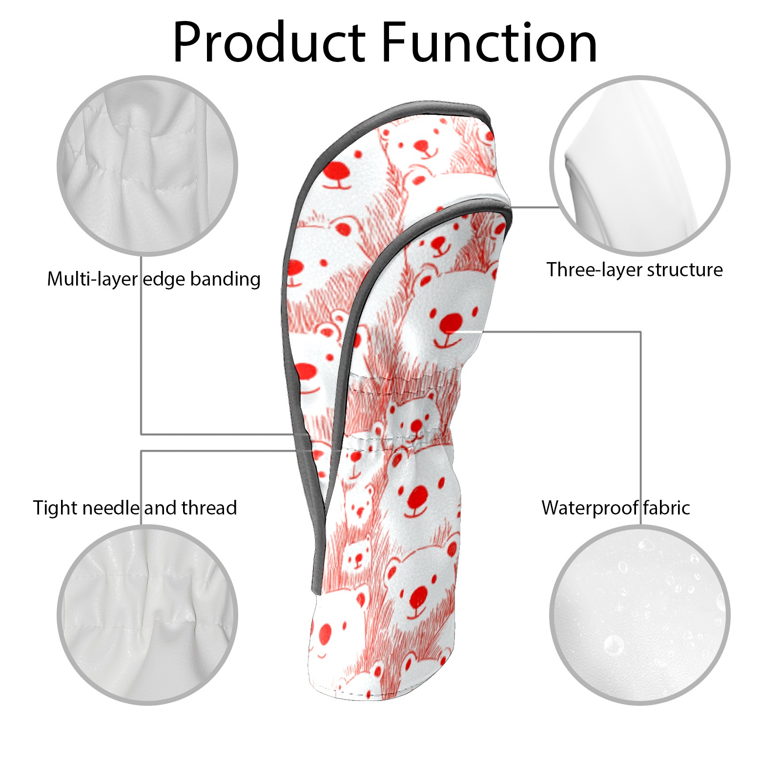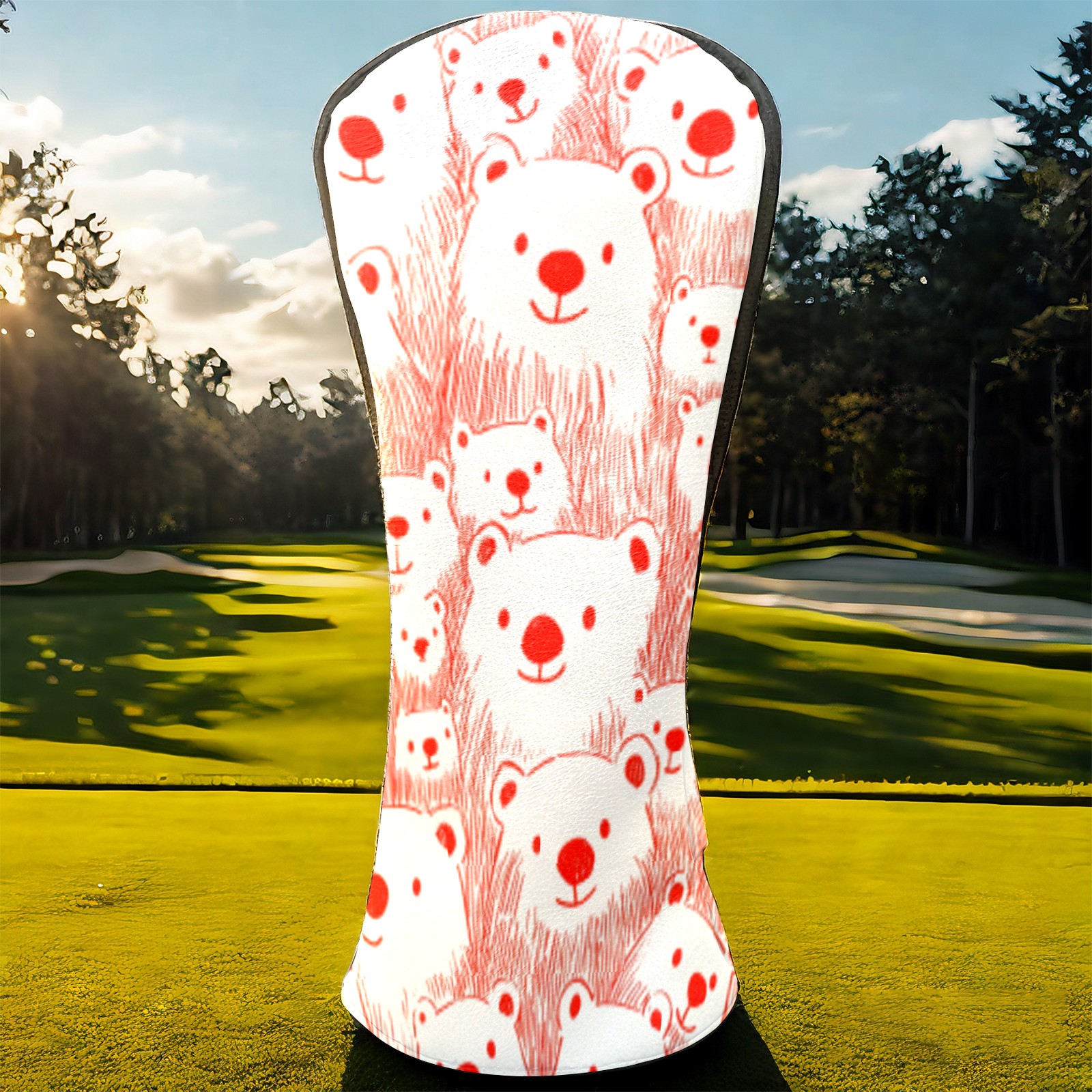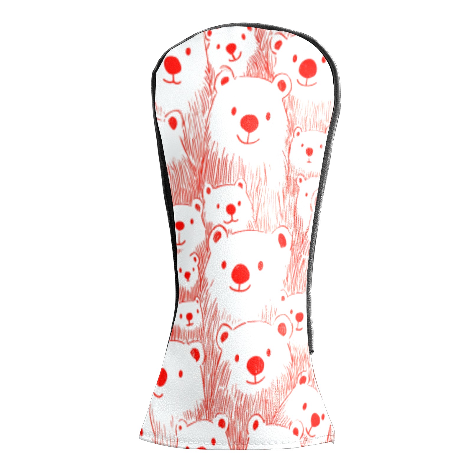 Golf Headcovers Fits Driver Hybrid Fairway 3/5 Wood, Waterproof PU Leather Golf Club Protector, Ideal Sports Accessories & Golfer Gift Red Bear Pattern