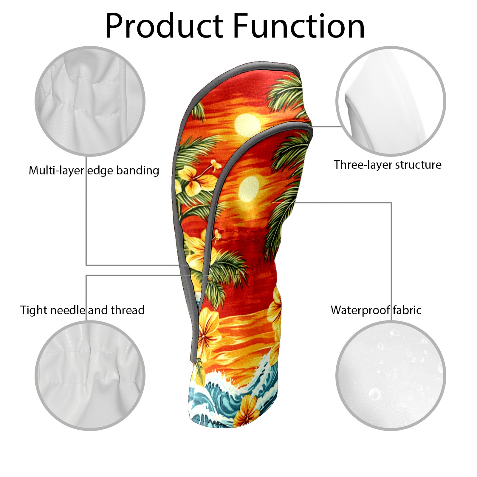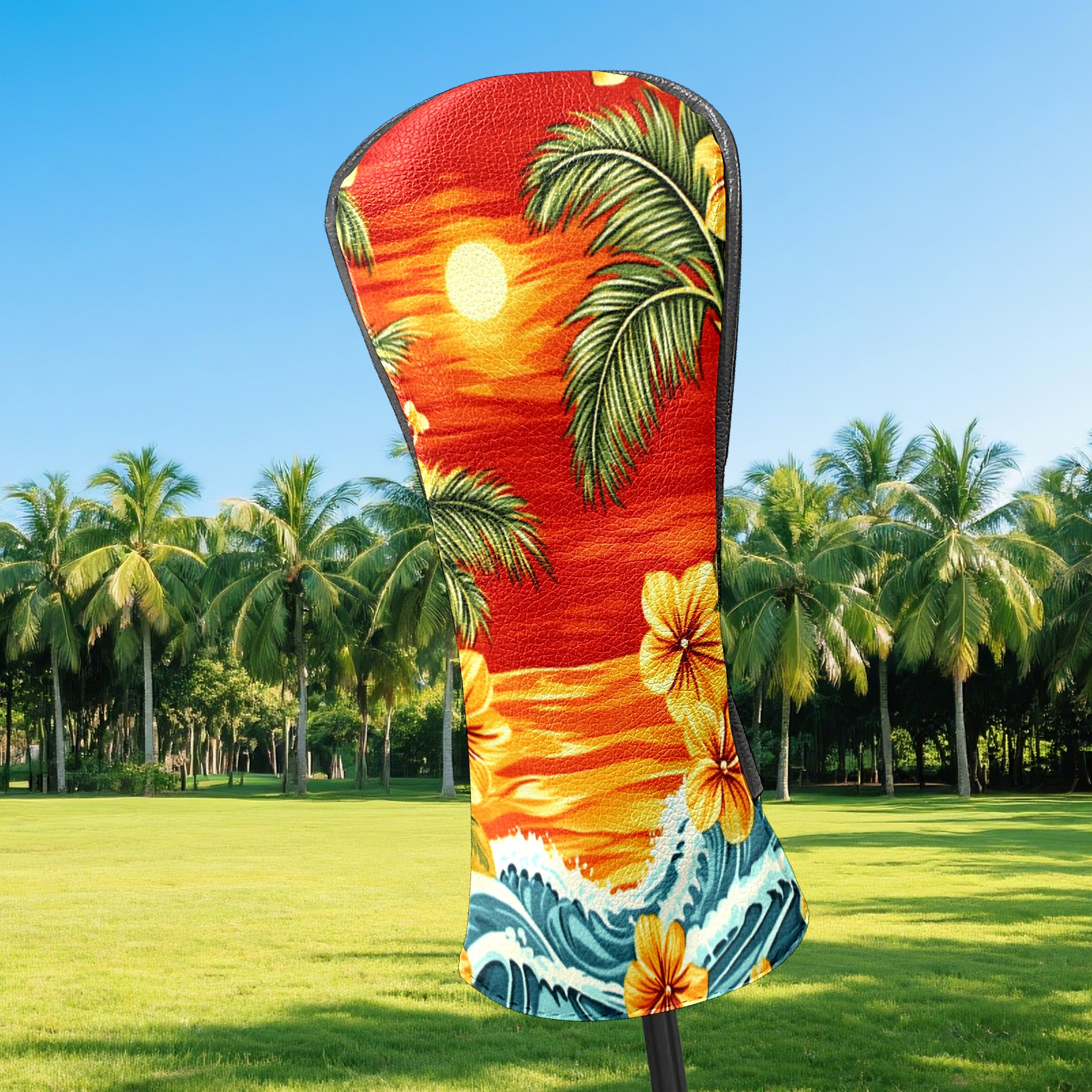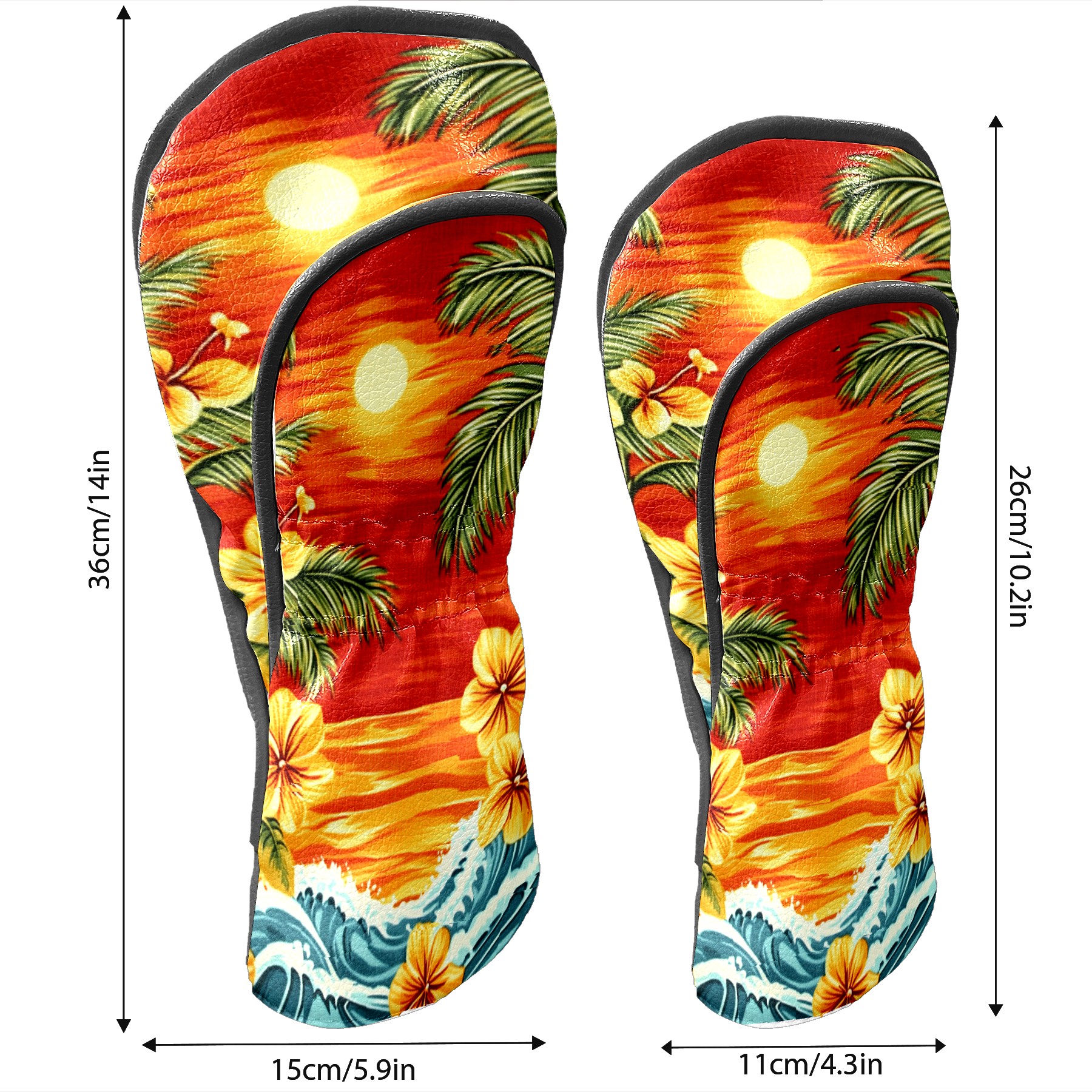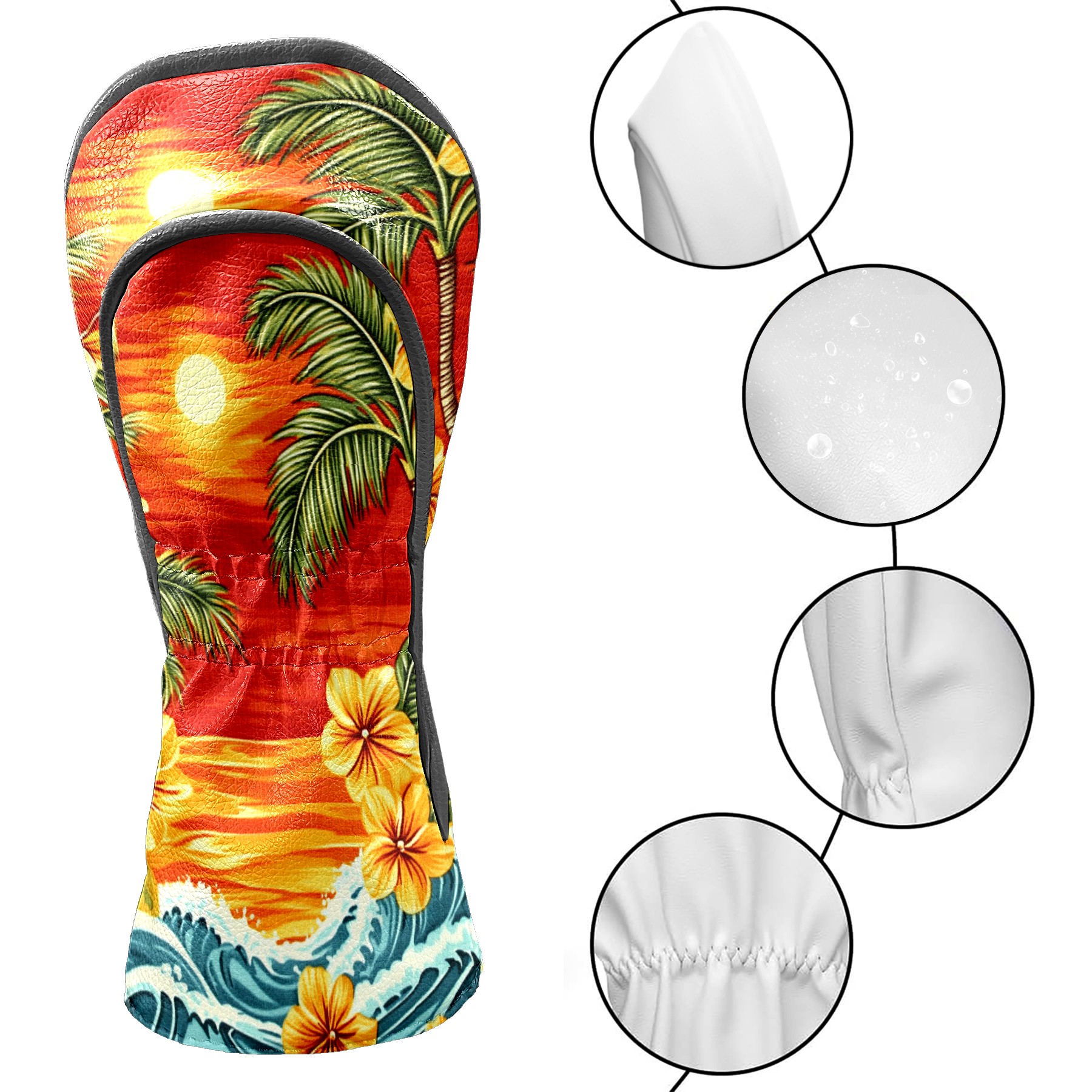 Golf Headcovers Fits Driver Hybrid Fairway 3/5 Wood, Waterproof PU Leather Golf Club Protector, Ideal Sports Accessories & Golfer Gift Sunset Palm Tree Pattern