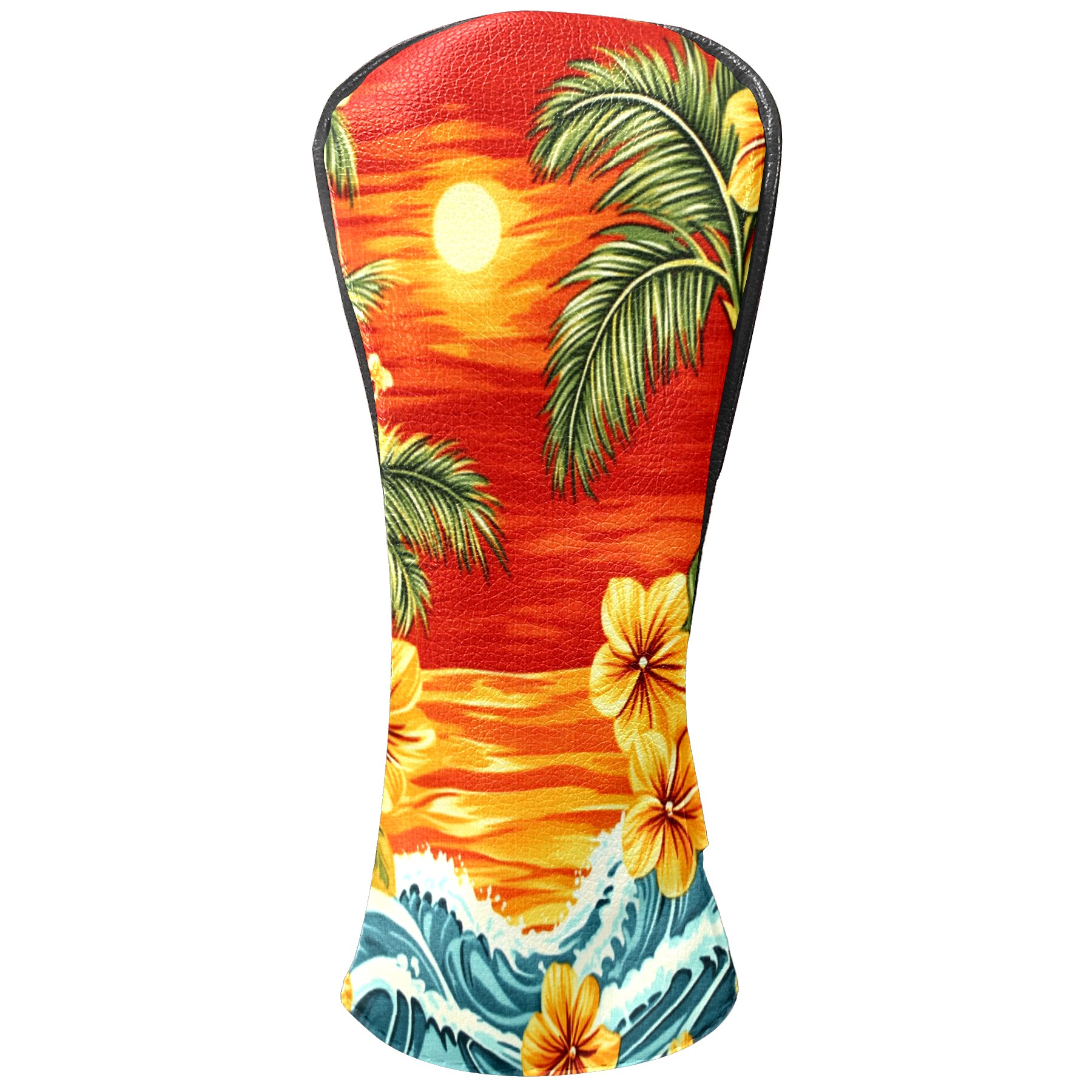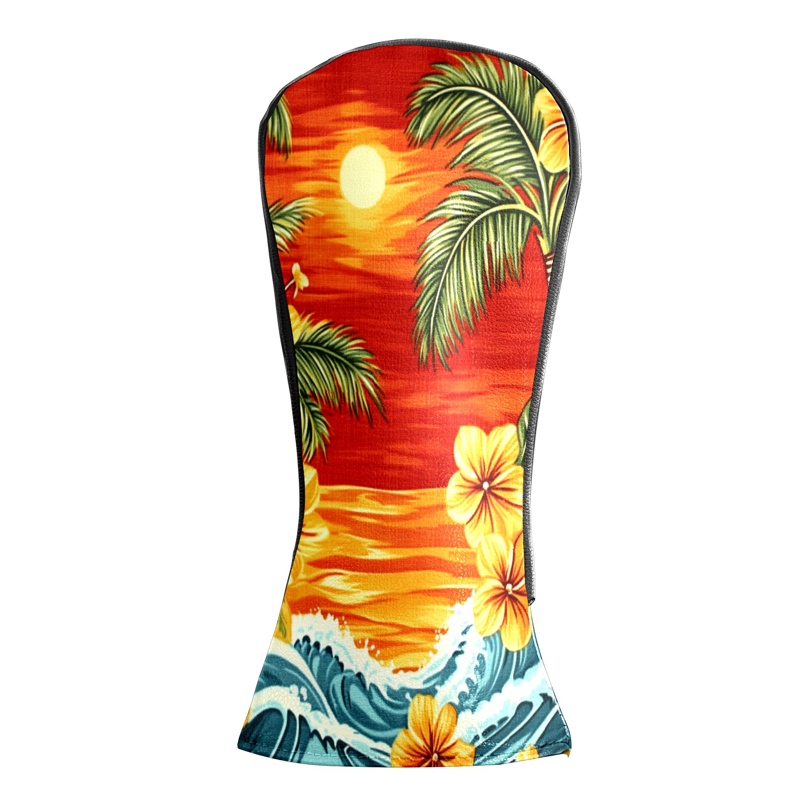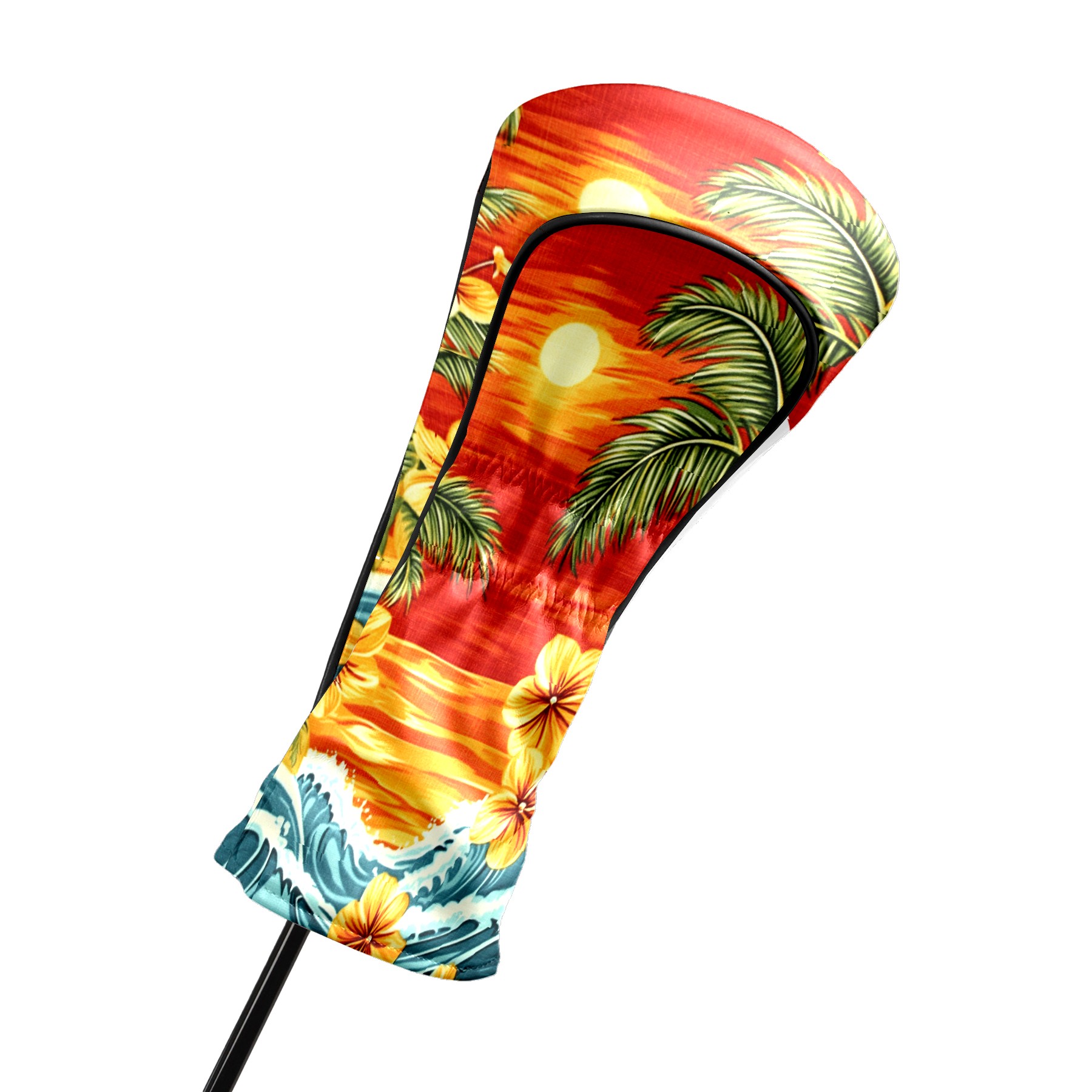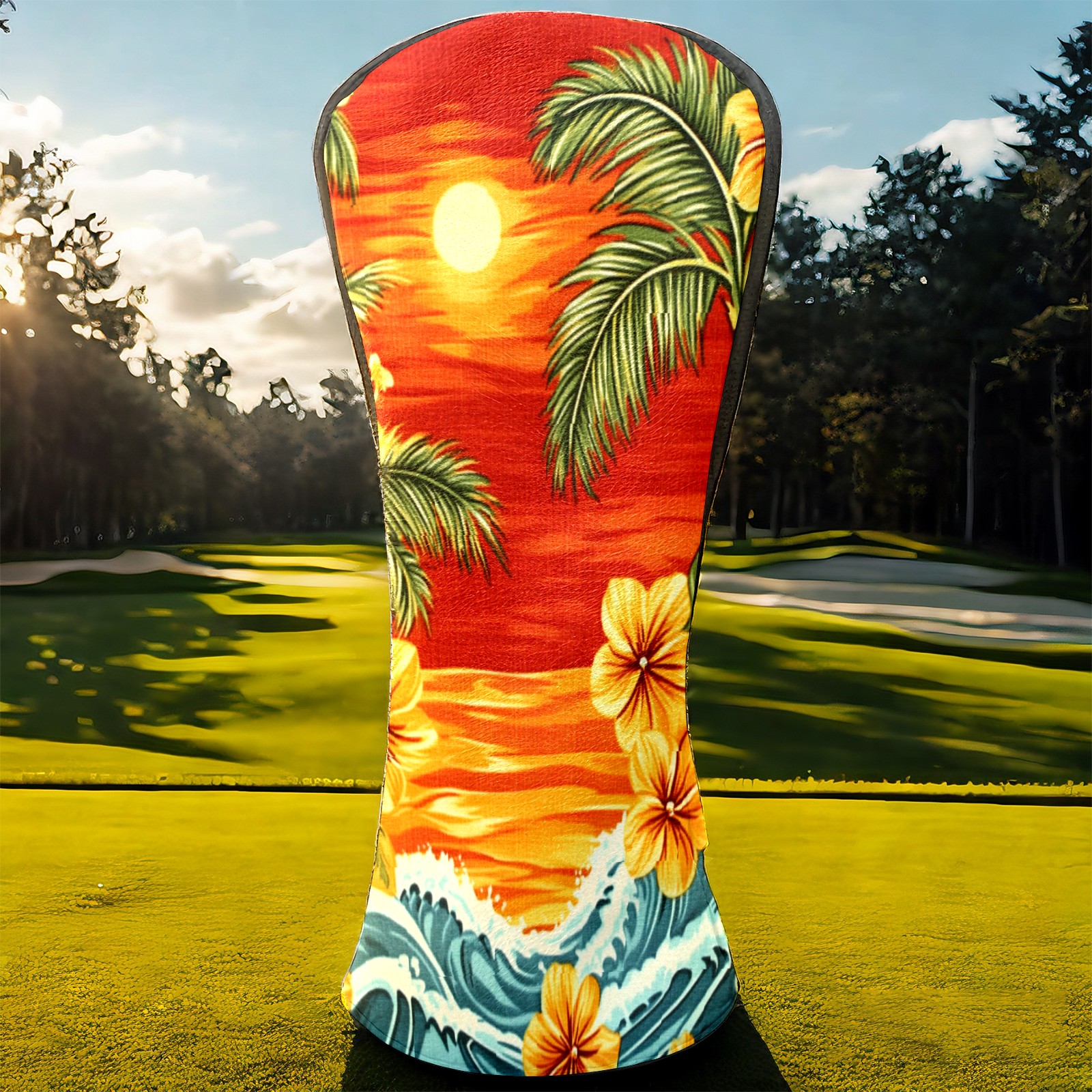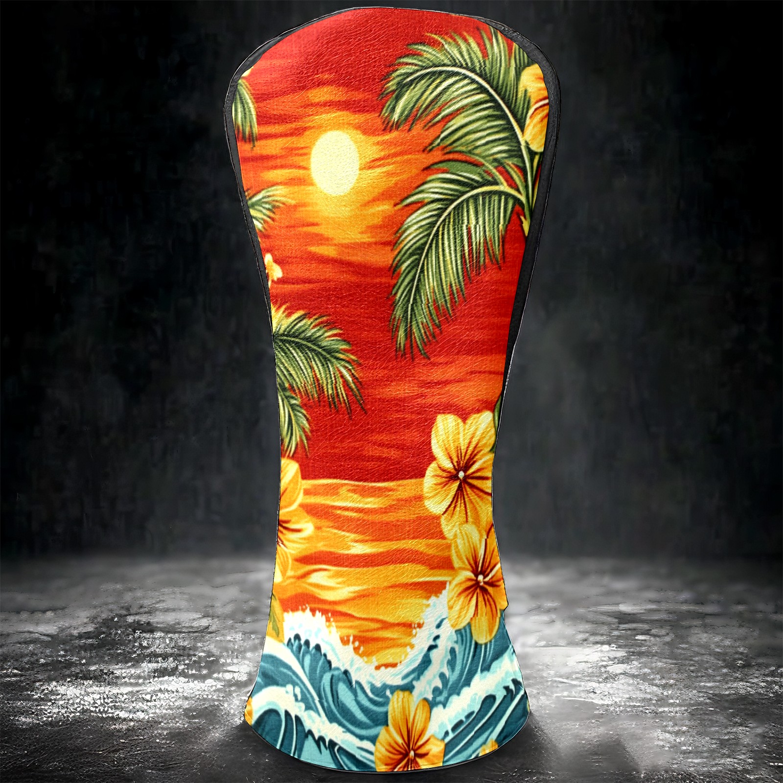 Golf Headcovers Fits Driver Hybrid Fairway 3/5 Wood, Waterproof PU Leather Golf Club Protector, Ideal Sports Accessories & Golfer Gift Sunset Palm Tree Pattern