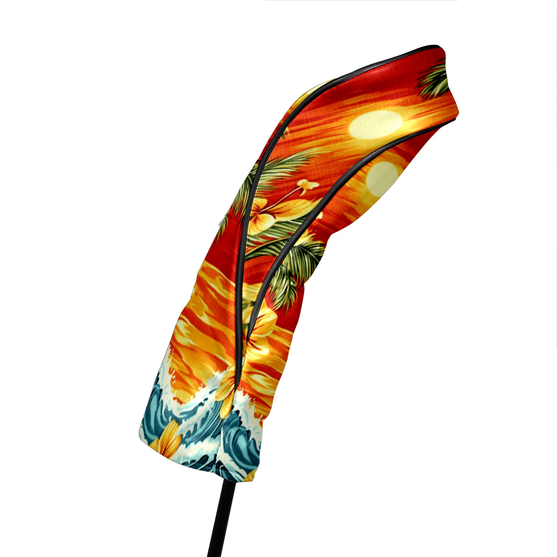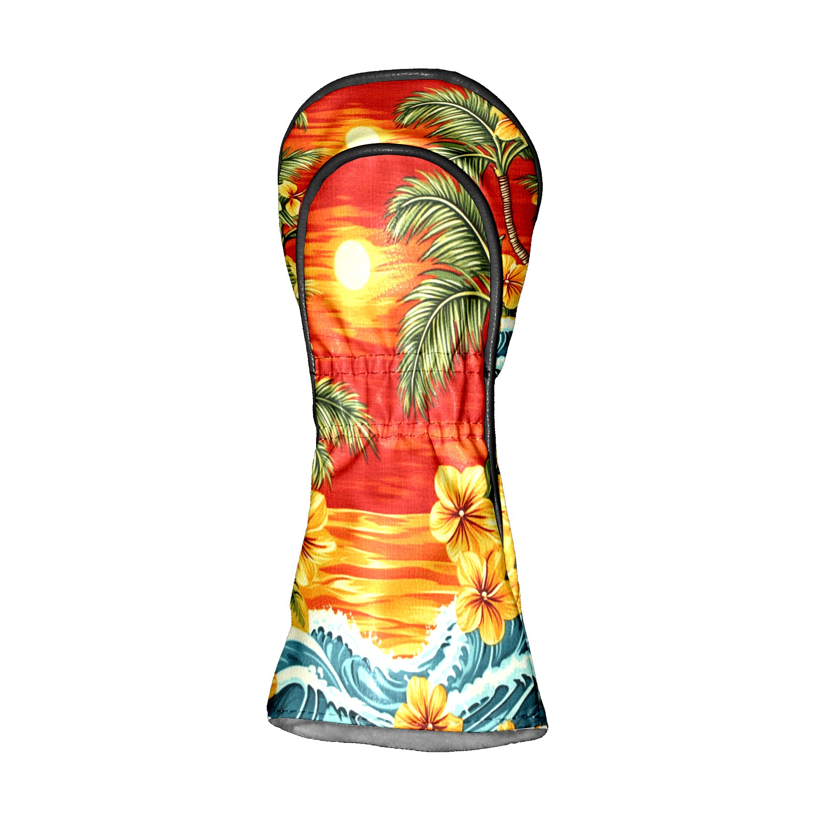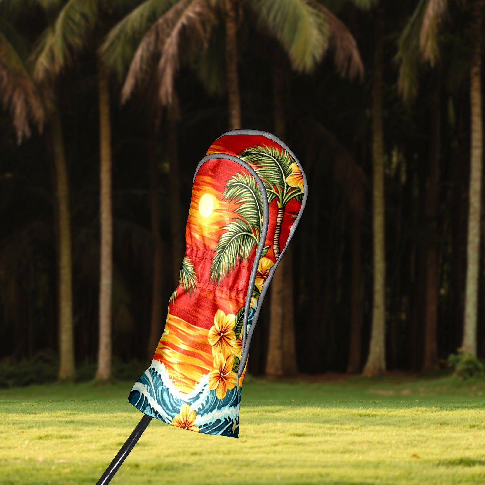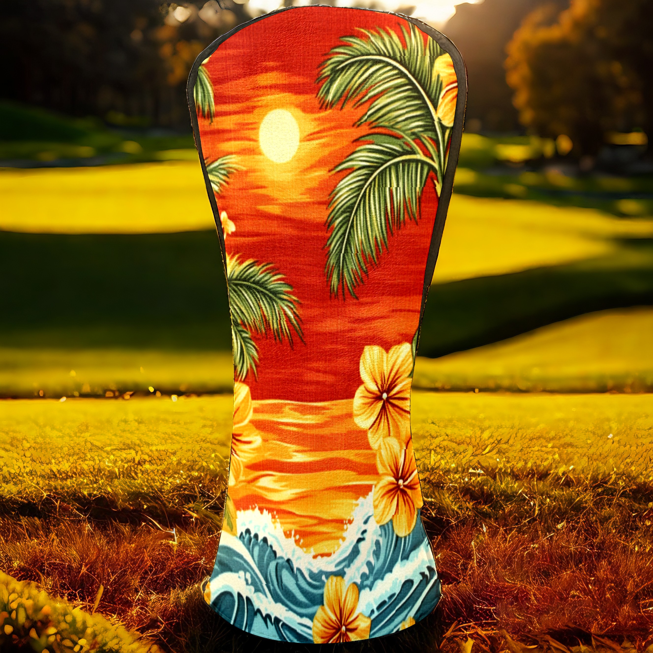 Golf Headcovers Fits Driver Hybrid Fairway 3/5 Wood, Waterproof PU Leather Golf Club Protector, Ideal Sports Accessories & Golfer Gift Sunset Palm Tree Pattern
