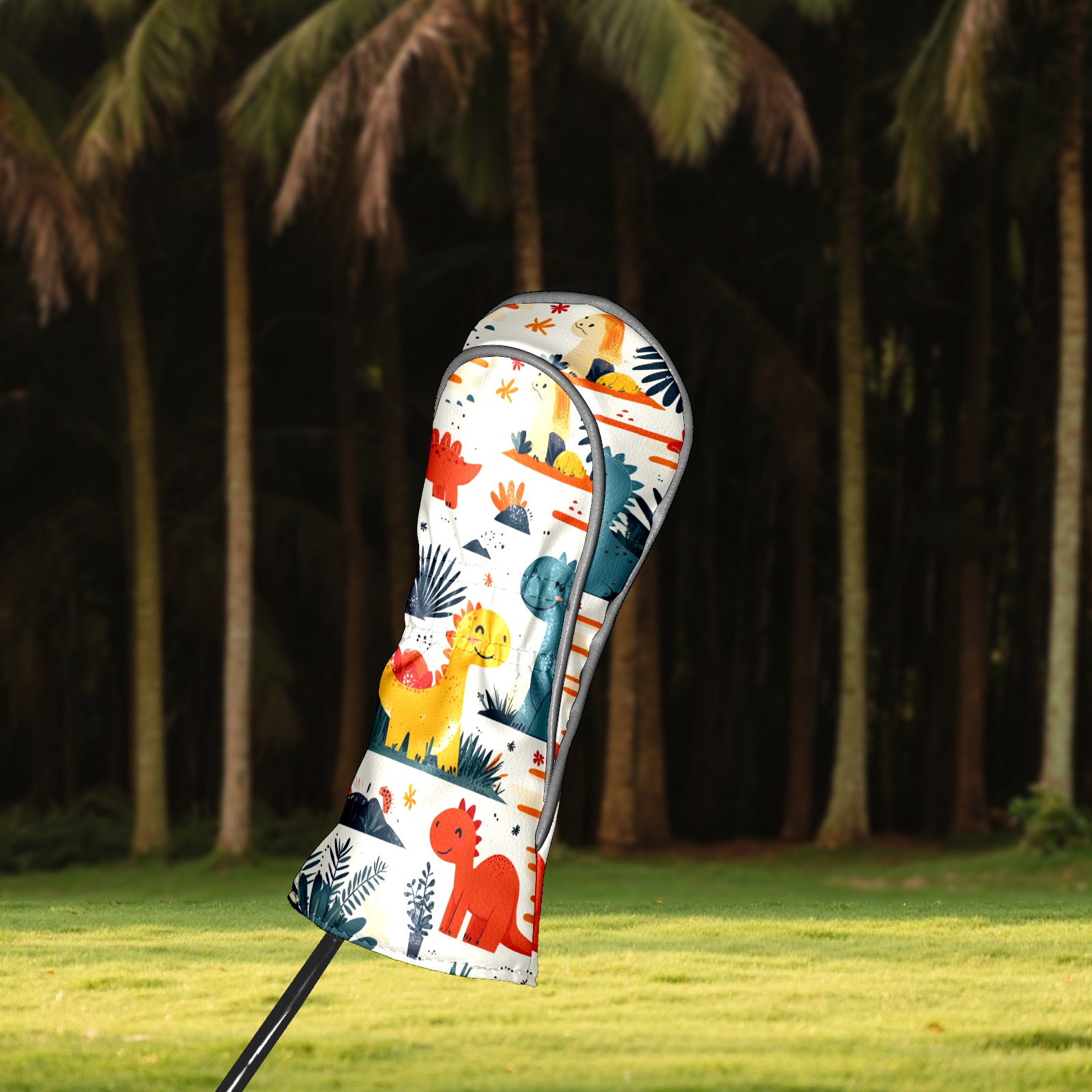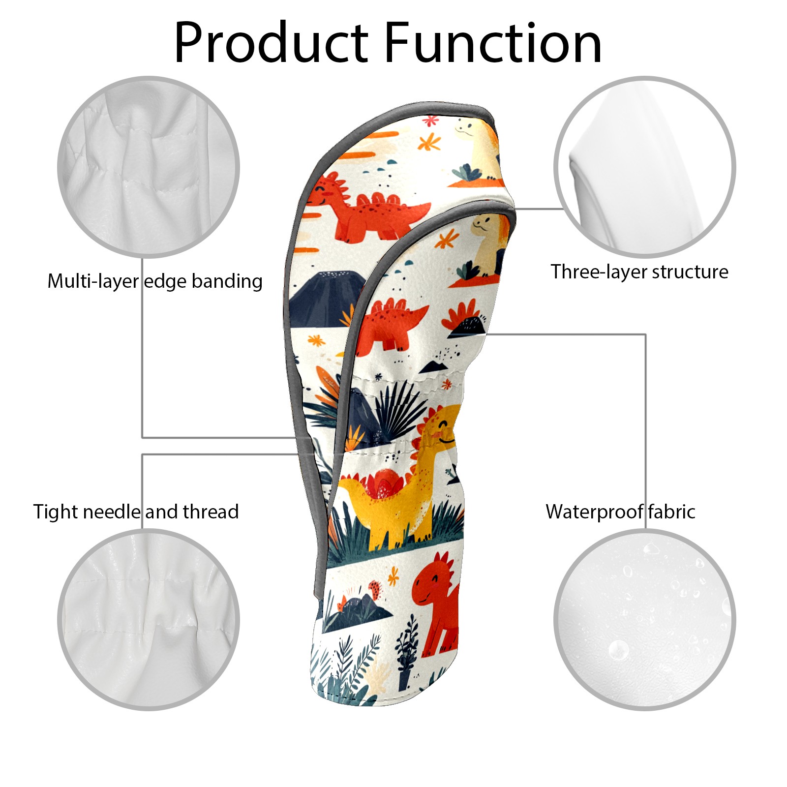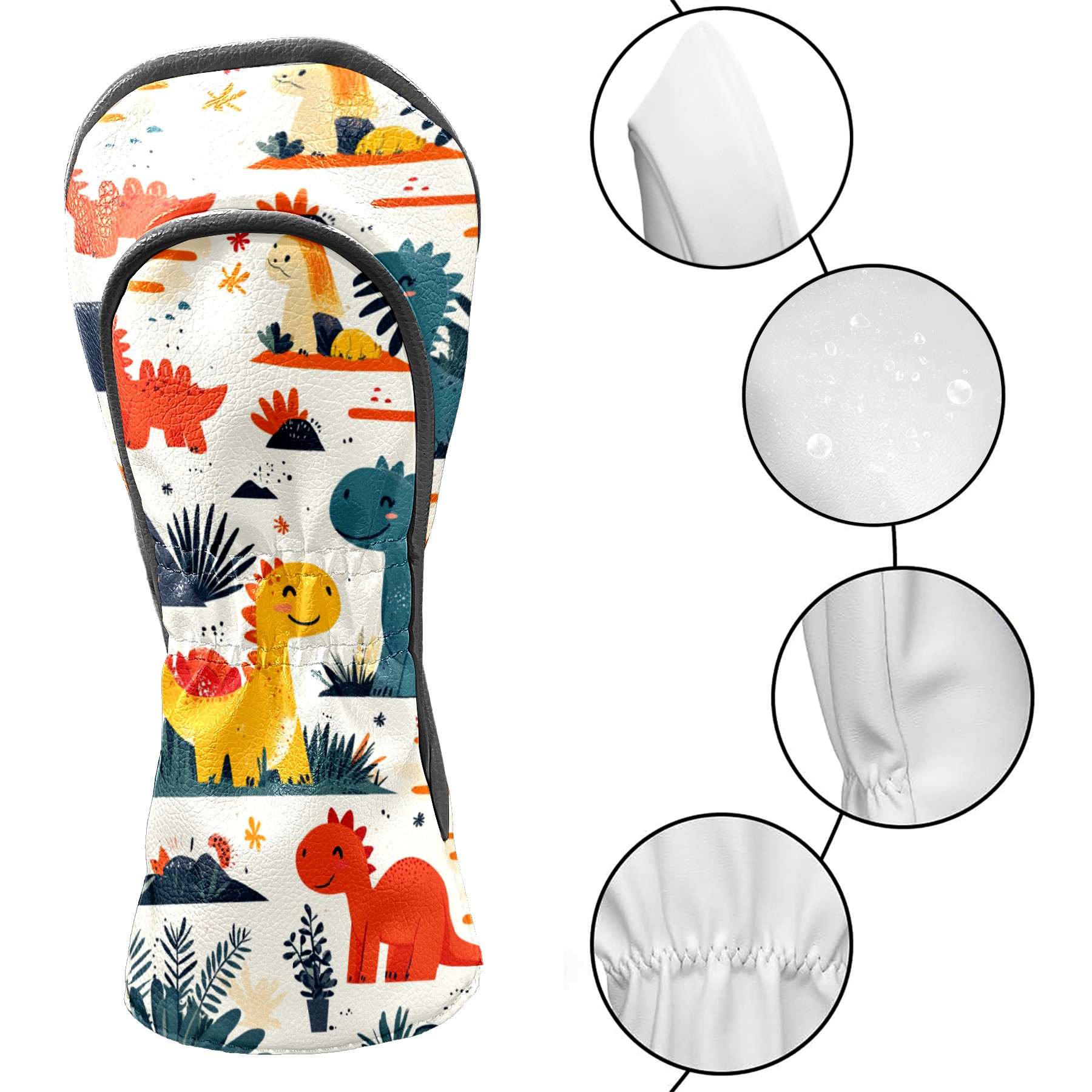 Golf Headcovers Fits Driver Hybrid Fairway 3/5 Wood, Waterproof PU Leather Golf Club Protector, Ideal Sports Accessories & Golfer Gift Dinosaur Pattern