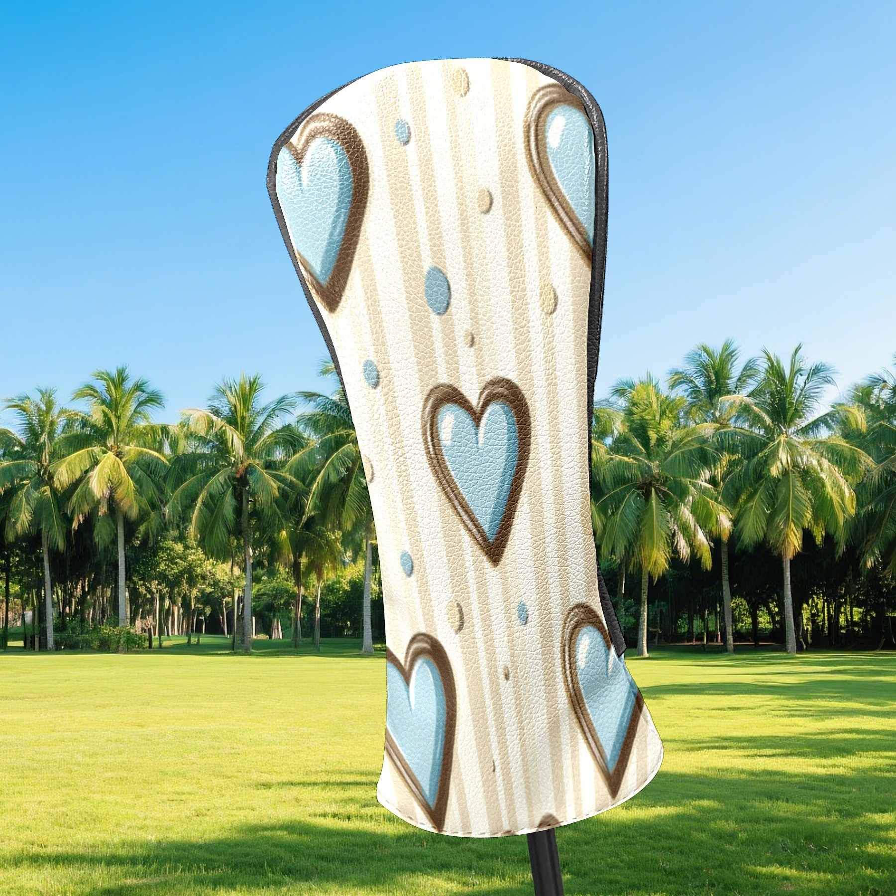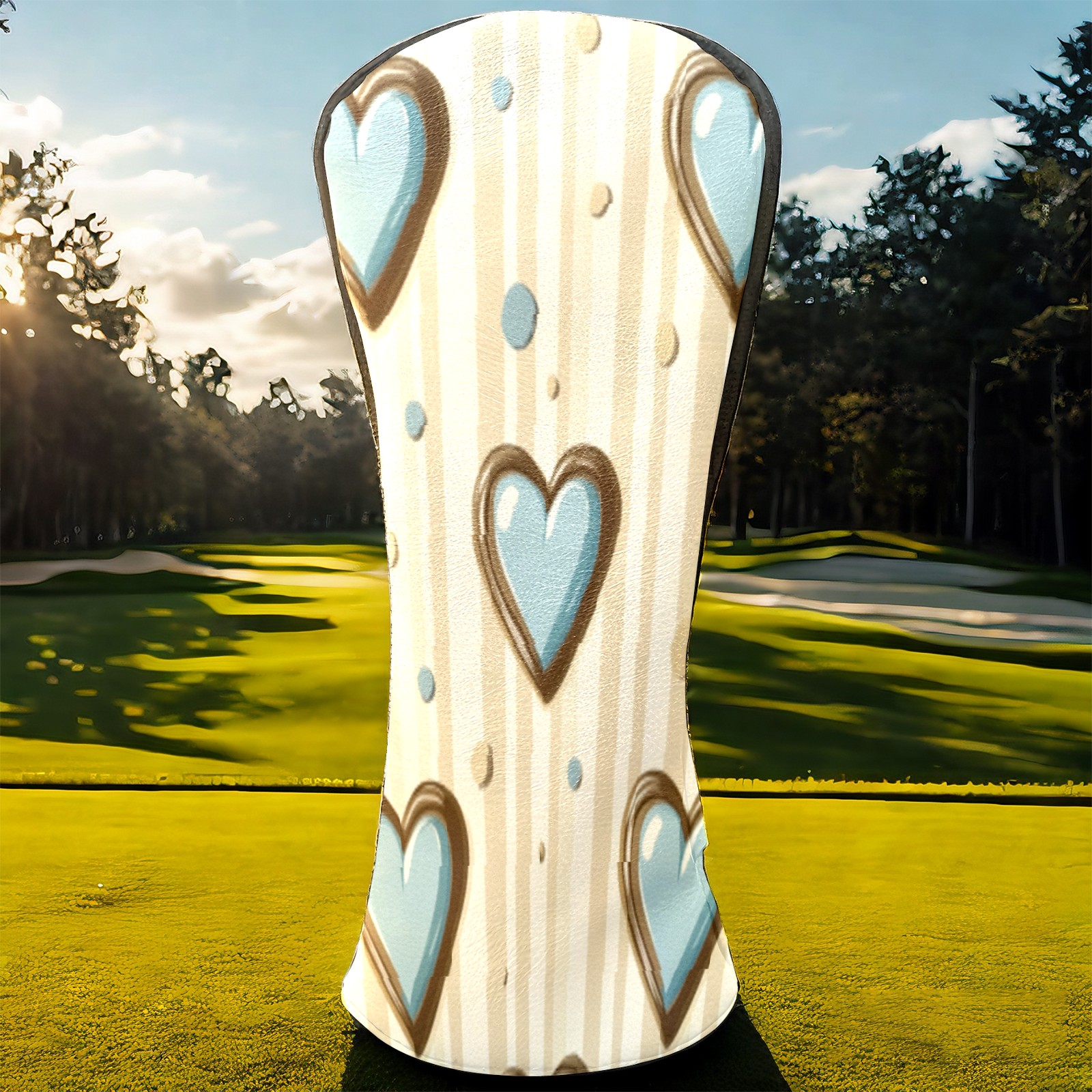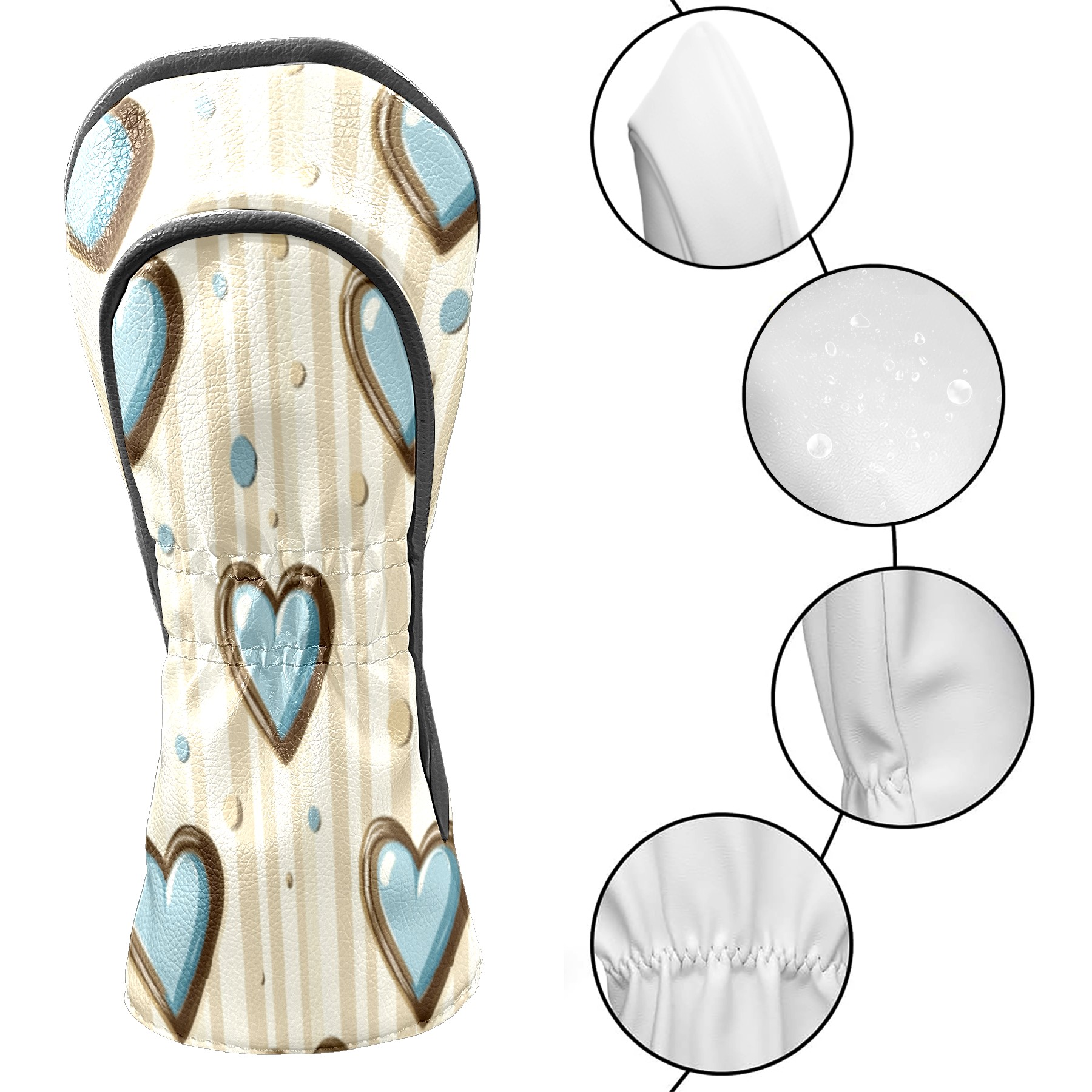 Golf Headcovers Fits Driver Hybrid Fairway 3/5 Wood, Waterproof PU Leather Golf Club Protector, Ideal Sports Accessories & Golfer Gift Brown Blue Heart Pattern
