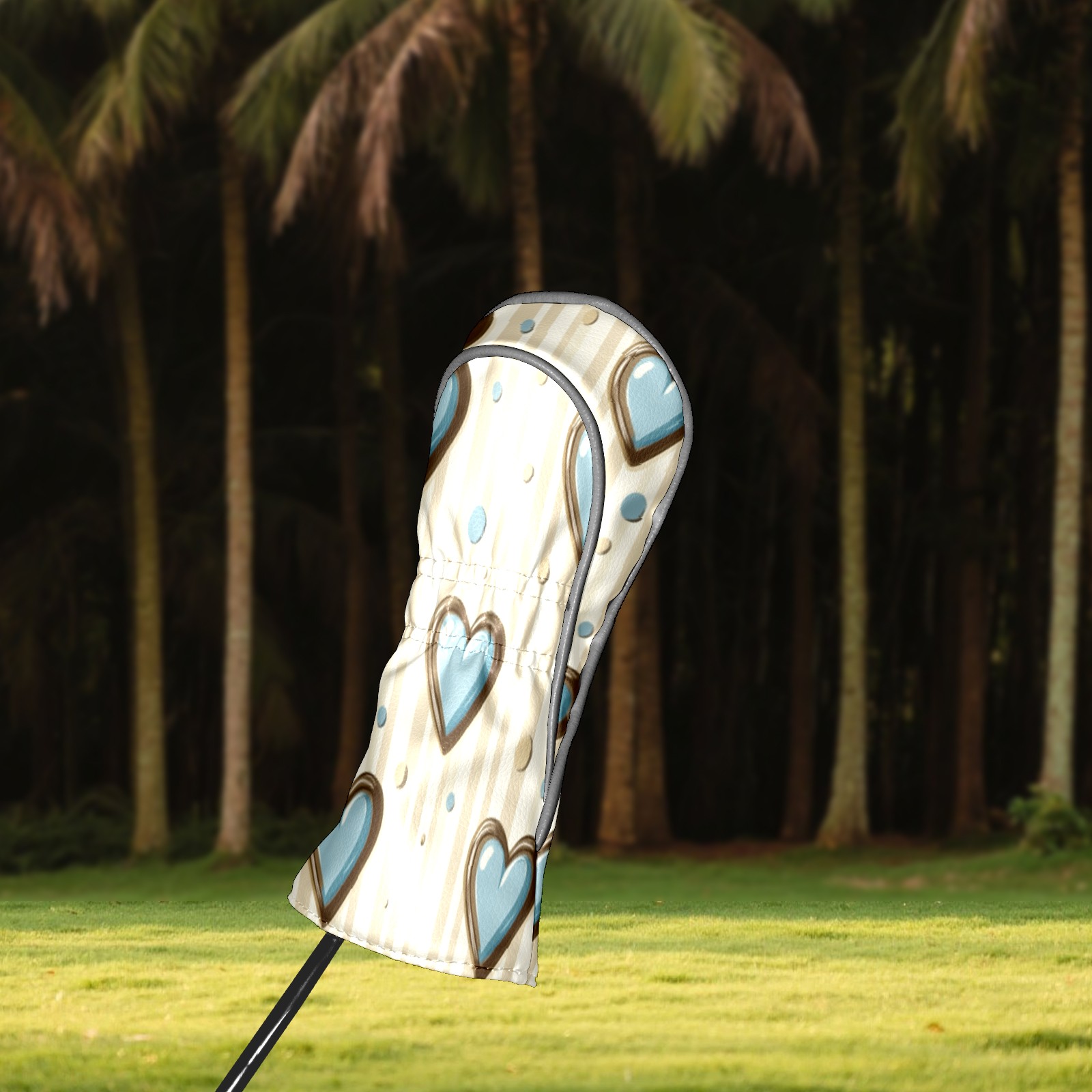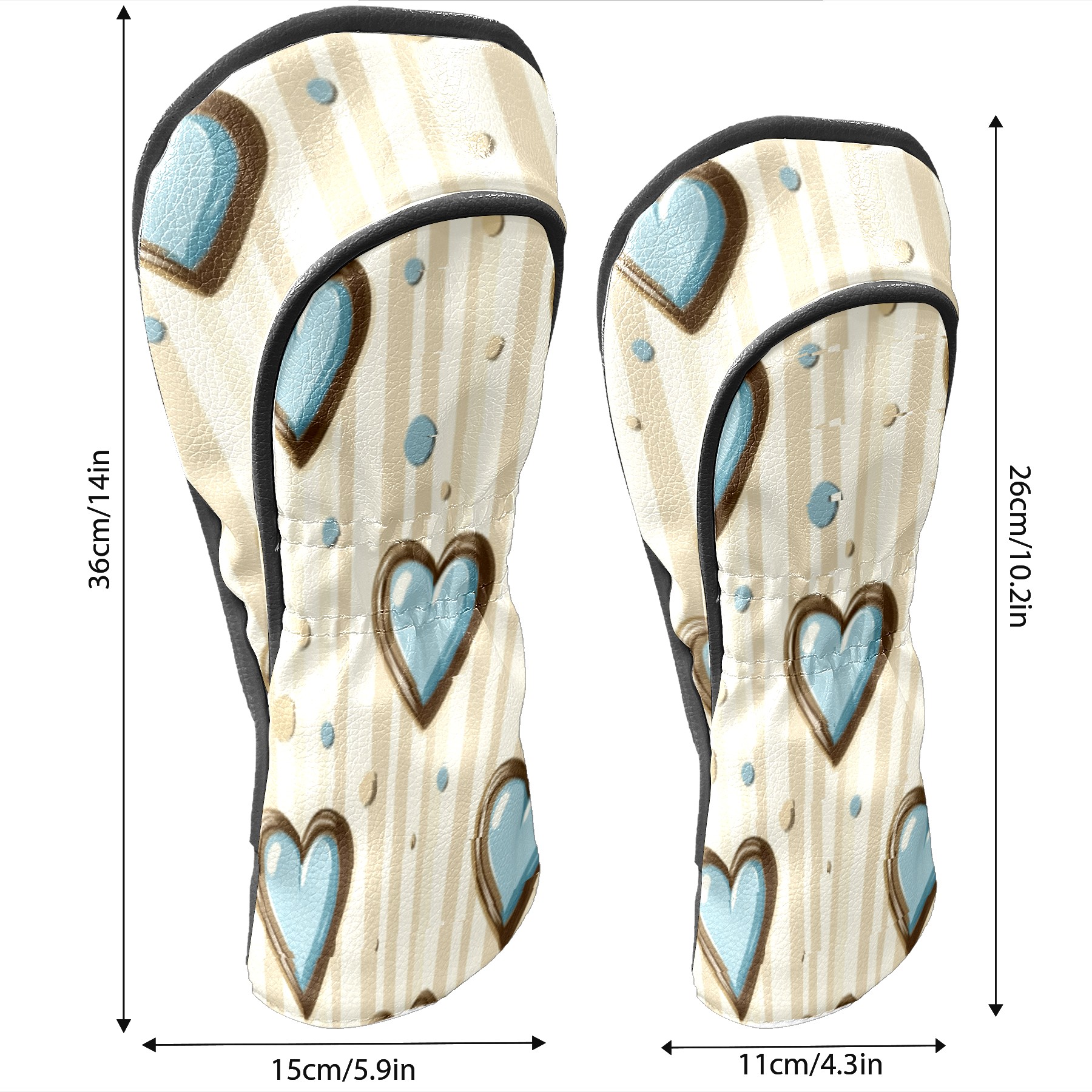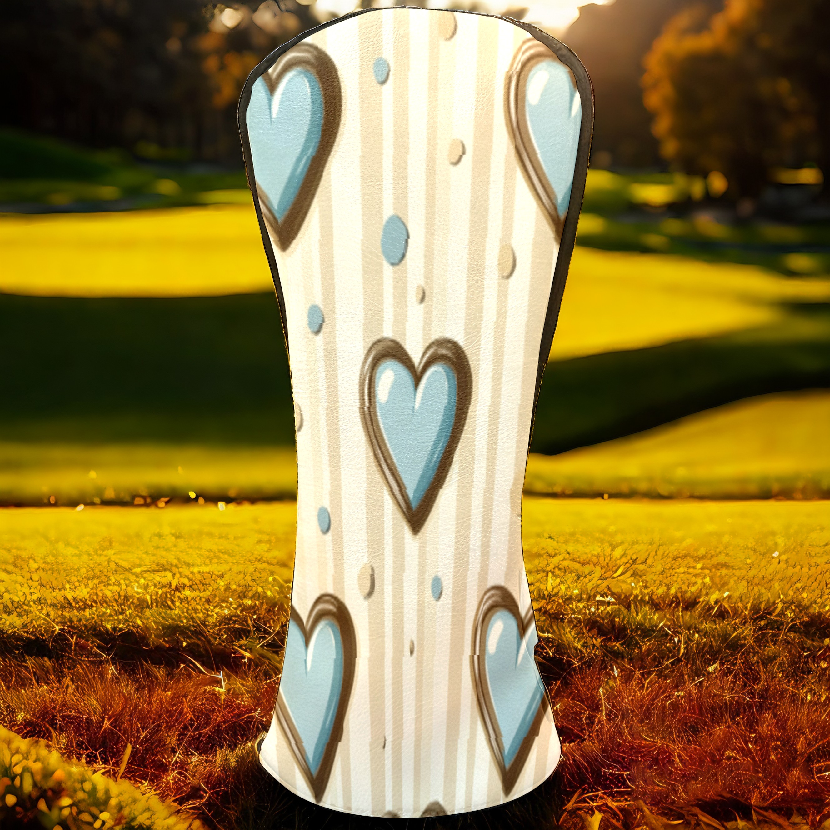 Golf Headcovers Fits Driver Hybrid Fairway 3/5 Wood, Waterproof PU Leather Golf Club Protector, Ideal Sports Accessories & Golfer Gift Brown Blue Heart Pattern