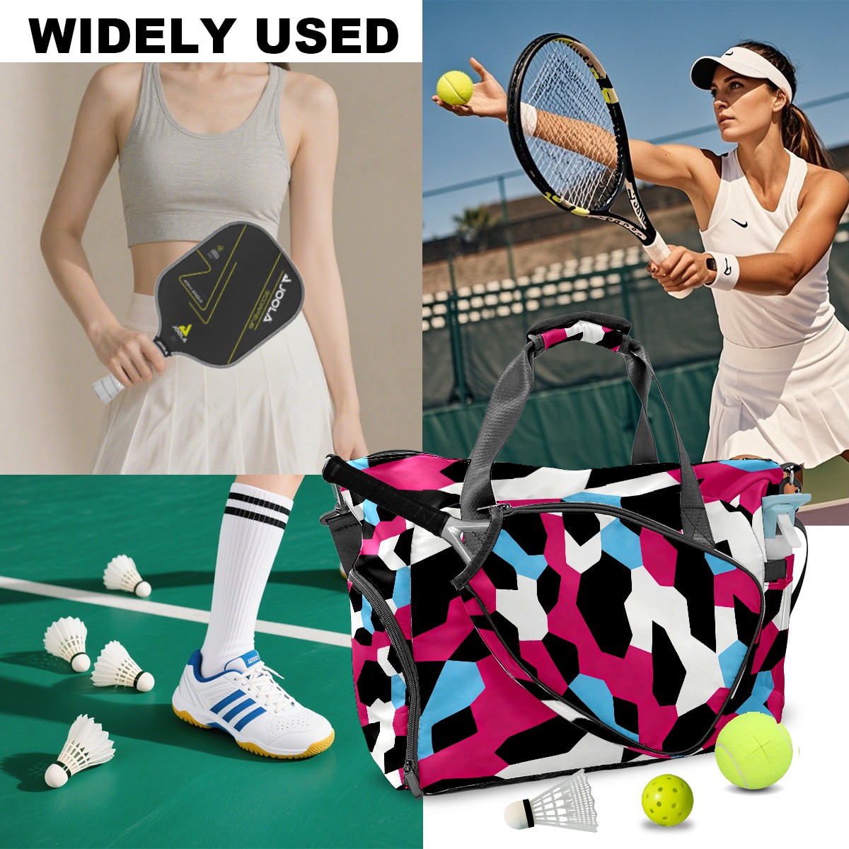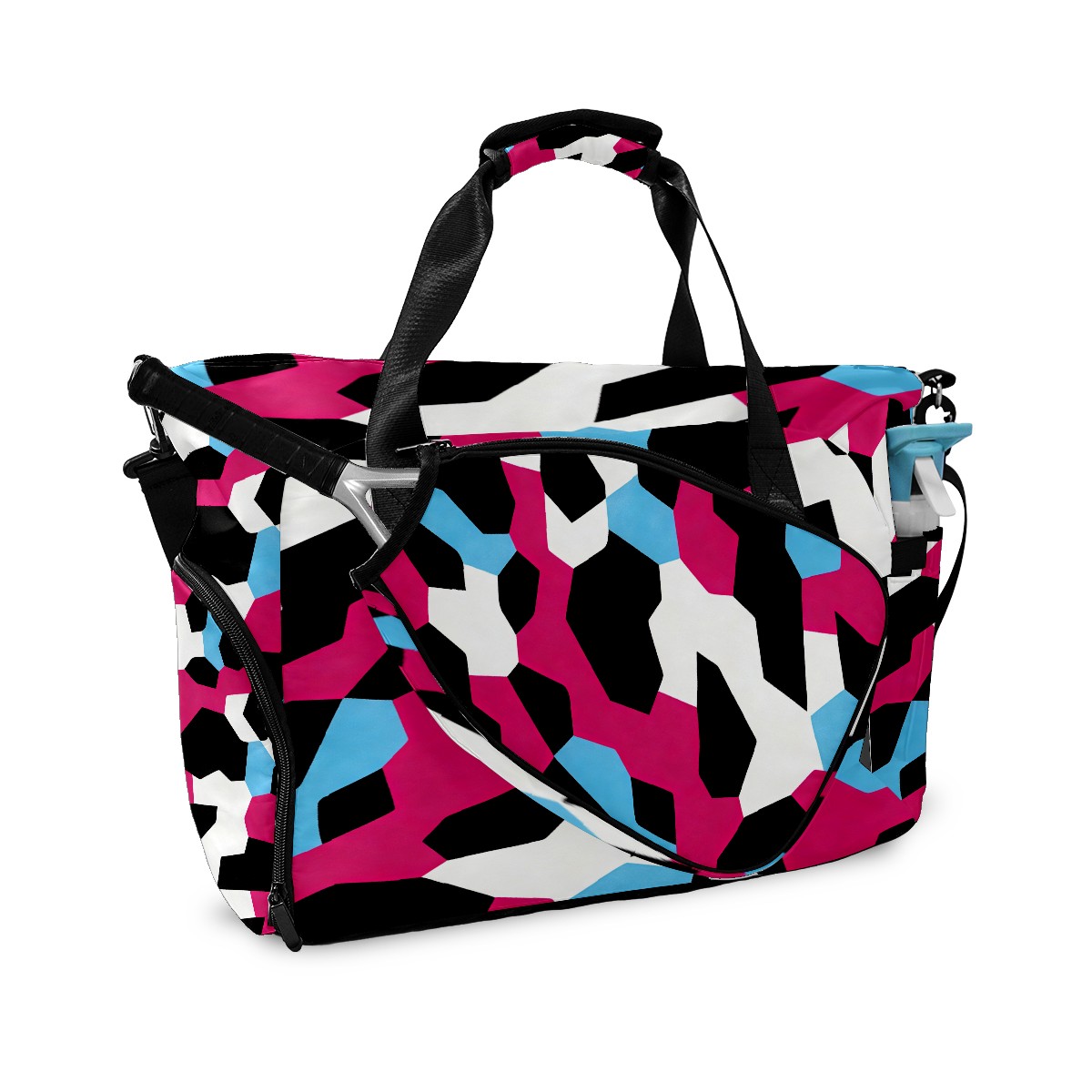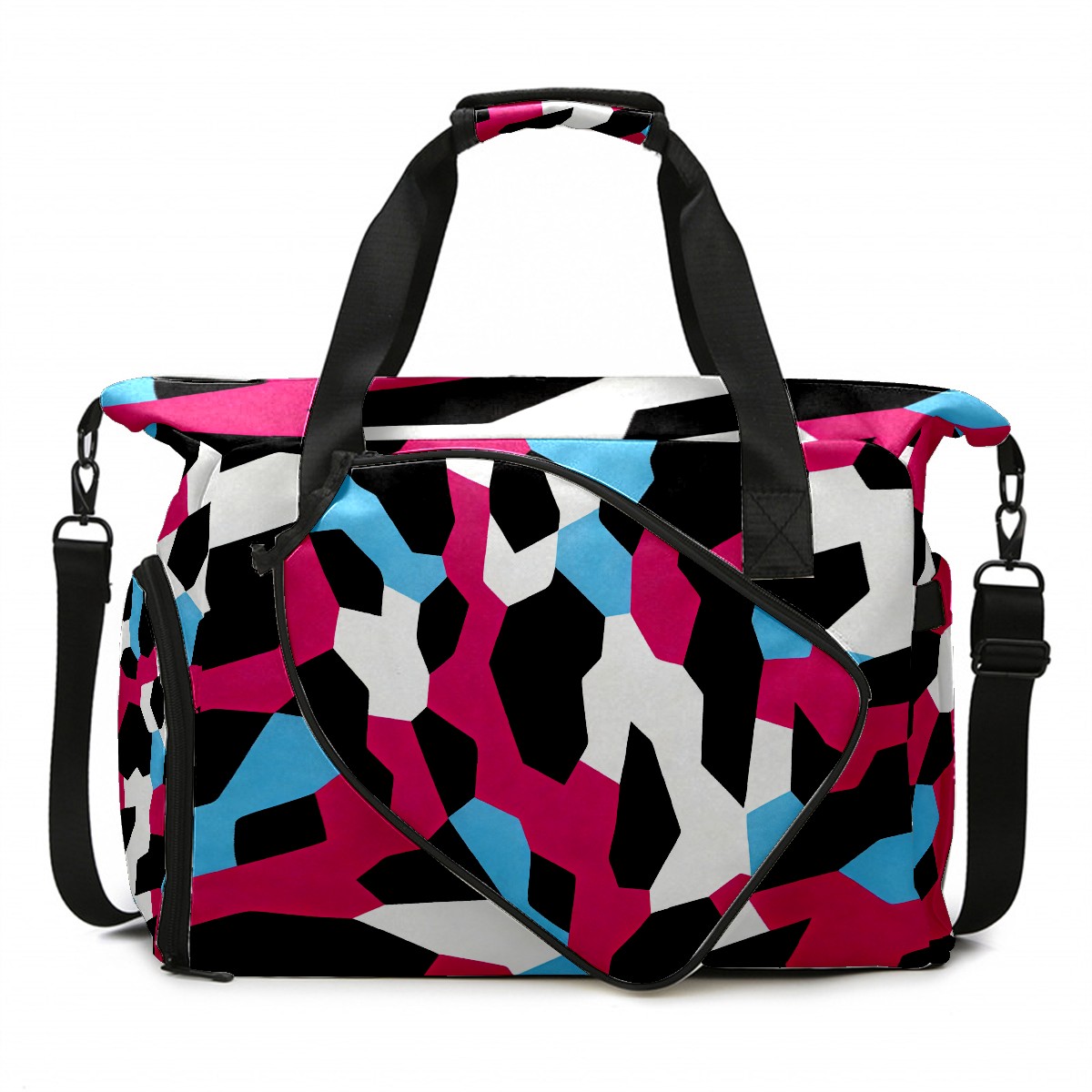 Counullo Cool Block Pink Multi-Functional Sports Duffle Bag, Large Gym Bag with separate ventilated shoe compartment & Front Racket Sleeve | Waterproof, Lightweight Travel Bag for Women & Men, Tennis, Pickleball, Workout