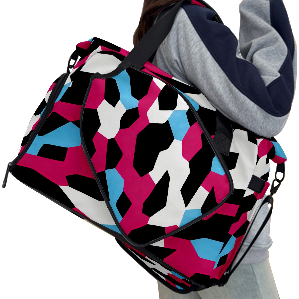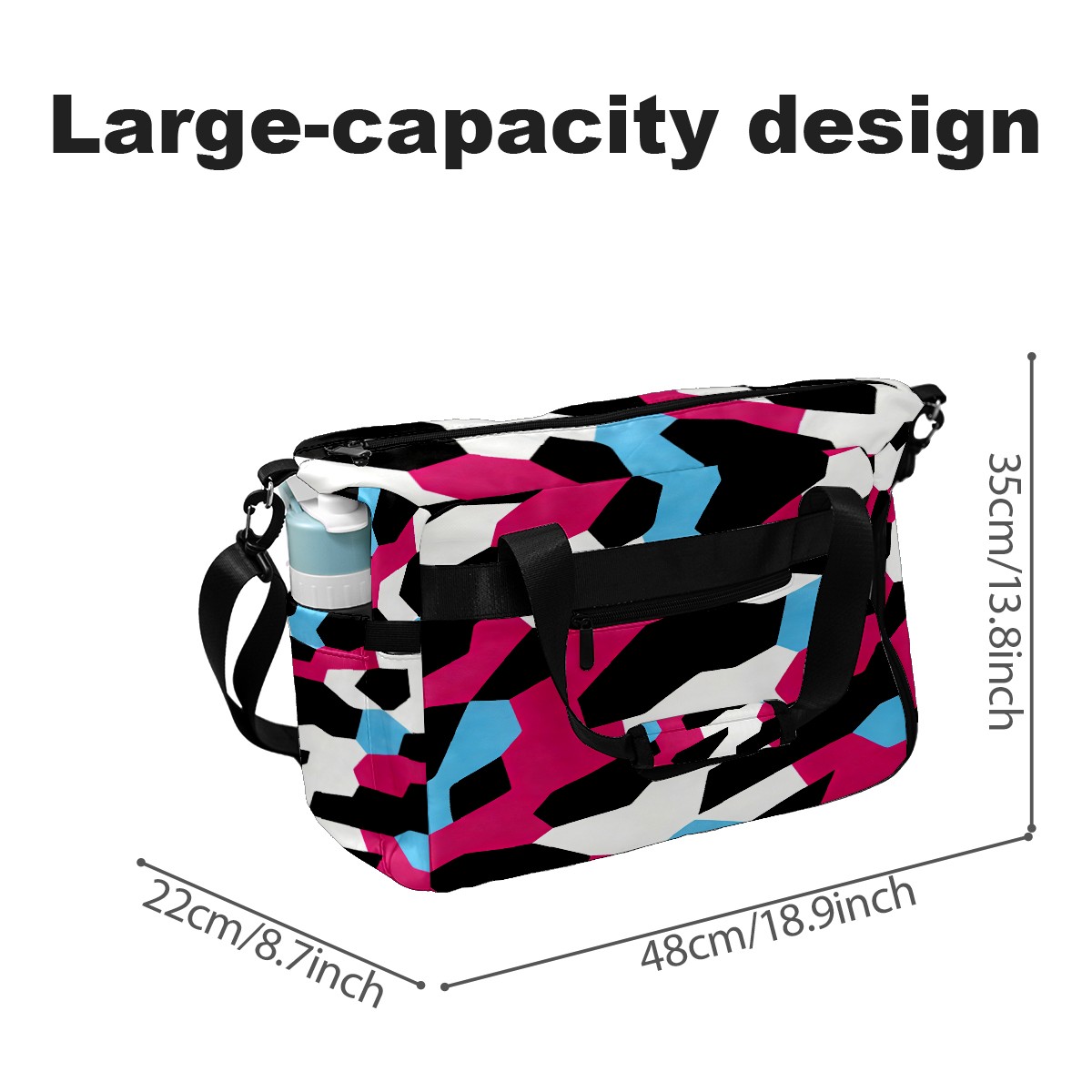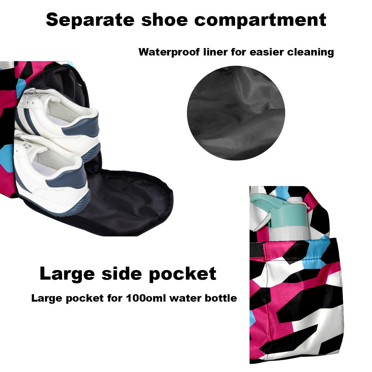 Counullo Cool Block Pink Multi-Functional Sports Duffle Bag, Large Gym Bag with separate ventilated shoe compartment & Front Racket Sleeve | Waterproof, Lightweight Travel Bag for Women & Men, Tennis, Pickleball, Workout
