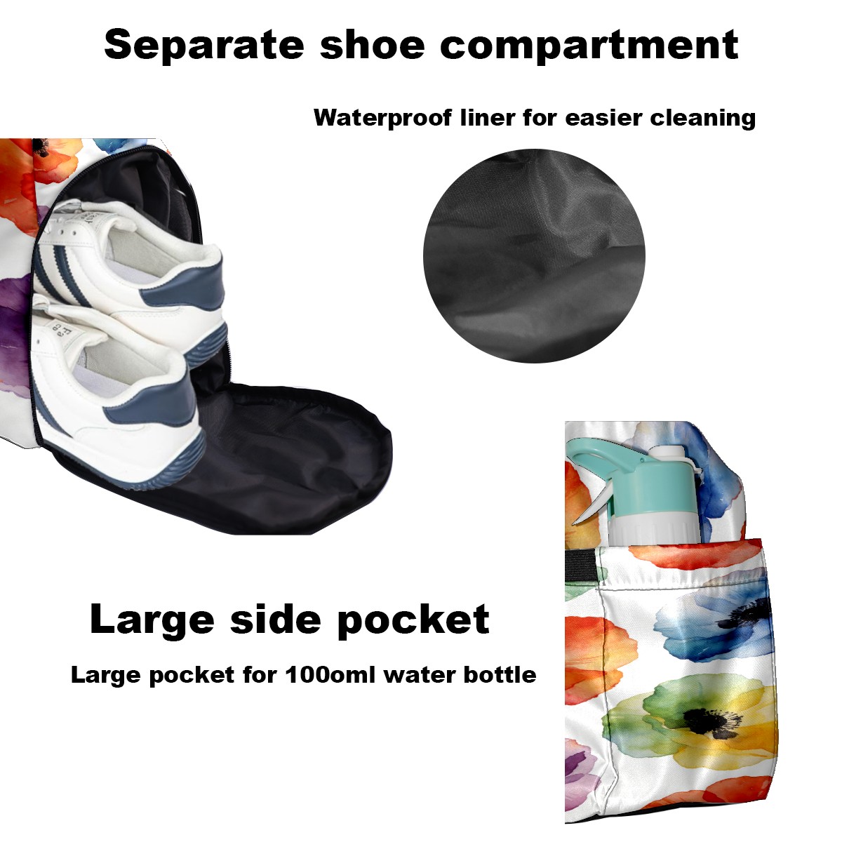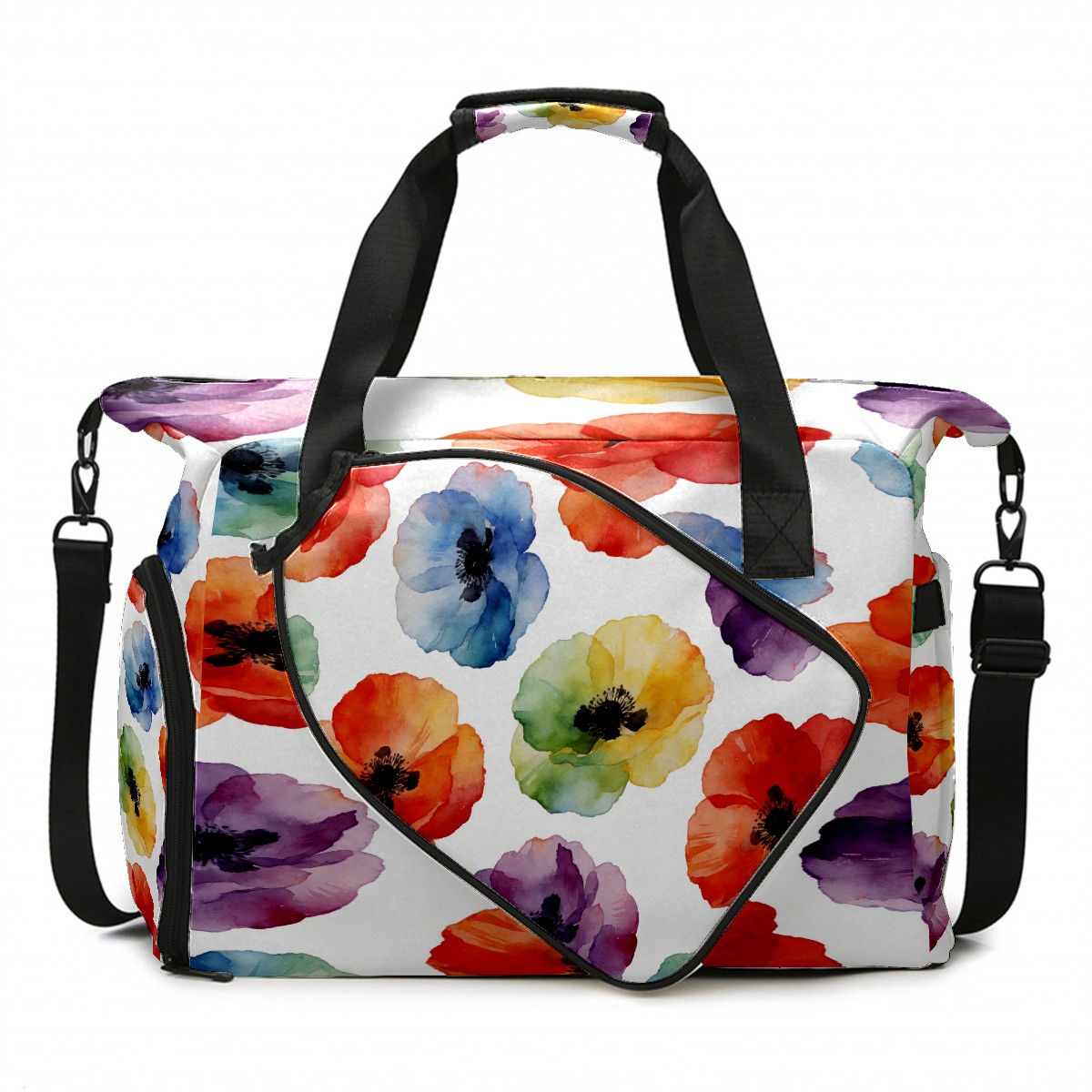 Counullo Dreamy Flower Multi Multi-Functional Sports Duffle Bag, Large Gym Bag with separate ventilated shoe compartment & Front Racket Sleeve | Waterproof, Lightweight Travel Bag for Women & Men, Tennis, Pickleball, Workout