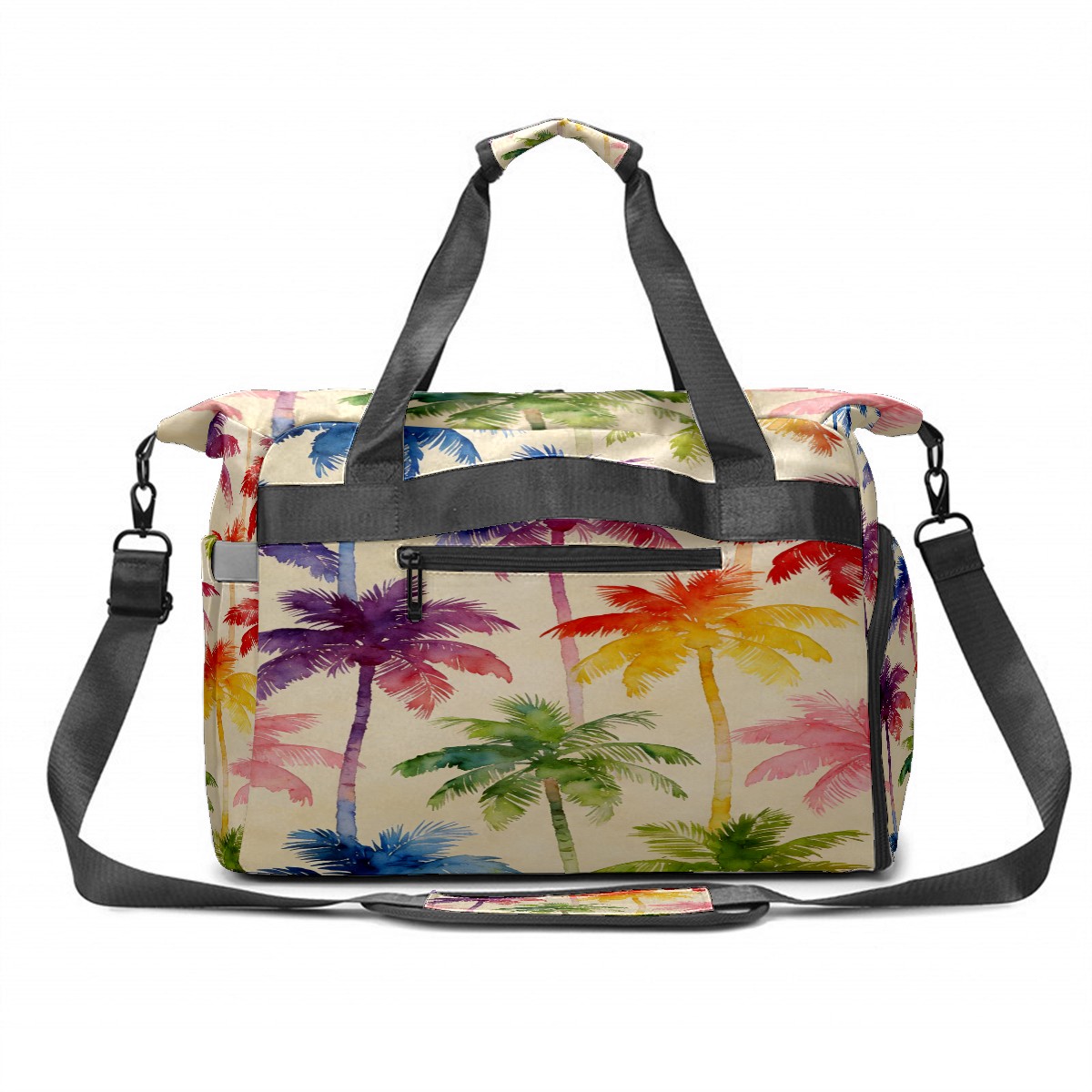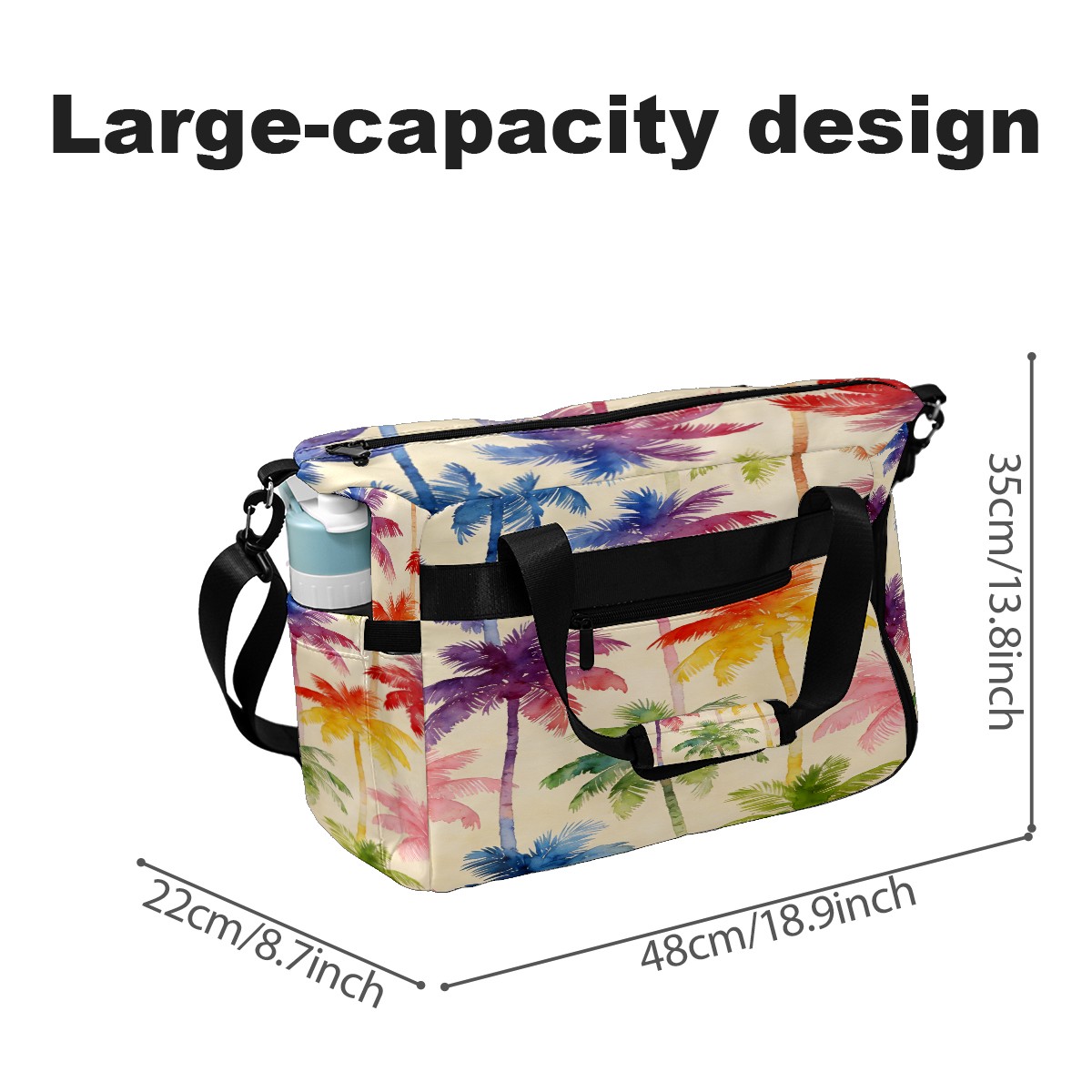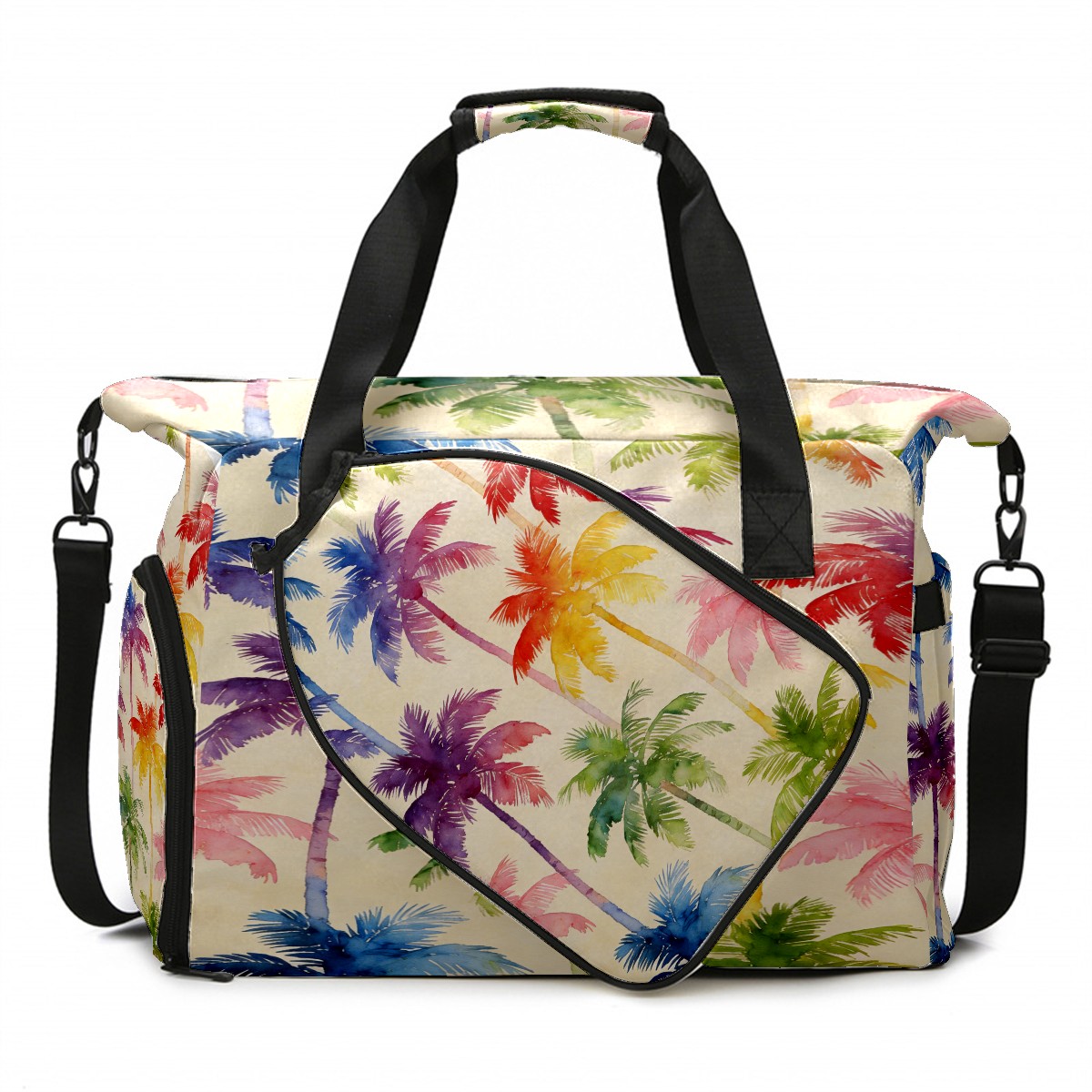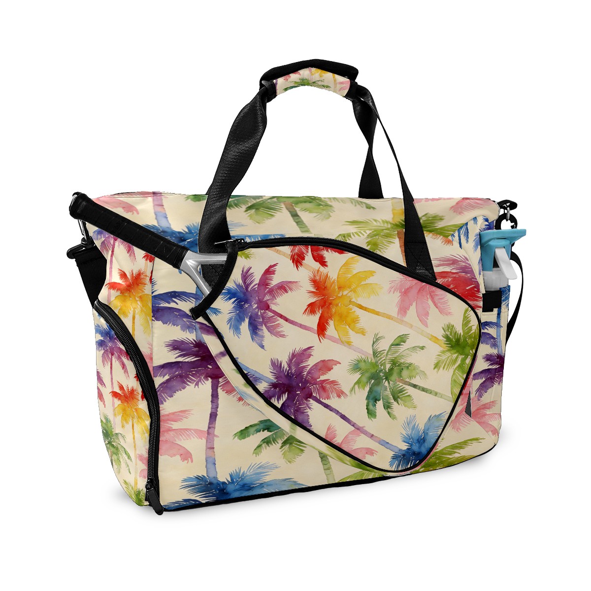 Counullo Vacation Palm Tree Multi-Functional Sports Duffle Bag, Large Gym Bag with separate ventilated shoe compartment & Front Racket Sleeve | Waterproof, Lightweight Travel Bag for Women & Men, Tennis, Pickleball, Workout