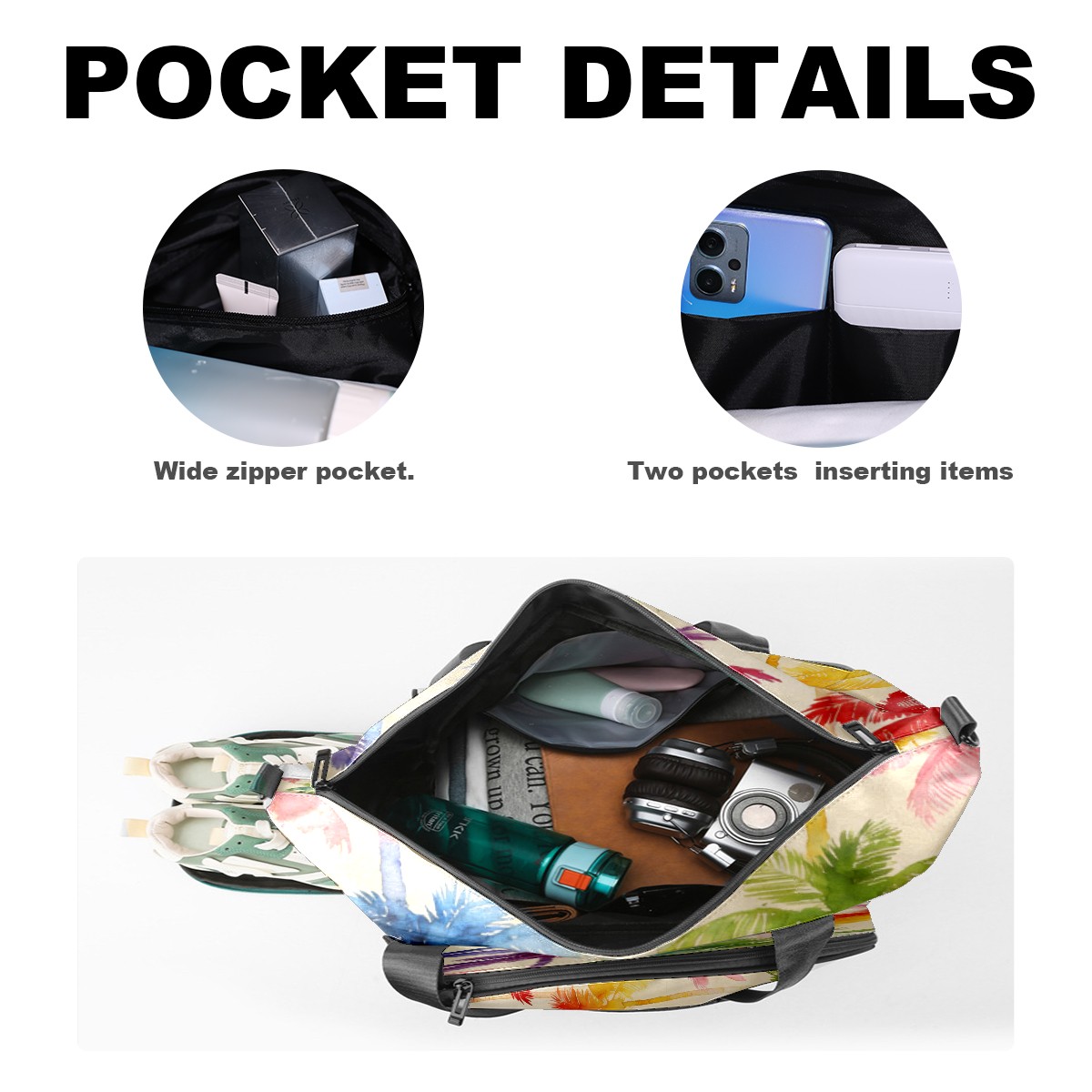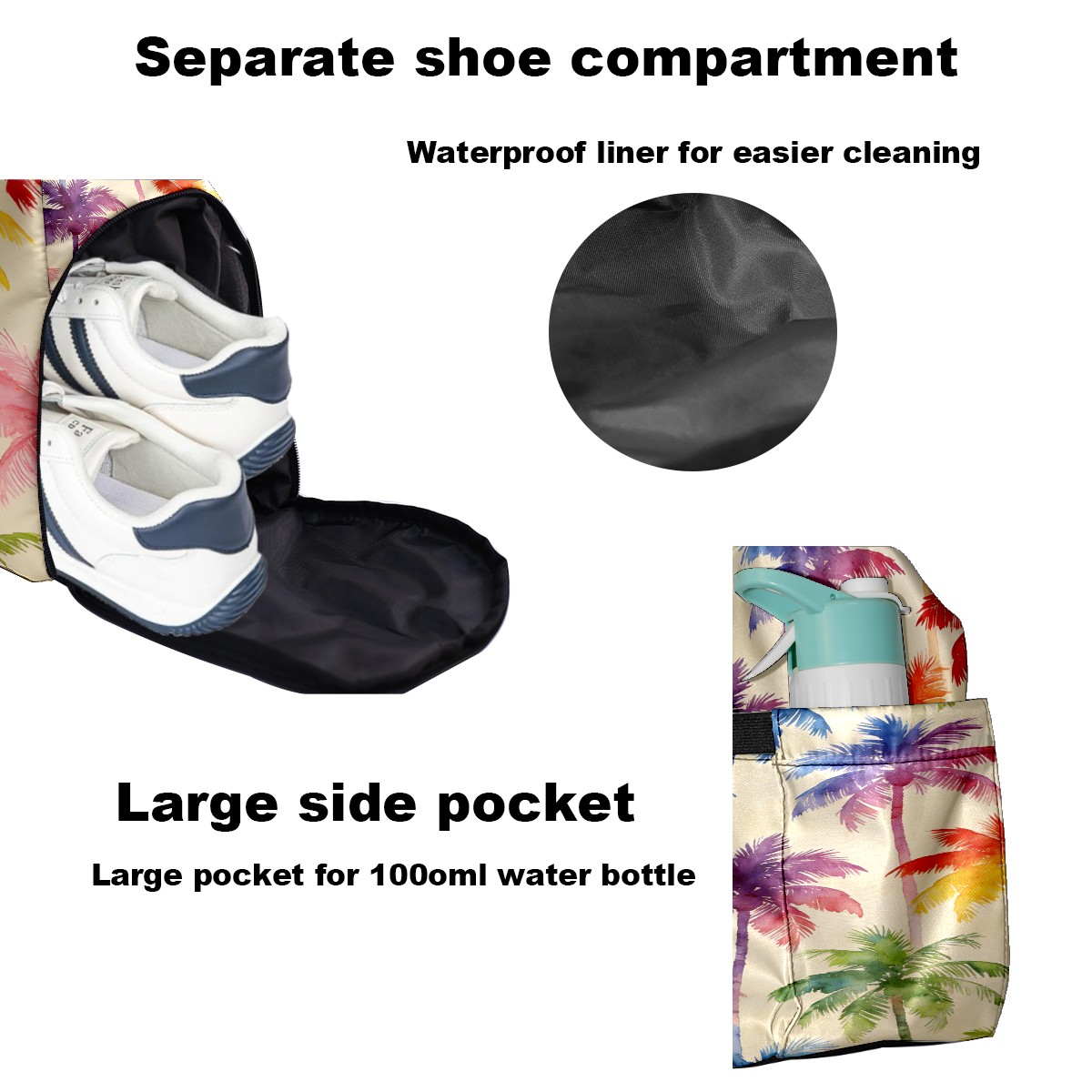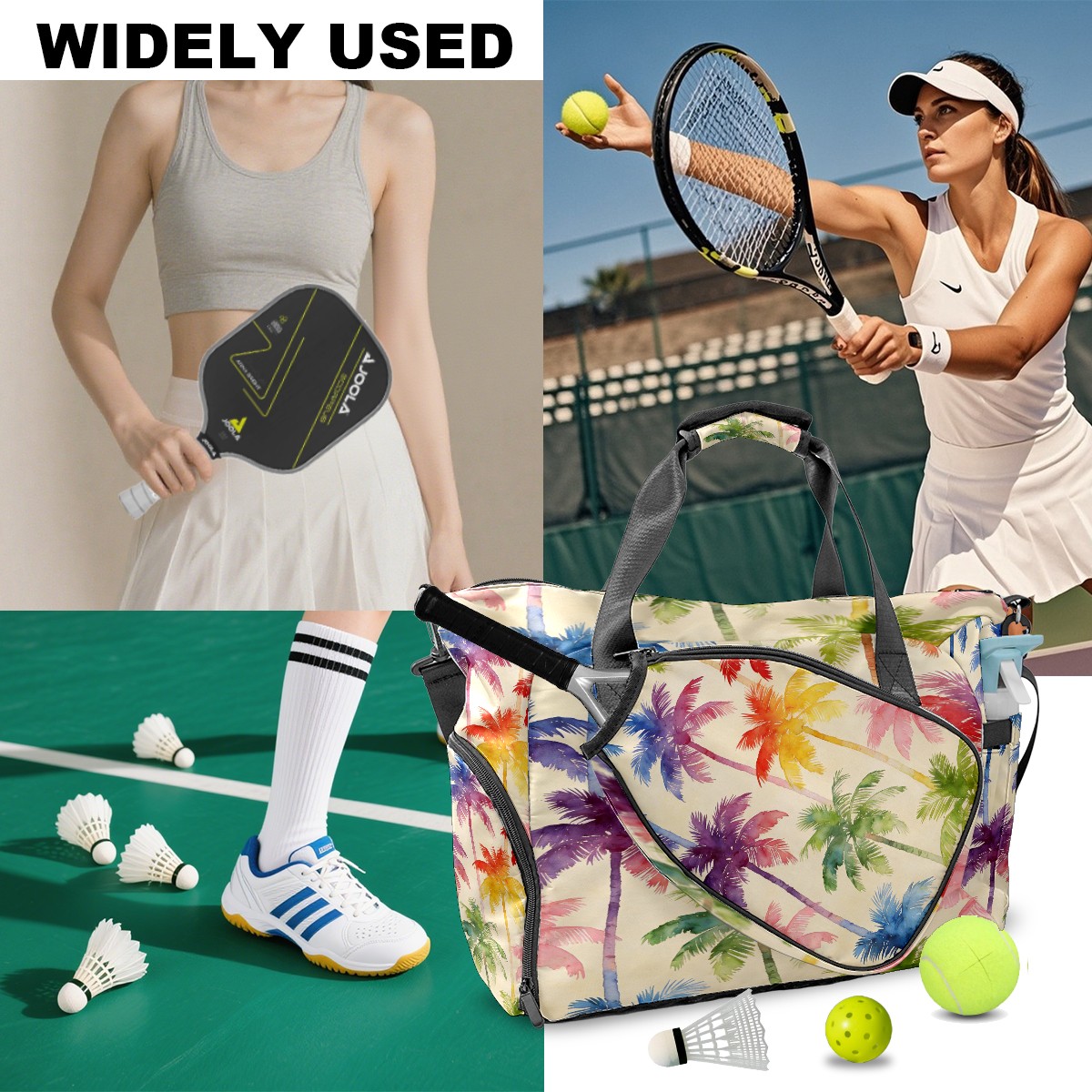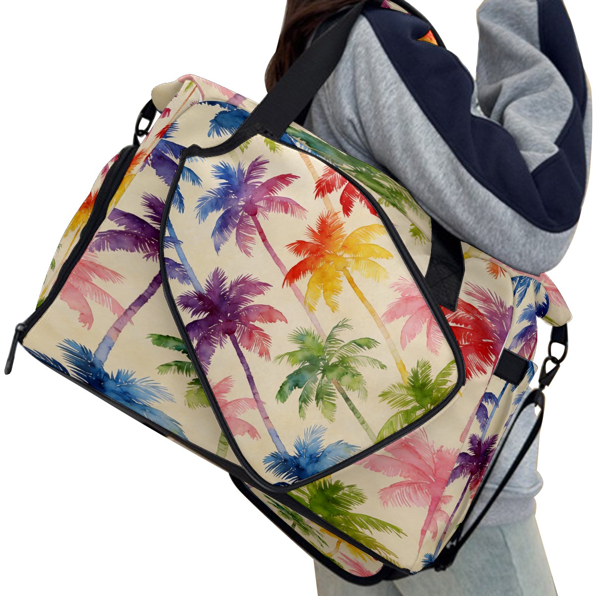 Counullo Vacation Palm Tree Multi-Functional Sports Duffle Bag, Large Gym Bag with separate ventilated shoe compartment & Front Racket Sleeve | Waterproof, Lightweight Travel Bag for Women & Men, Tennis, Pickleball, Workout