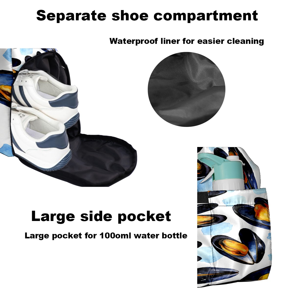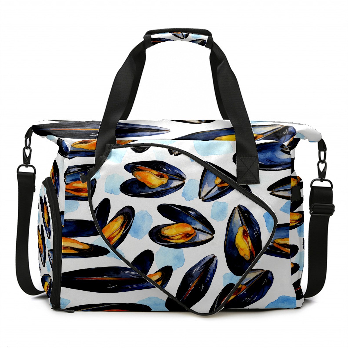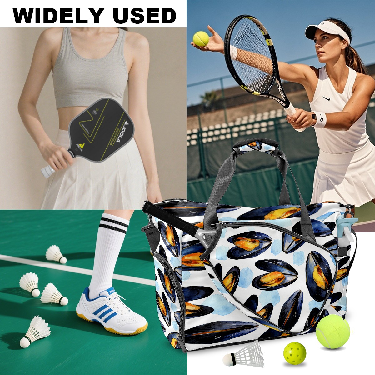 Counullo Vintage Shell Black Multi-Functional Sports Duffle Bag, Large Gym Bag with separate ventilated shoe compartment & Front Racket Sleeve | Waterproof, Lightweight Travel Bag for Women & Men, Tennis, Pickleball, Workout