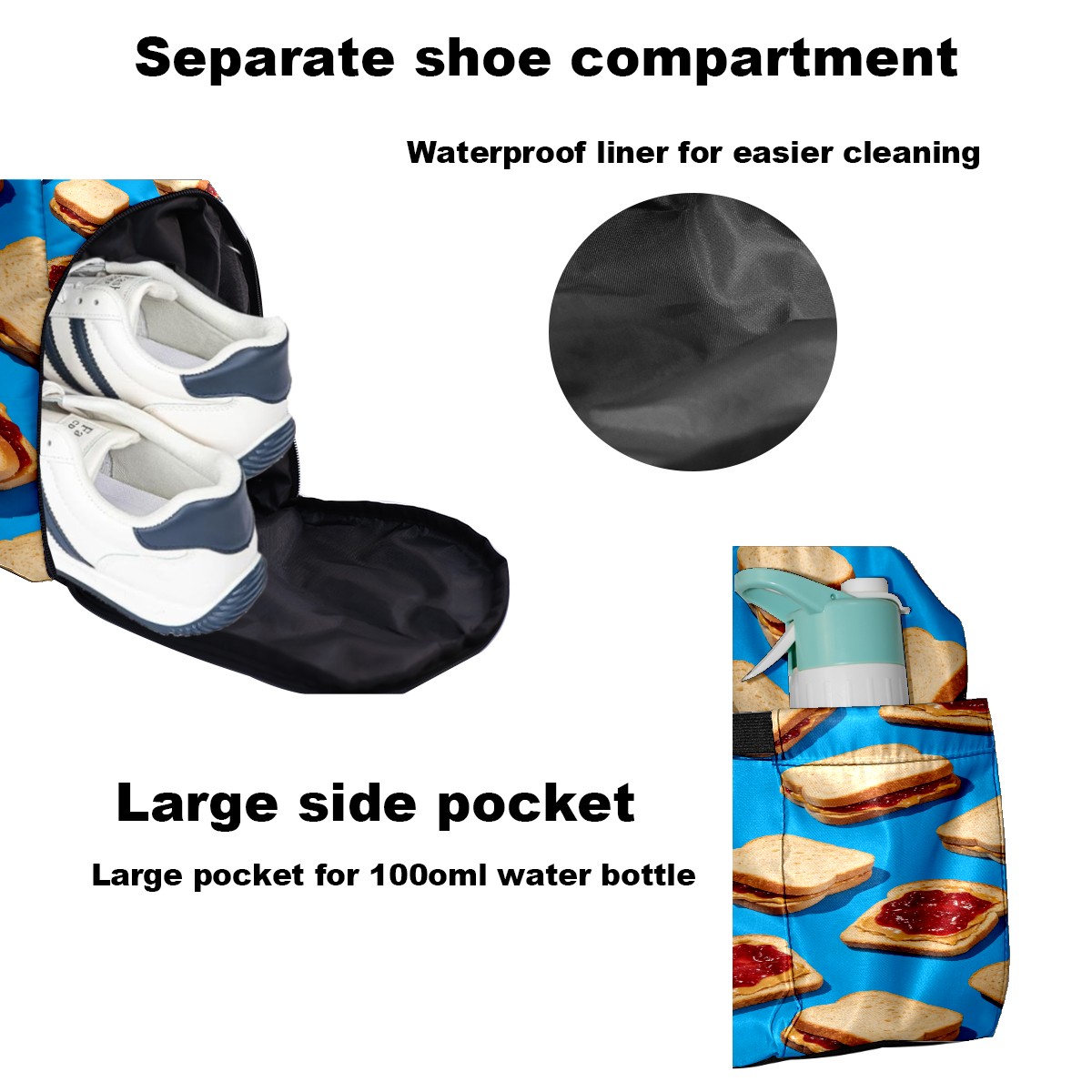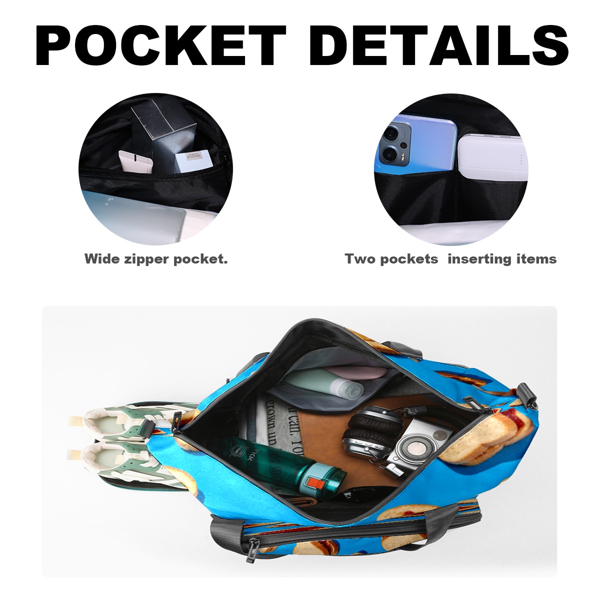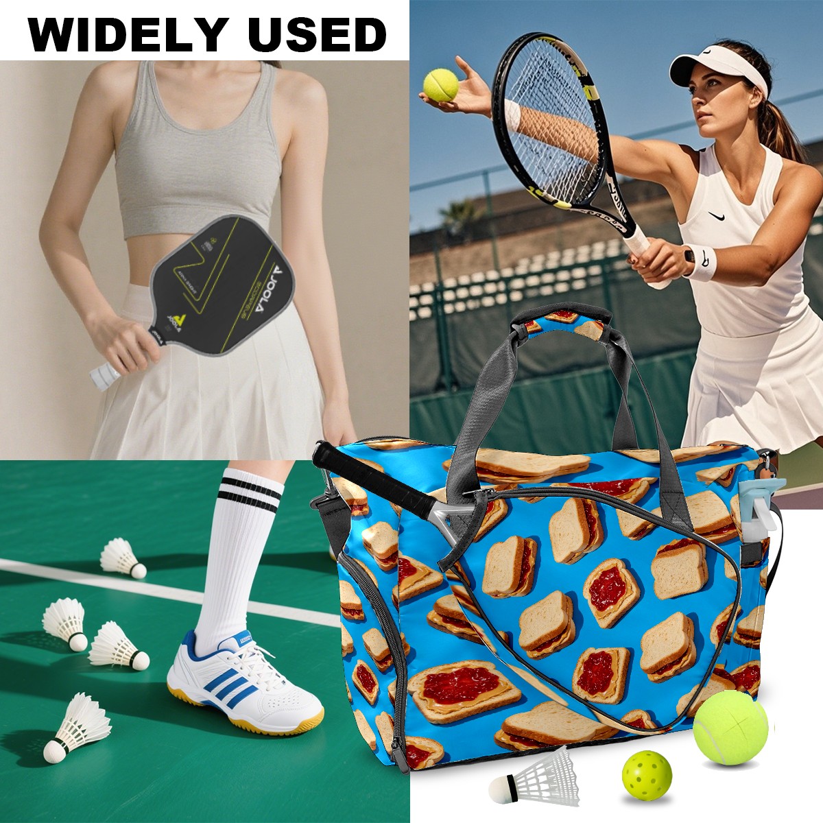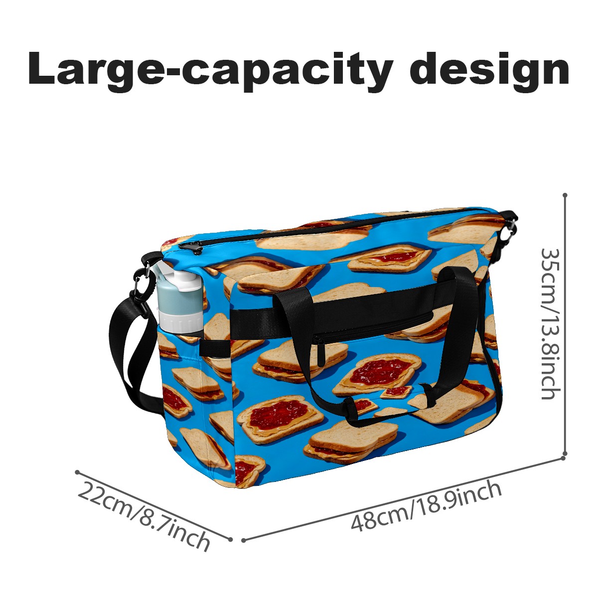 Counullo Sweet Cookie Blue Multi-Functional Sports Duffle Bag, Large Gym Bag with separate ventilated shoe compartment & Front Racket Sleeve | Waterproof, Lightweight Travel Bag for Women & Men, Tennis, Pickleball, Workout