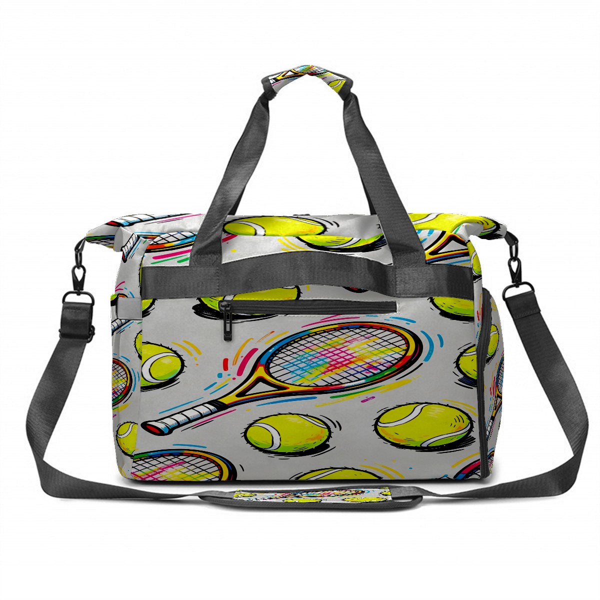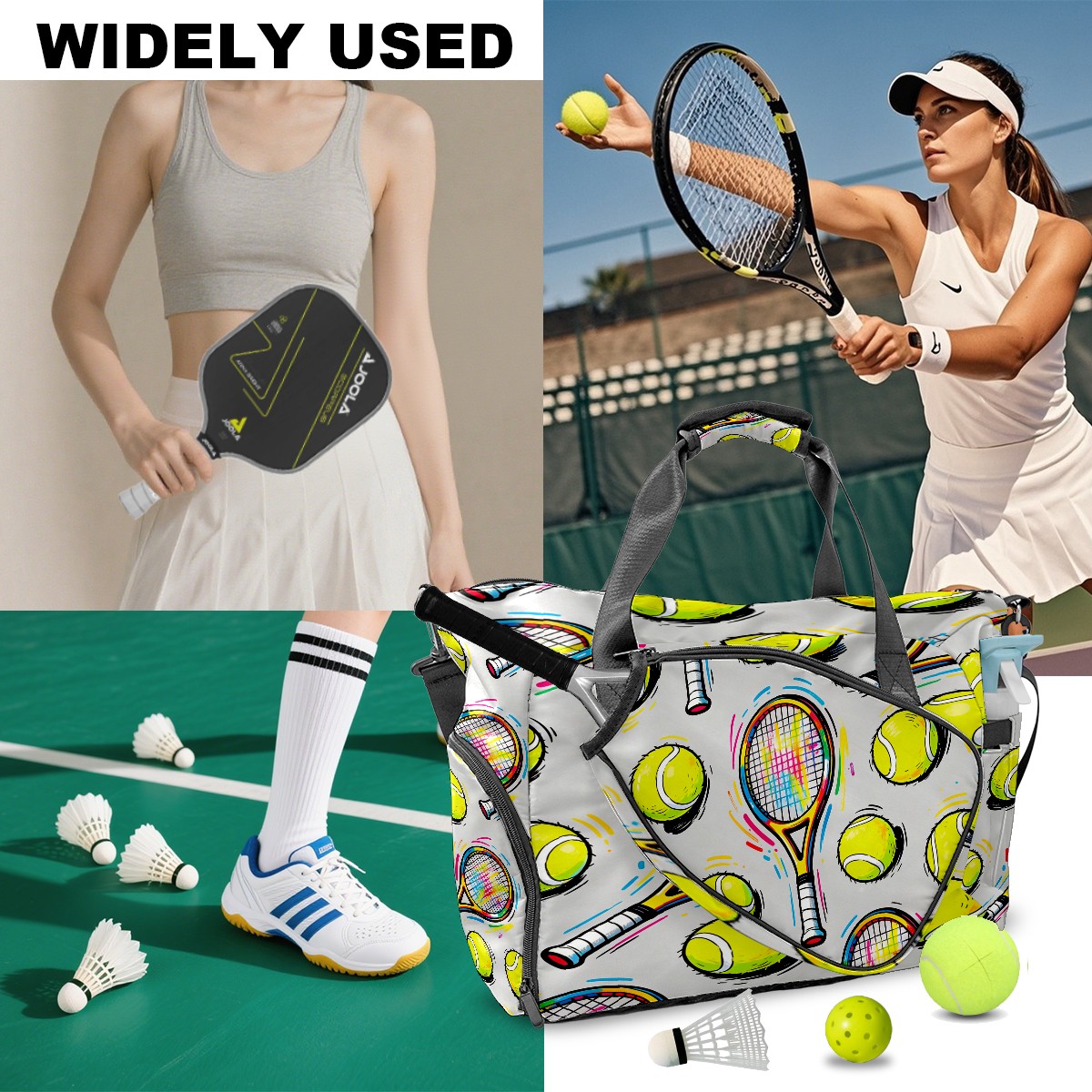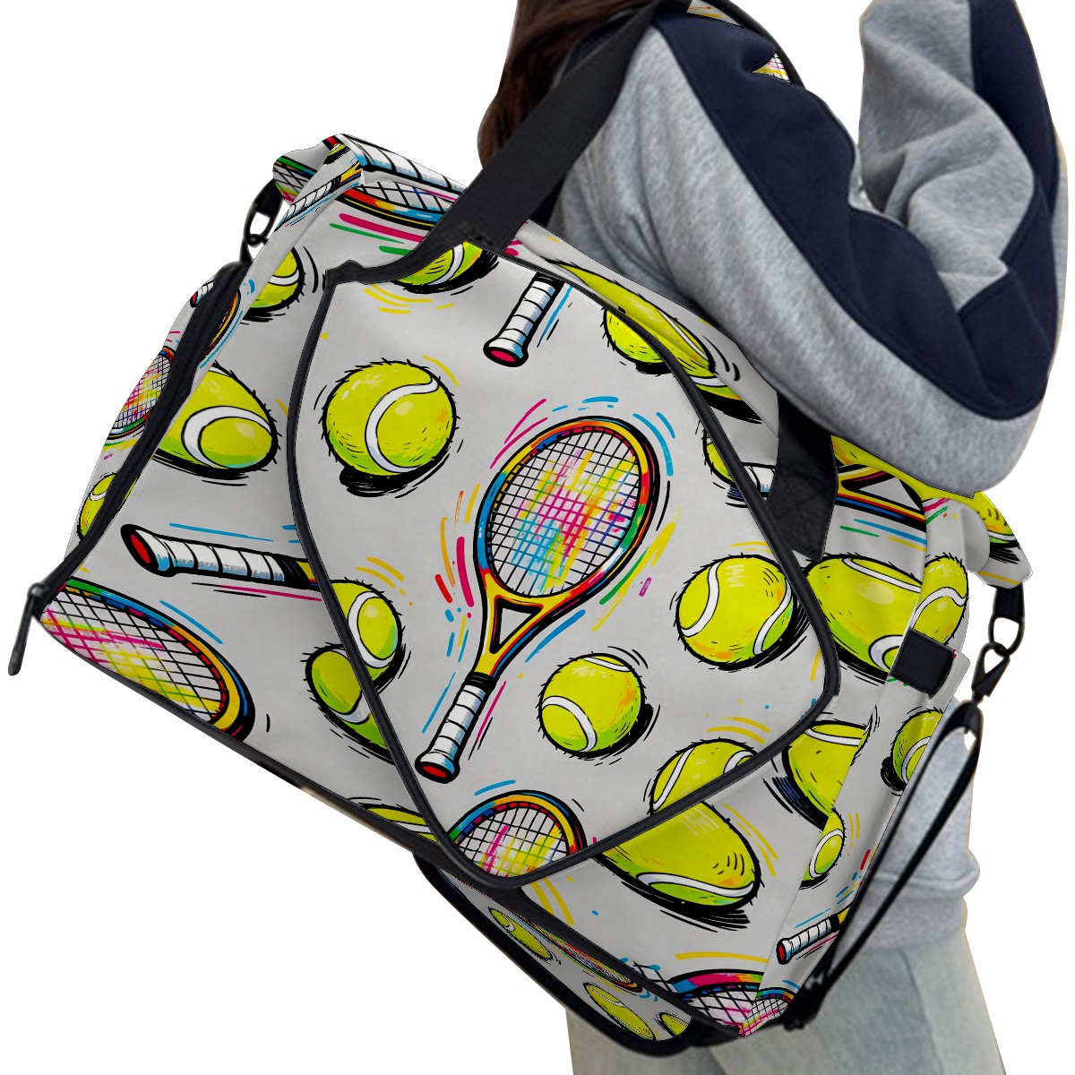 Counullo Vibrant Tennis Yellow Multi-Functional Sports Duffle Bag, Large Gym Bag with separate ventilated shoe compartment & Front Racket Sleeve | Waterproof, Lightweight Travel Bag for Women & Men, Tennis, Pickleball, Workout