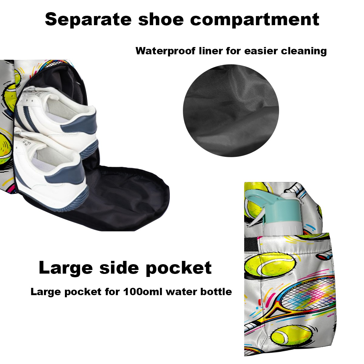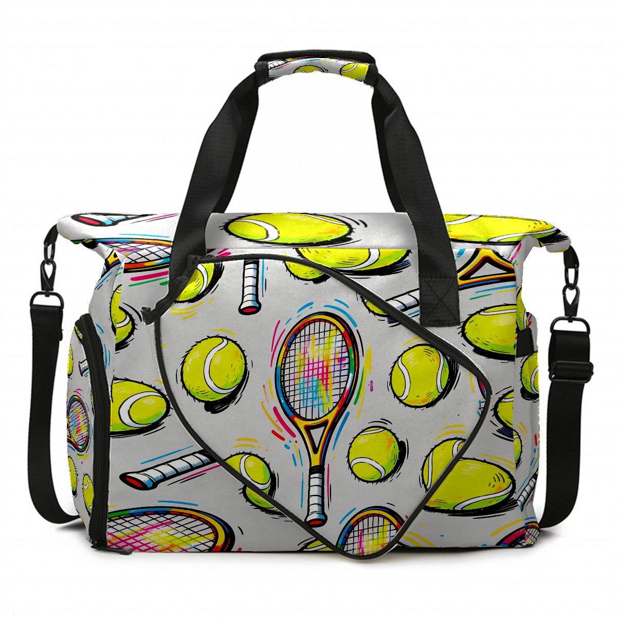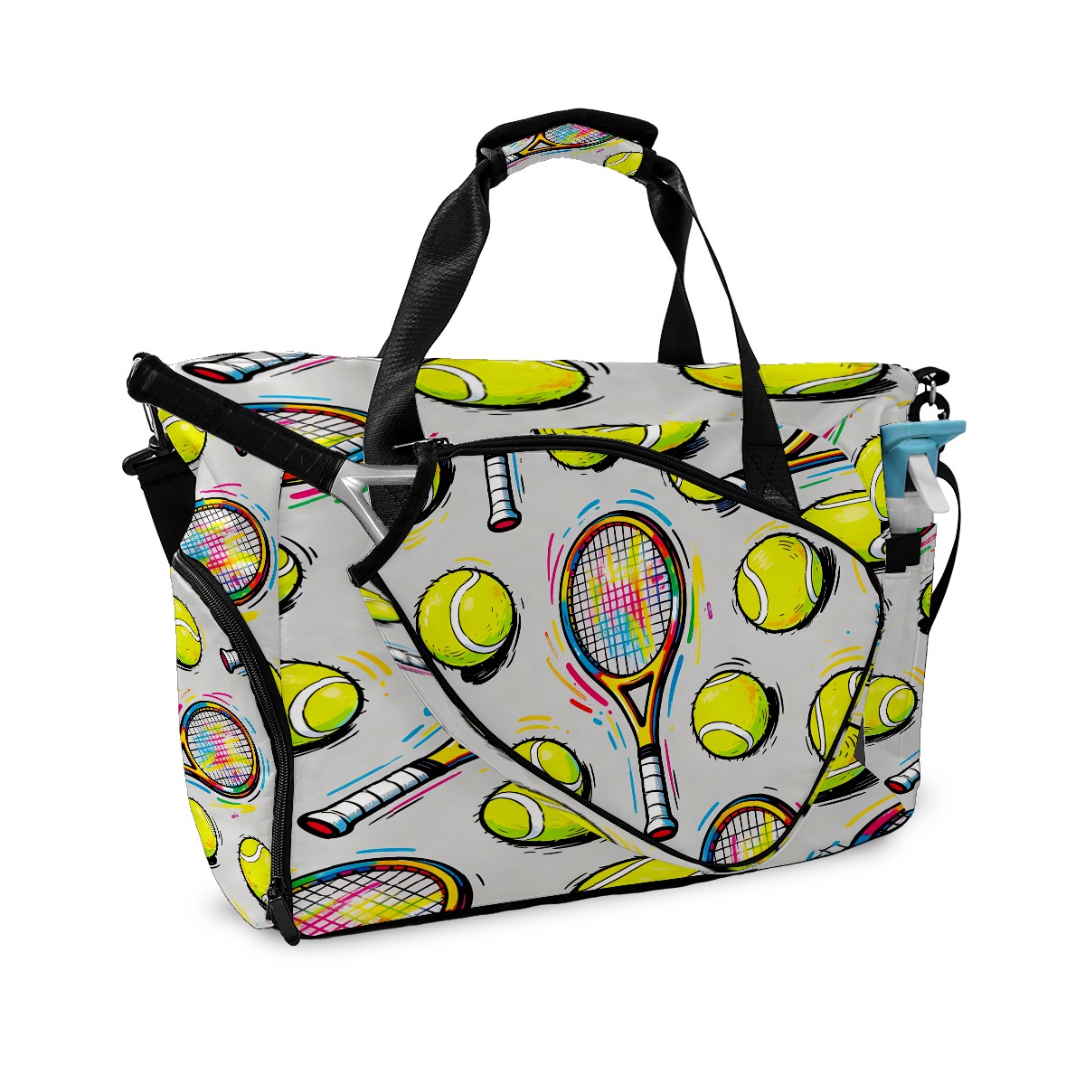 Counullo Vibrant Tennis Yellow Multi-Functional Sports Duffle Bag, Large Gym Bag with separate ventilated shoe compartment & Front Racket Sleeve | Waterproof, Lightweight Travel Bag for Women & Men, Tennis, Pickleball, Workout